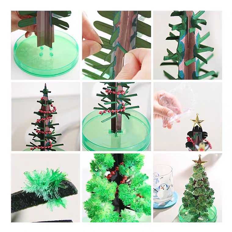 국경 간 DIY 조기 교육 과학 실험 종이 나무 꽃 결정화 매직 크리스마스 트리 크리스마스 장식 장식품스토어 가기