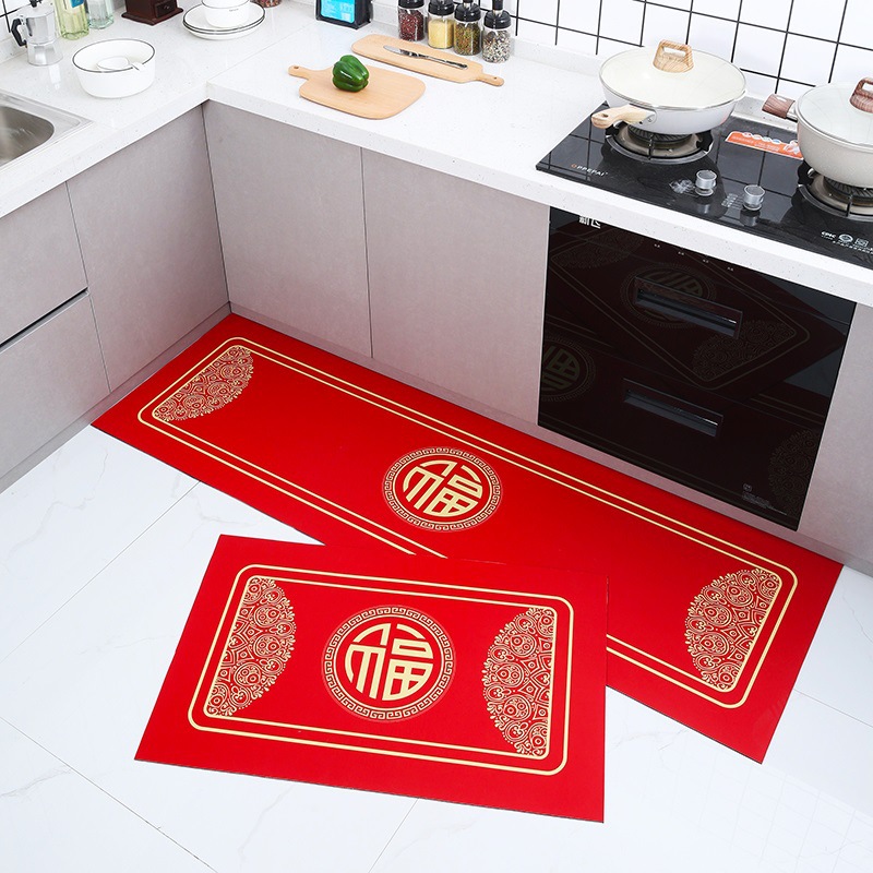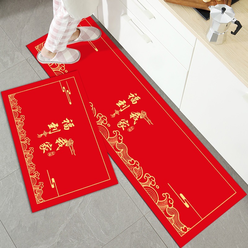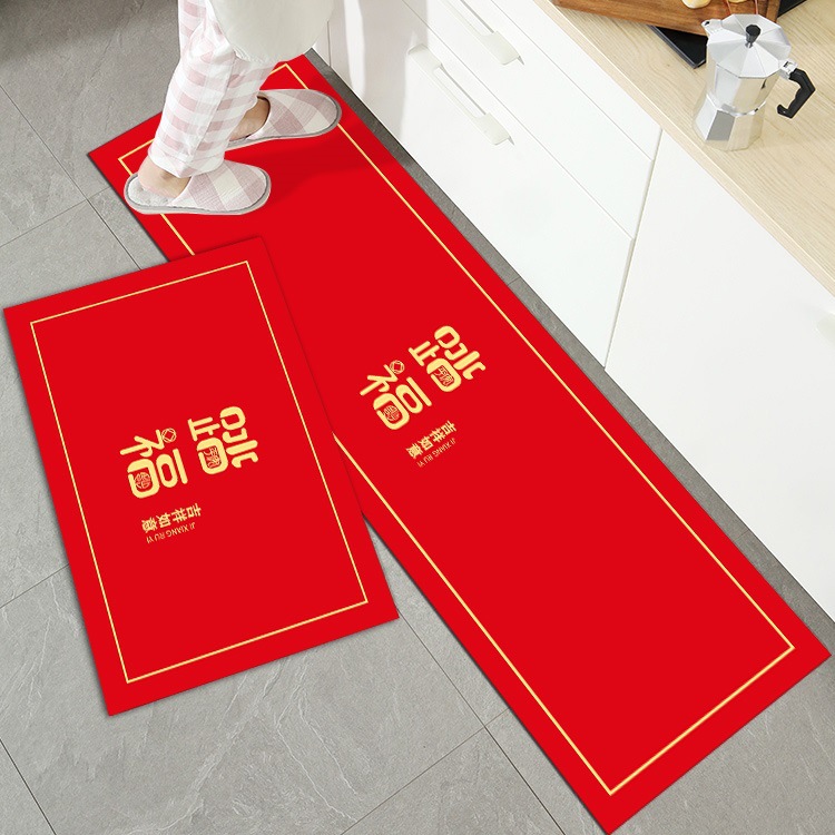 세탁 Sga 진흙 주방 매트 레드 중국식 푸지 발 매트 가정용 욕실 문 매트 물 흡수 오일 흡수 미끄럼 방지 긴 매트