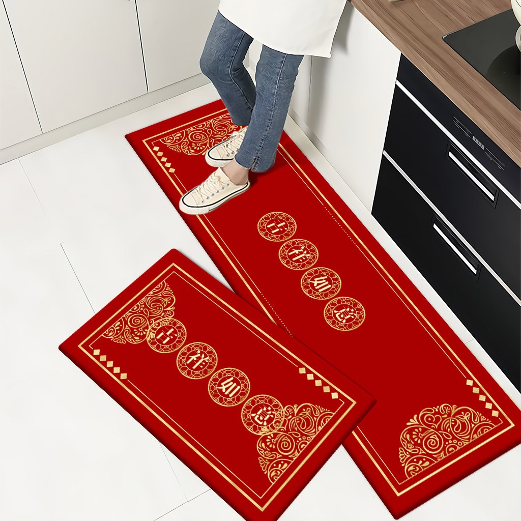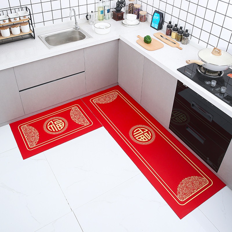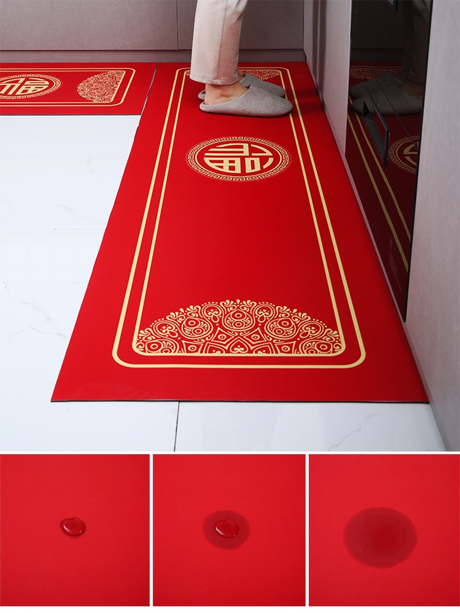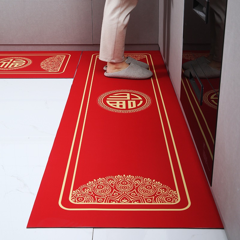 세탁 Sga 진흙 주방 매트 레드 중국식 푸지 발 매트 가정용 욕실 문 매트 물 흡수 오일 흡수 미끄럼 방지 긴 매트스토어 가기