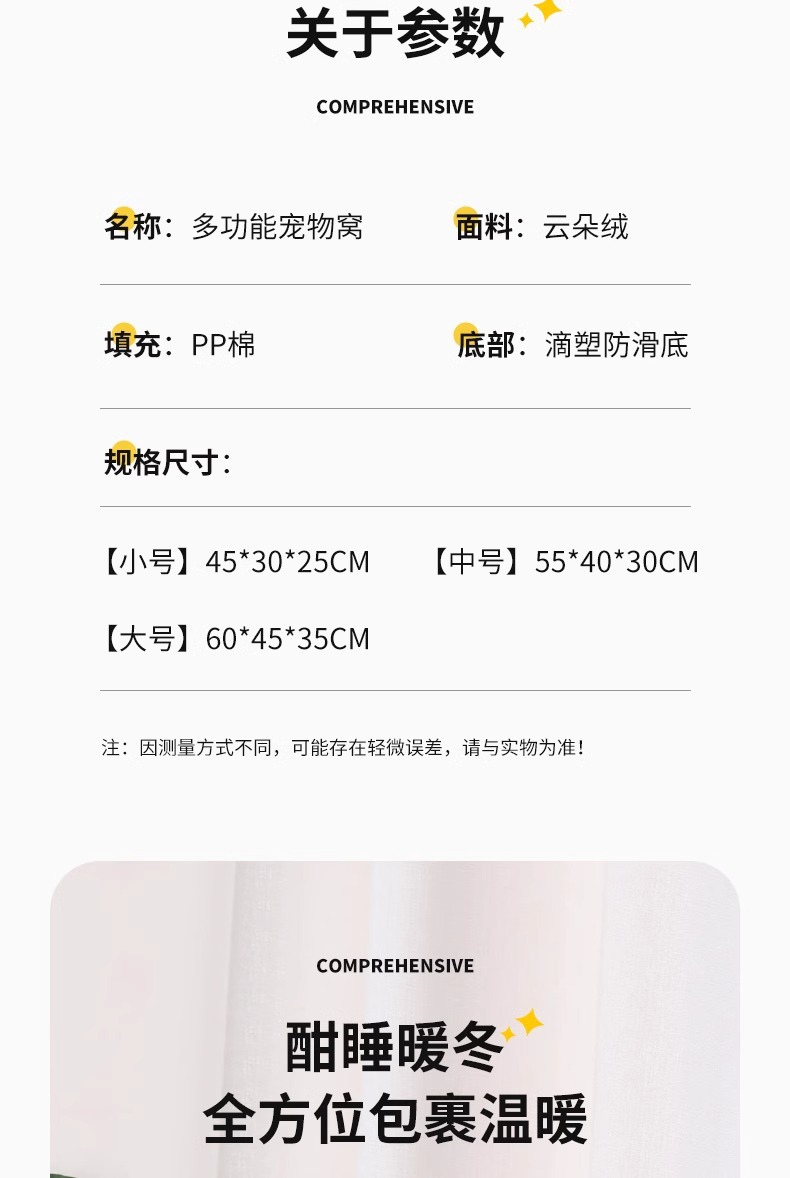 Kennel Winter 따뜻한 탈착식 및 세척 가능한 반 폐쇄 개 침대 사계절 유니버설 작은 개 강아지 잠자는 매트 겨울 매트