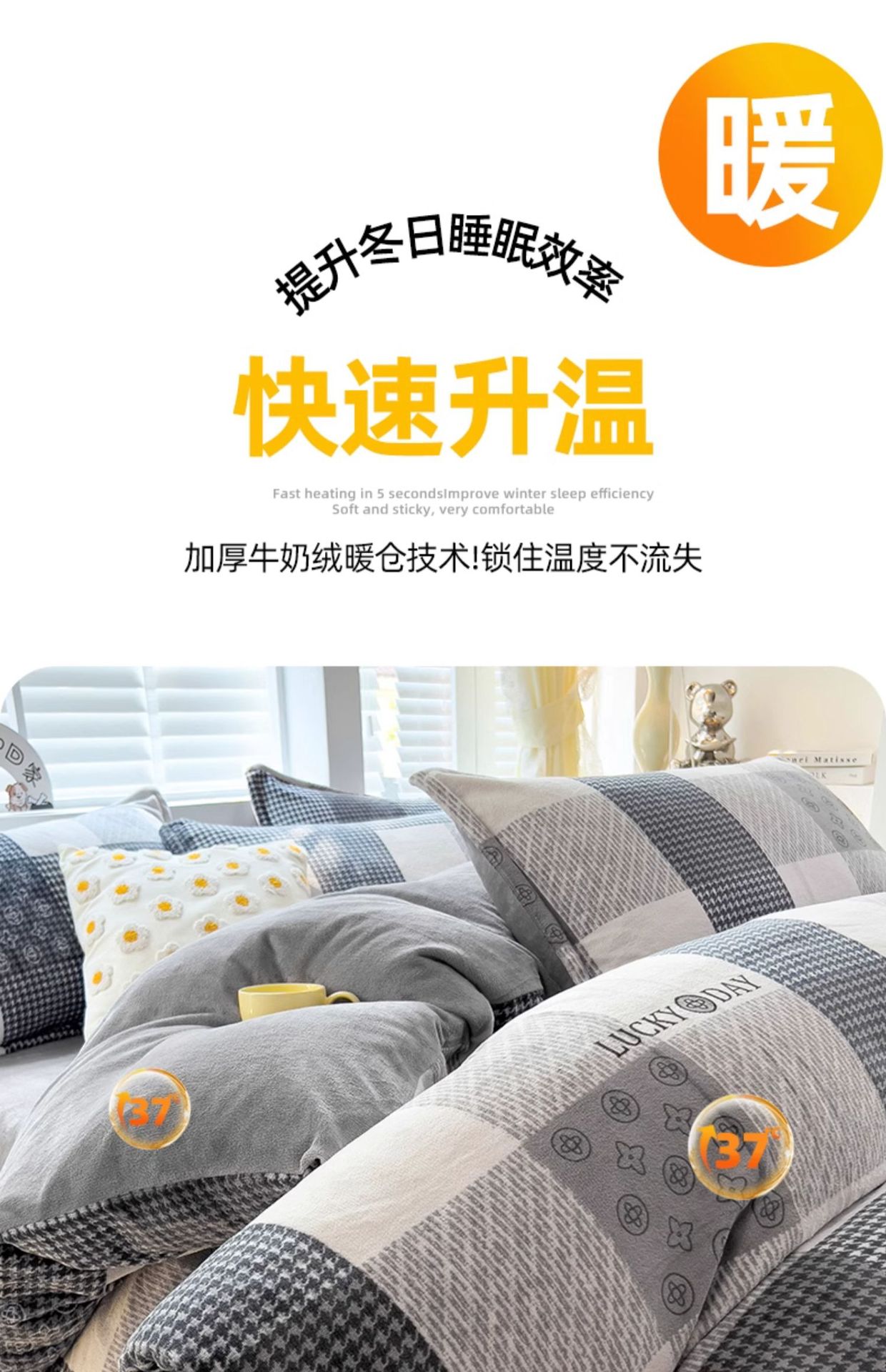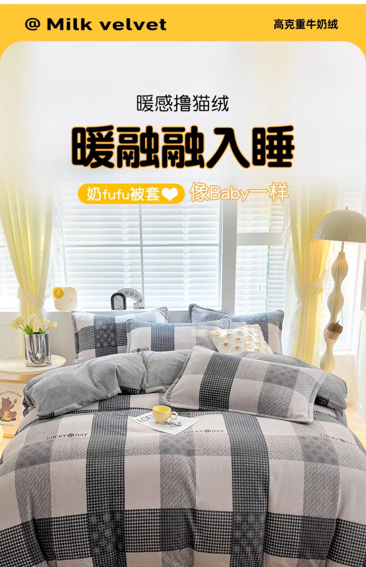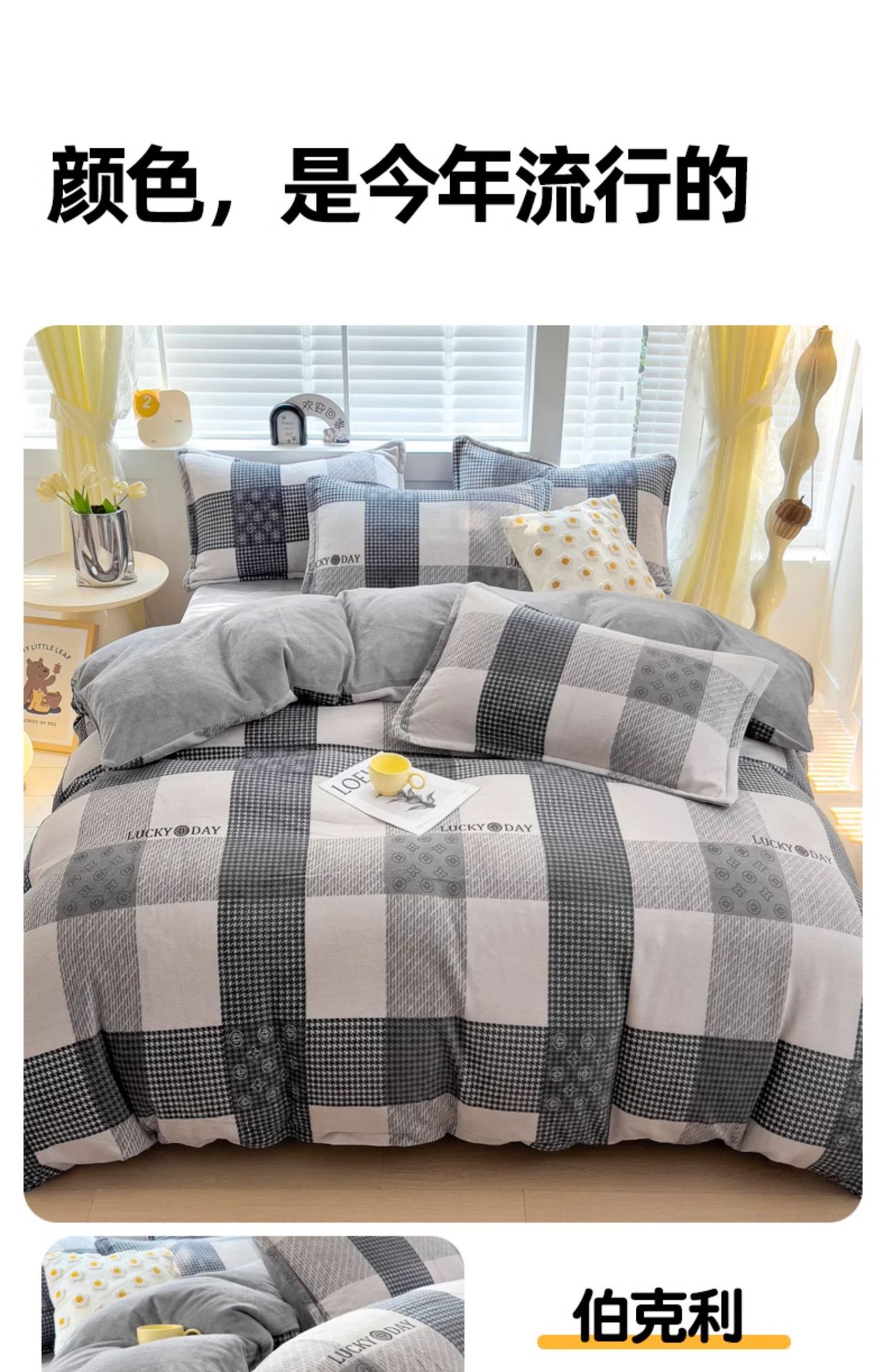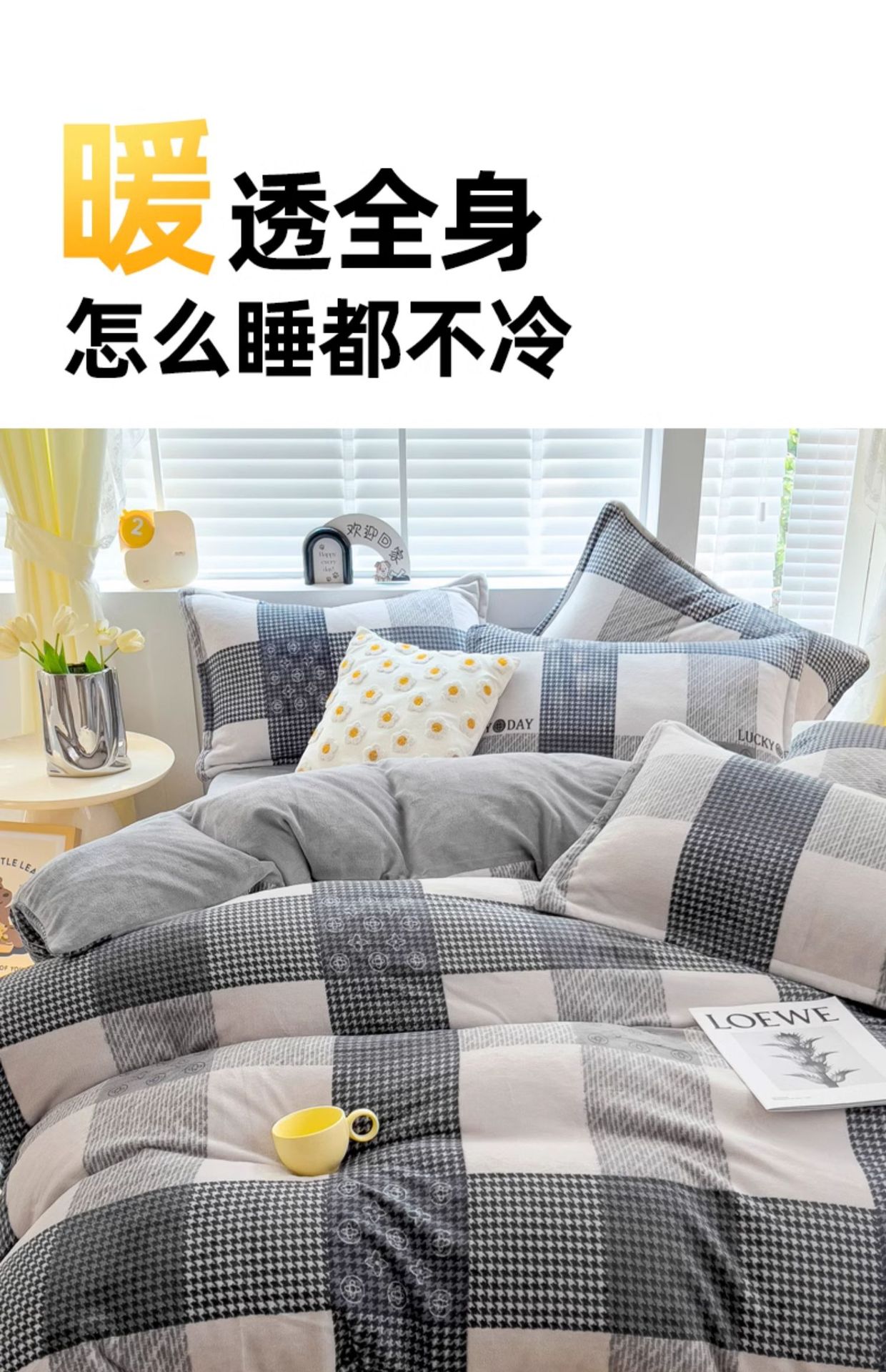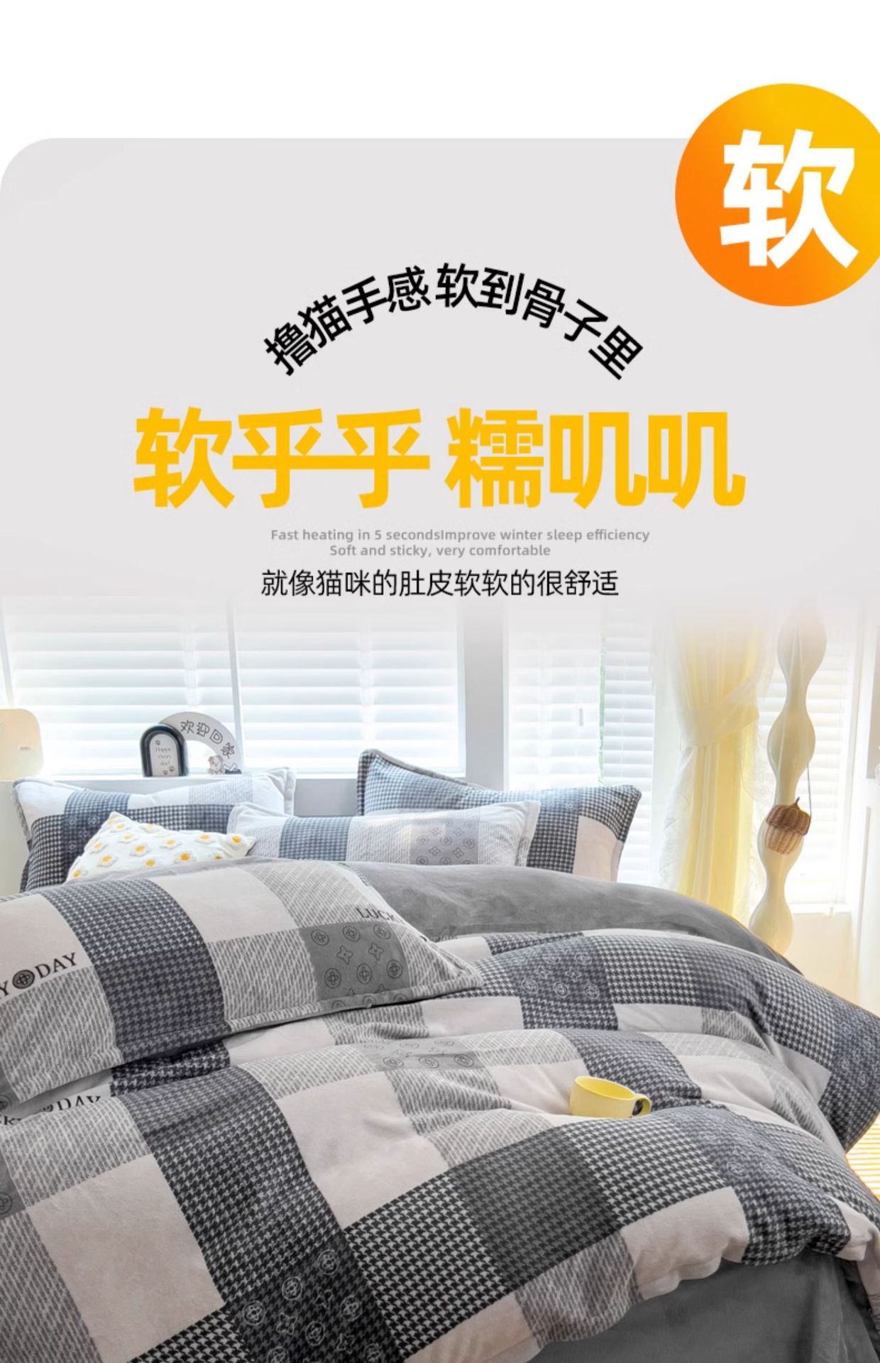겨울 우유 벨벳 이불 커버 싱글 기모 두꺼운 산호 벨벳 150x200x230 싱글 및 더블 퀼트 커버 4 피스 세트스토어 가기