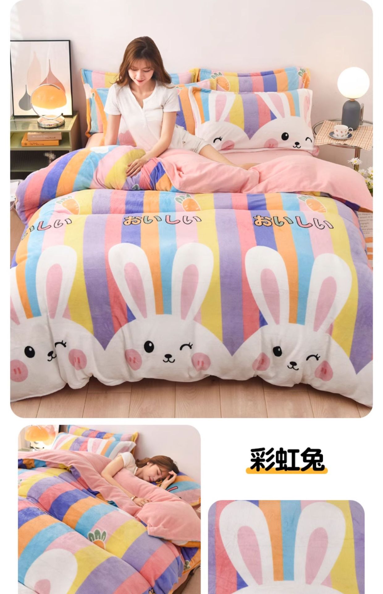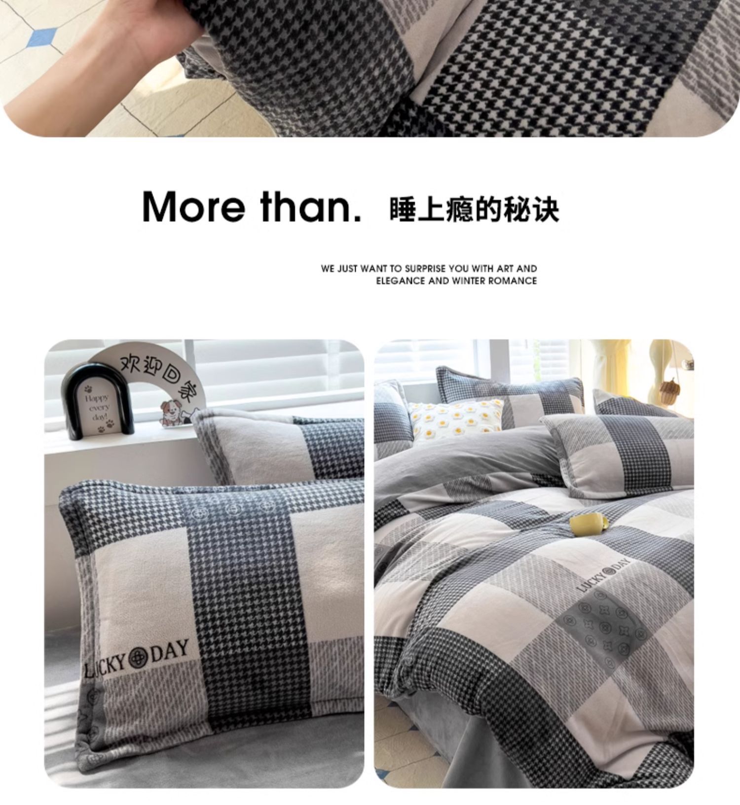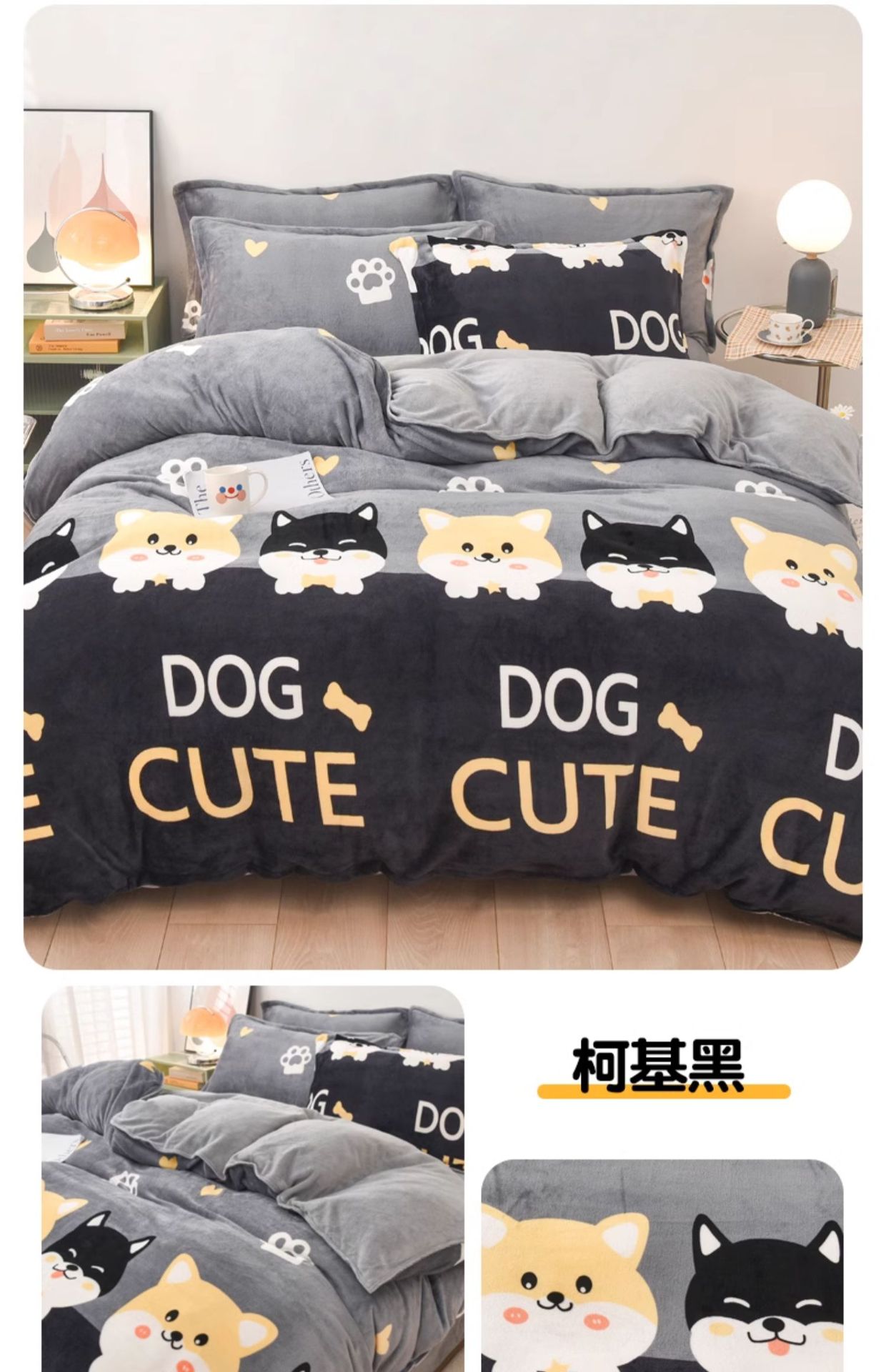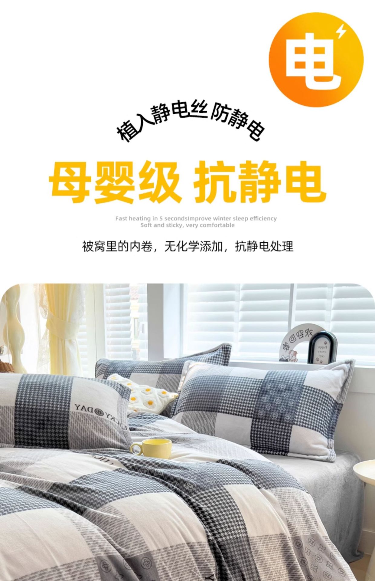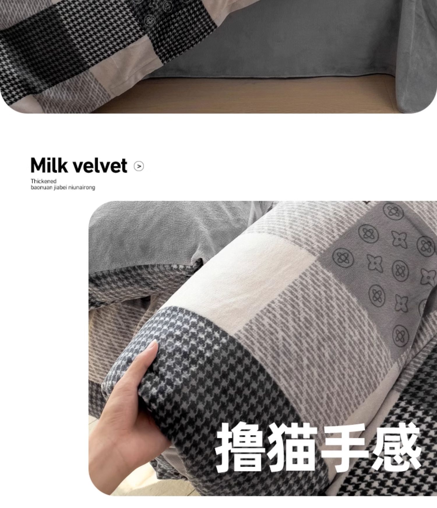 겨울 우유 벨벳 이불 커버 싱글 기모 두꺼운 산호 벨벳 150x200x230 싱글 및 더블 퀼트 커버 4 피스 세트스토어 가기