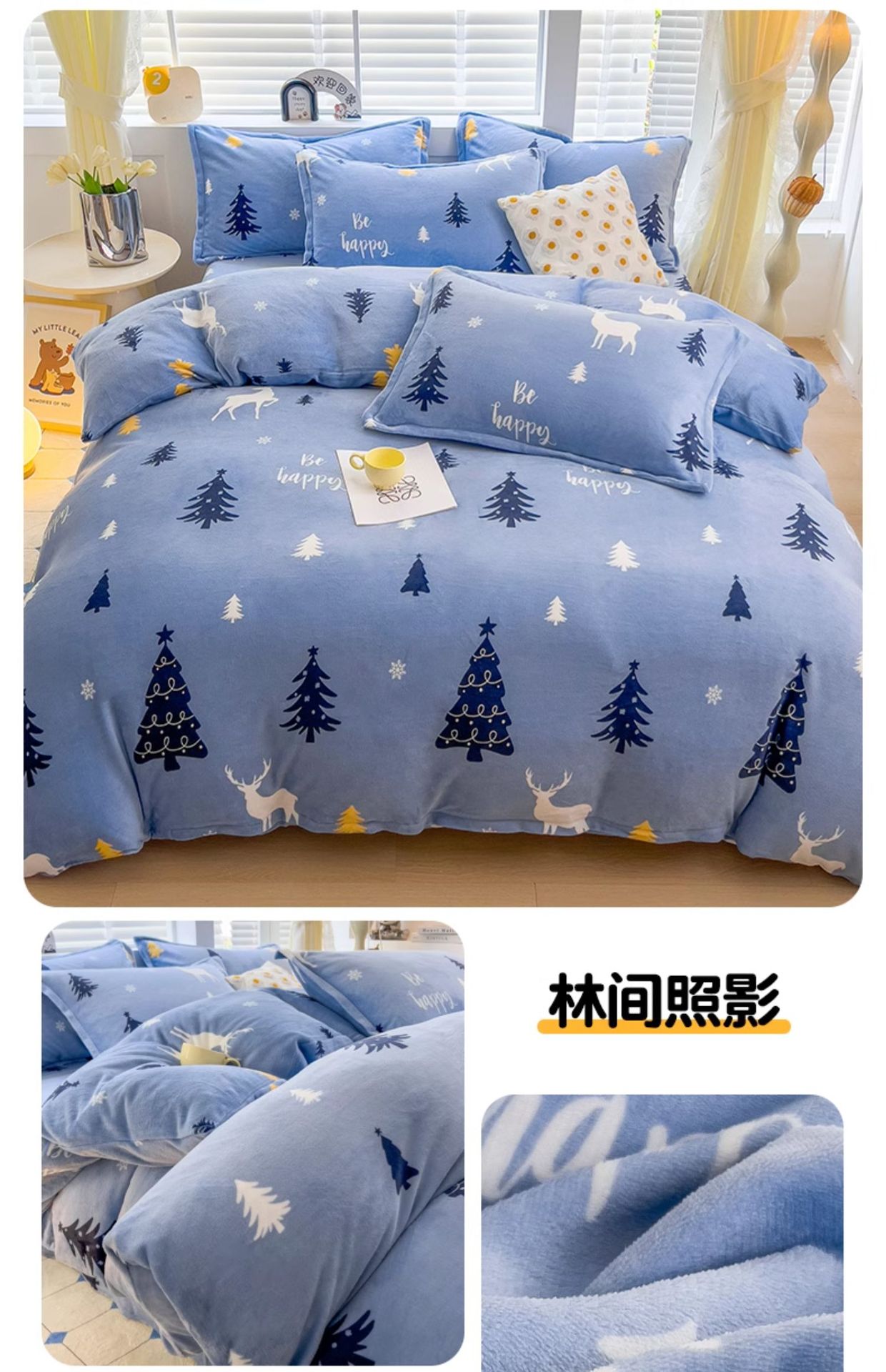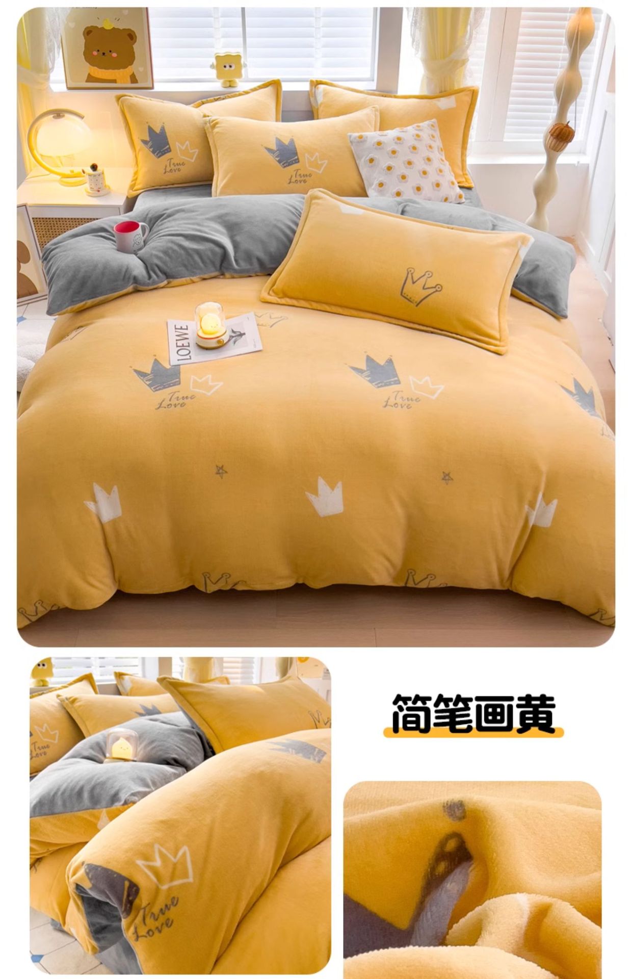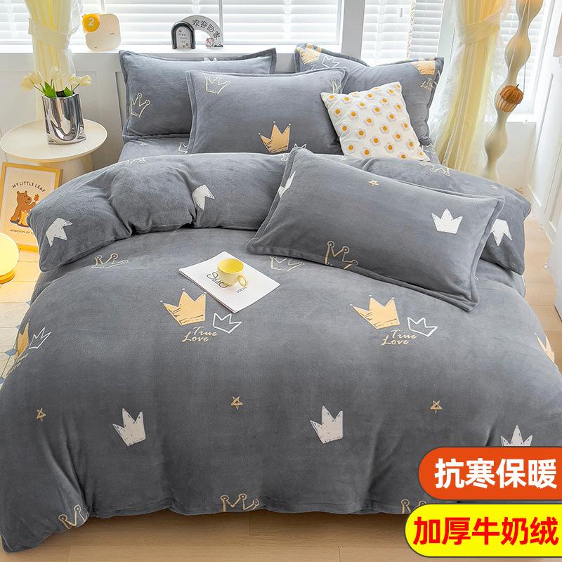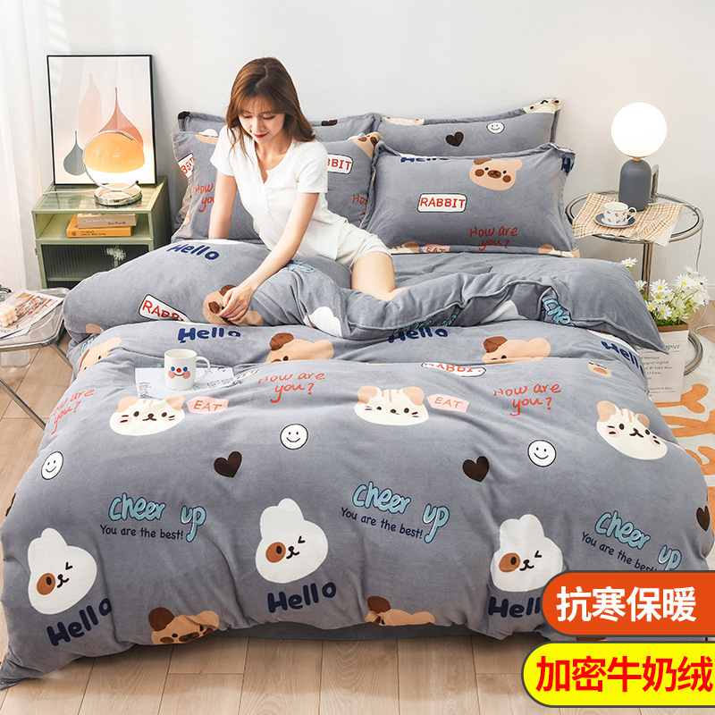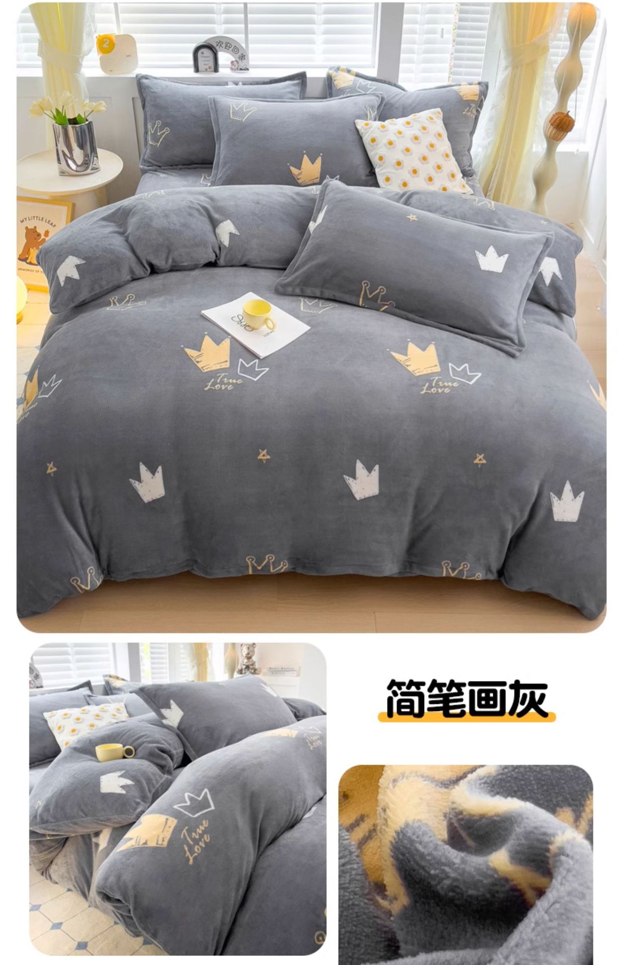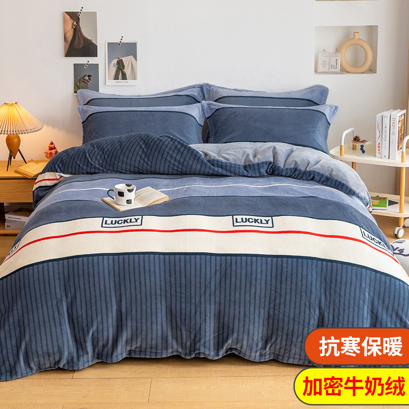 겨울 우유 벨벳 이불 커버 싱글 기모 두꺼운 산호 벨벳 150x200x230 싱글 및 더블 퀼트 커버 4 피스 세트