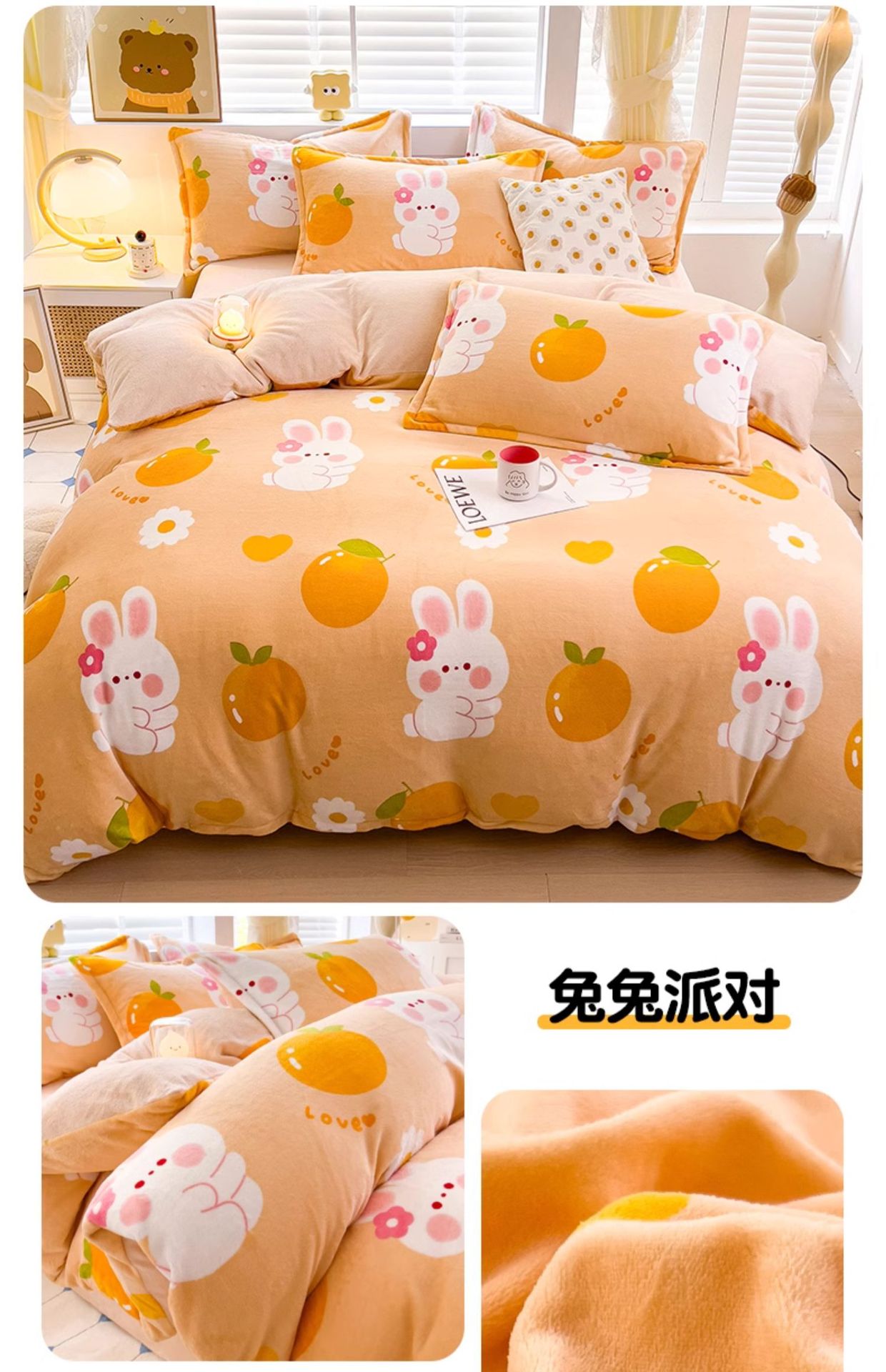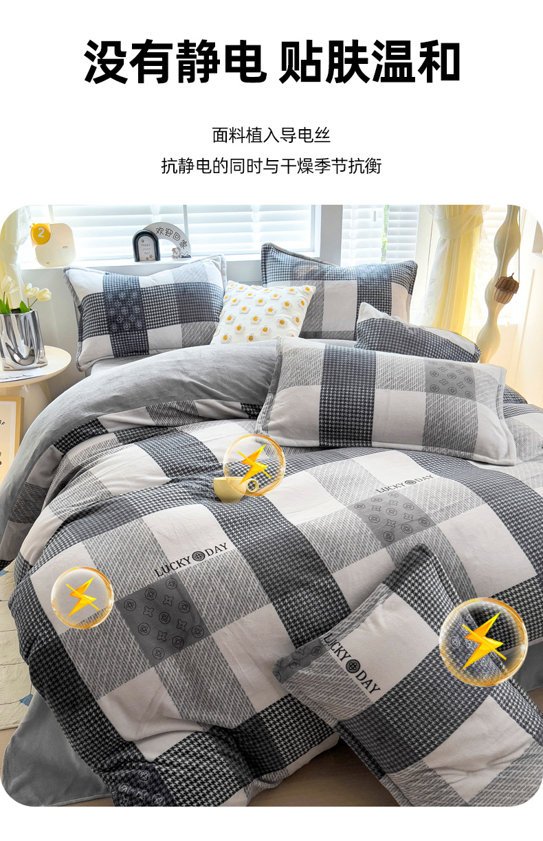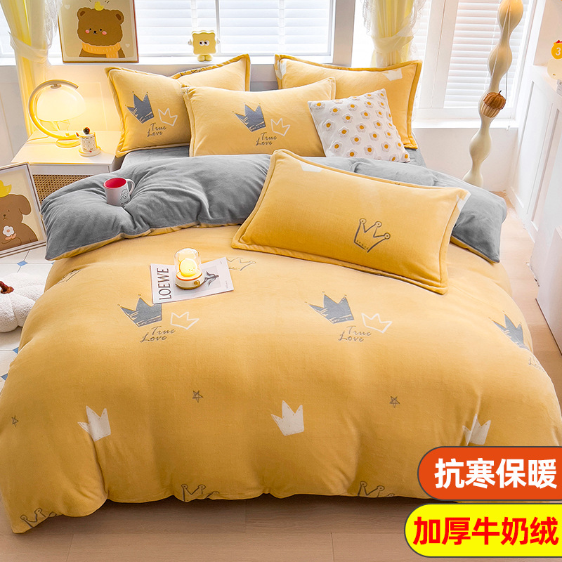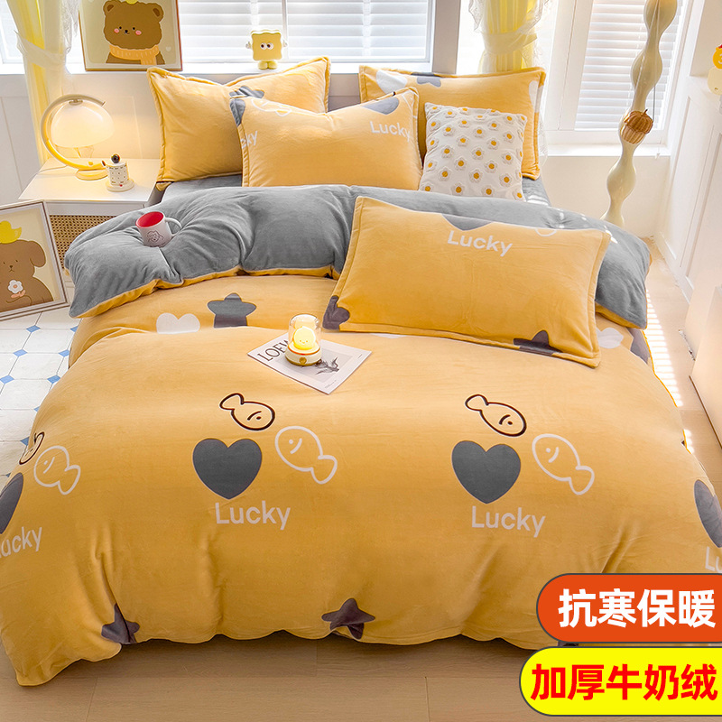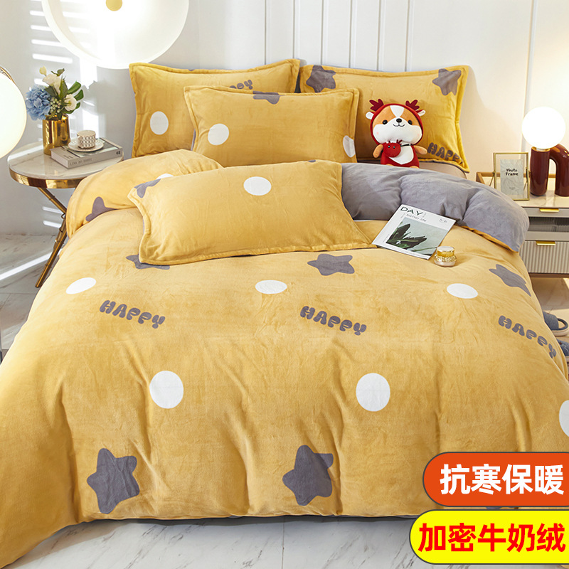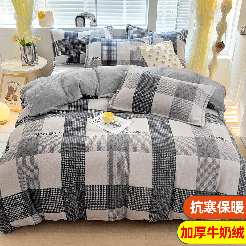 겨울 우유 벨벳 이불 커버 싱글 기모 두꺼운 산호 벨벳 150x200x230 싱글 및 더블 퀼트 커버 4 피스 세트