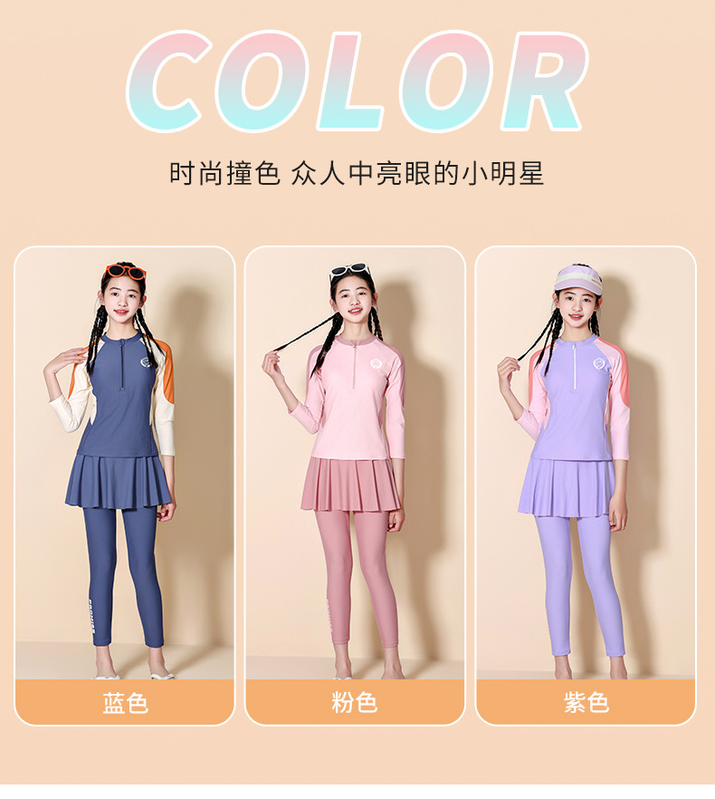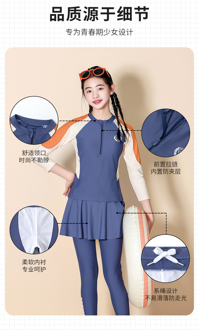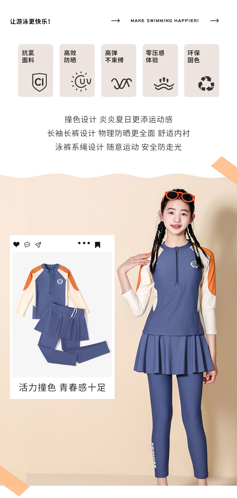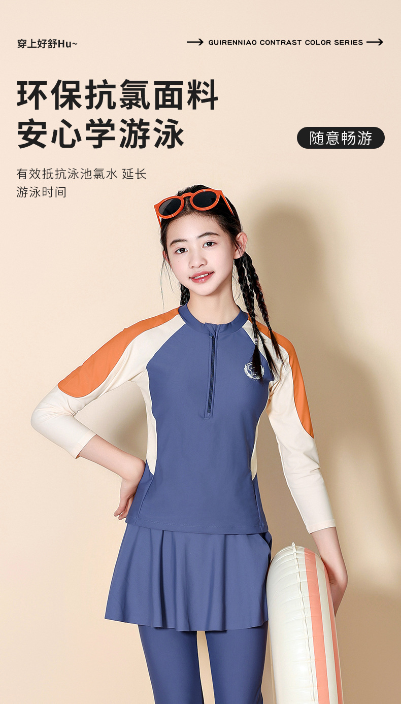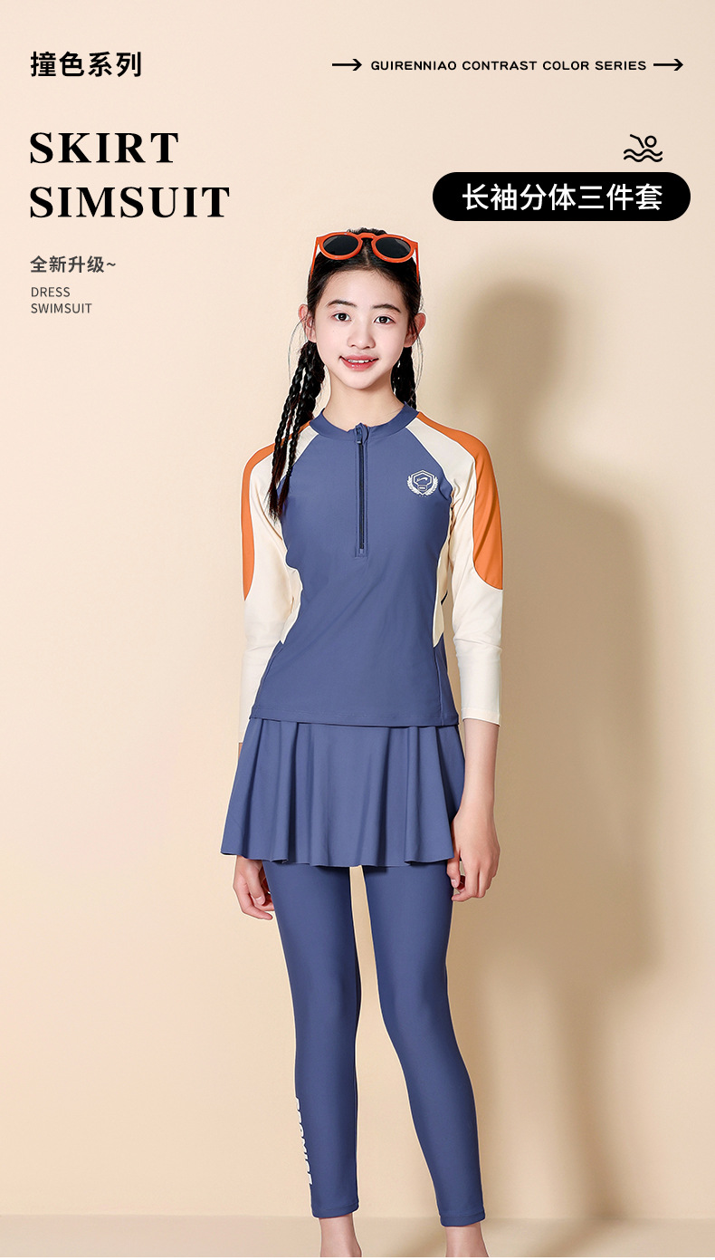 노블 버드 어린이 수영복 여아 따뜻한 쪼개기 중 · 대형 어린이 중학생 2024 긴 소매 바지 온천 수영복