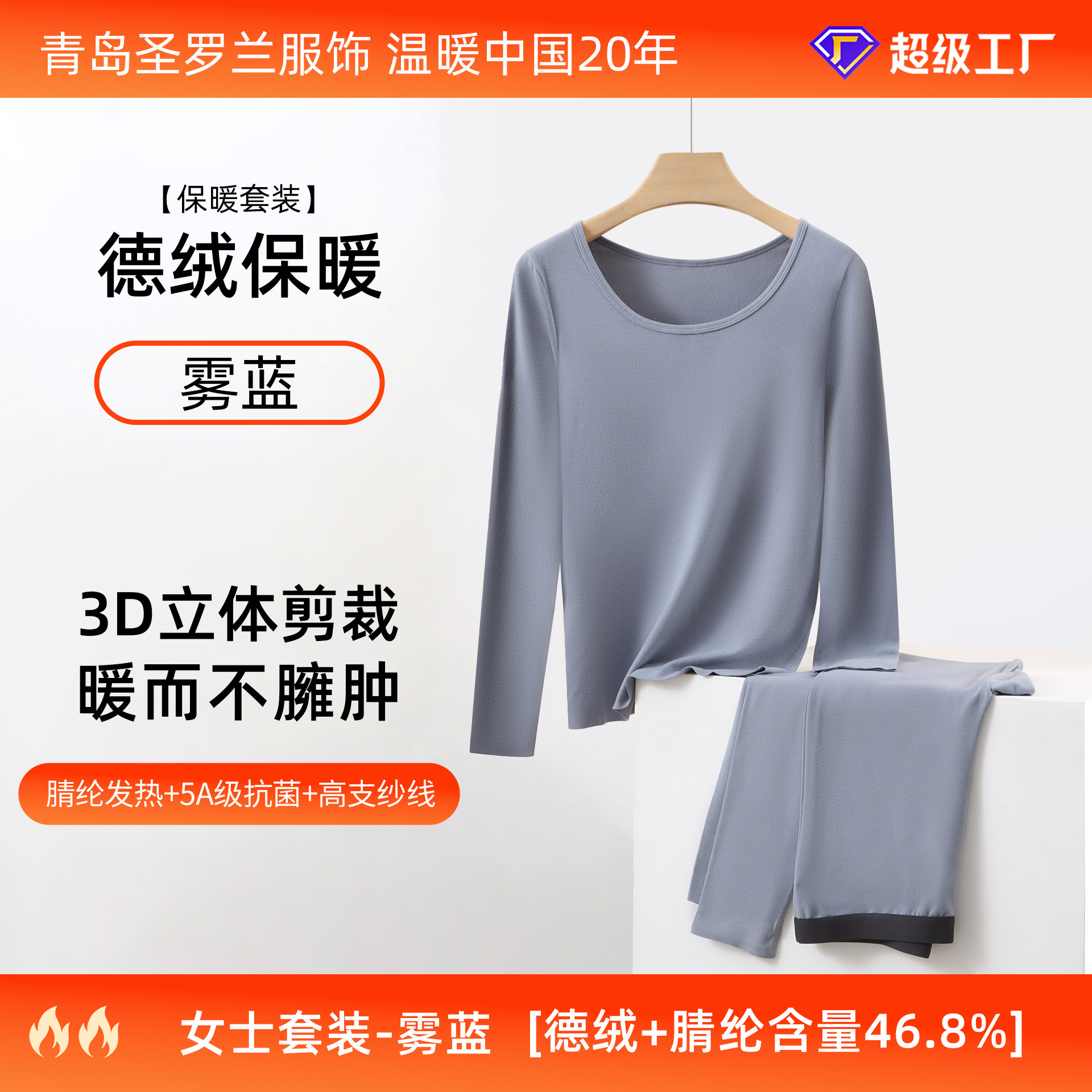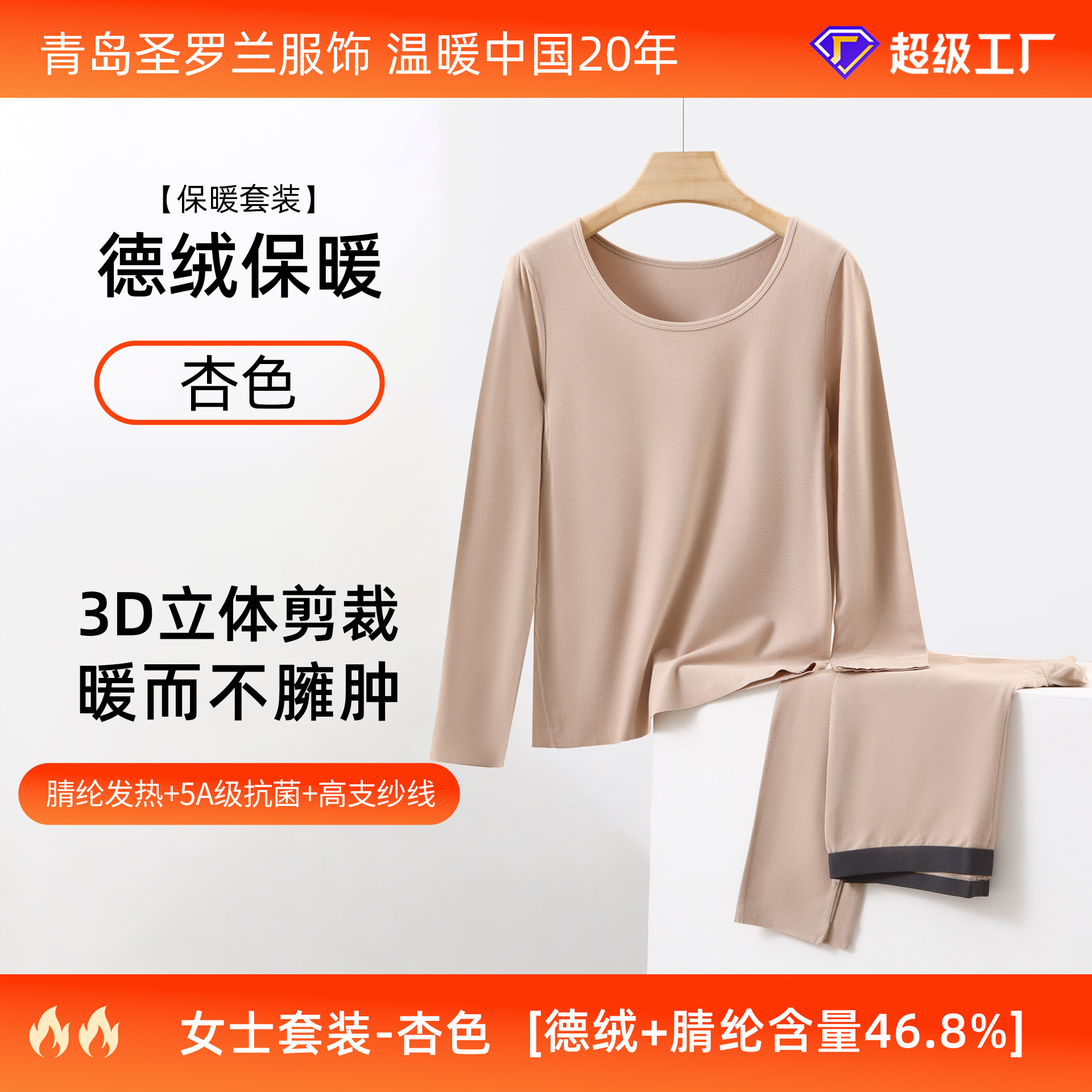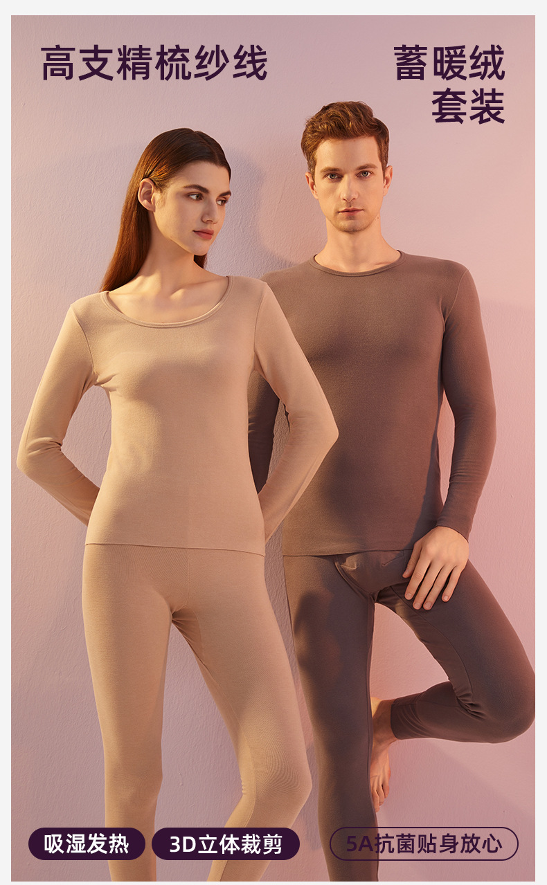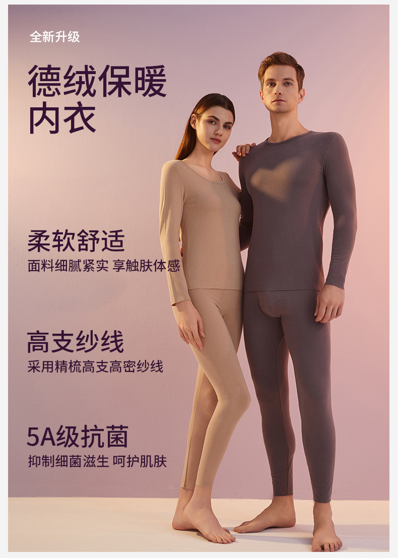 데롱 보온 내의 여성용 발열 얇은 무봉제 라운드넥 가을옷 가을바지 세트 남성 맞춤 제작 및 배송스토어 가기