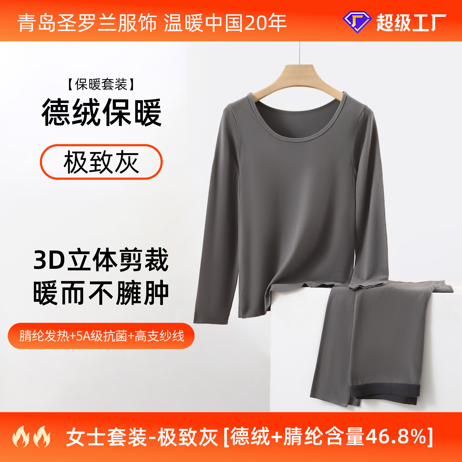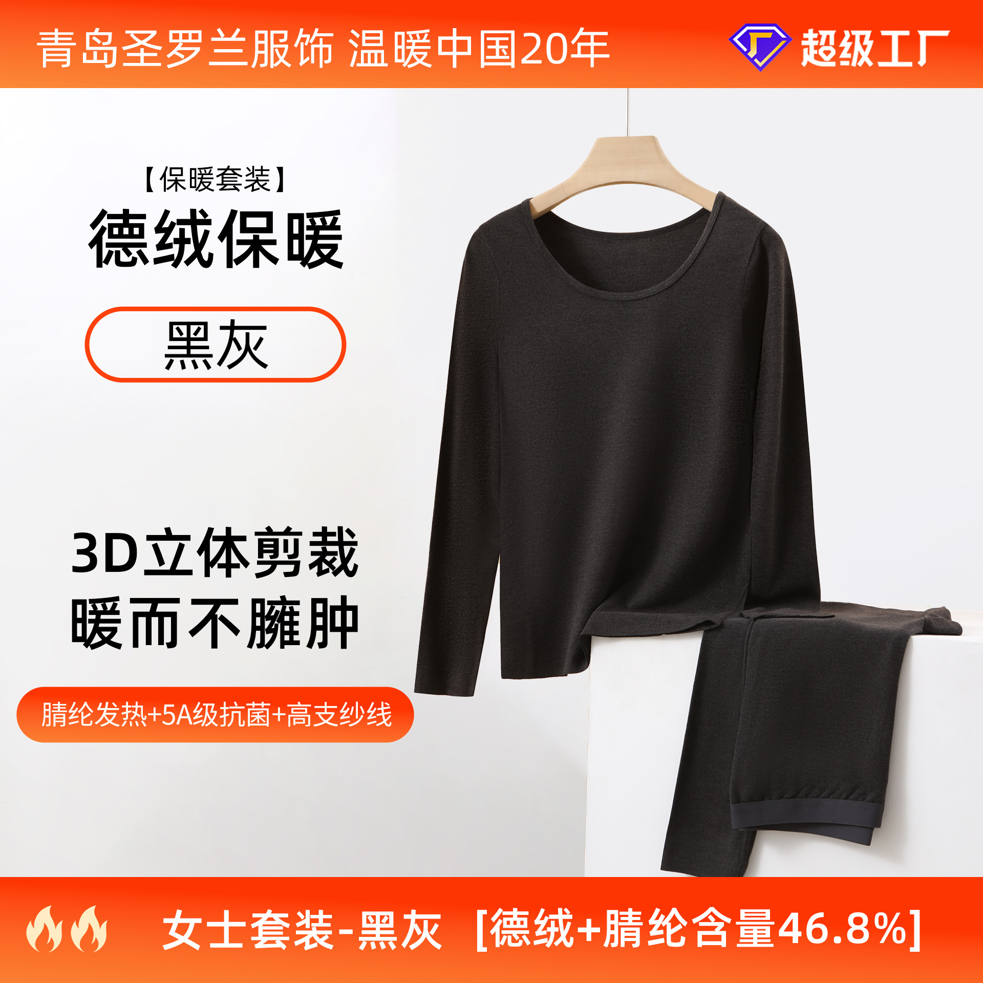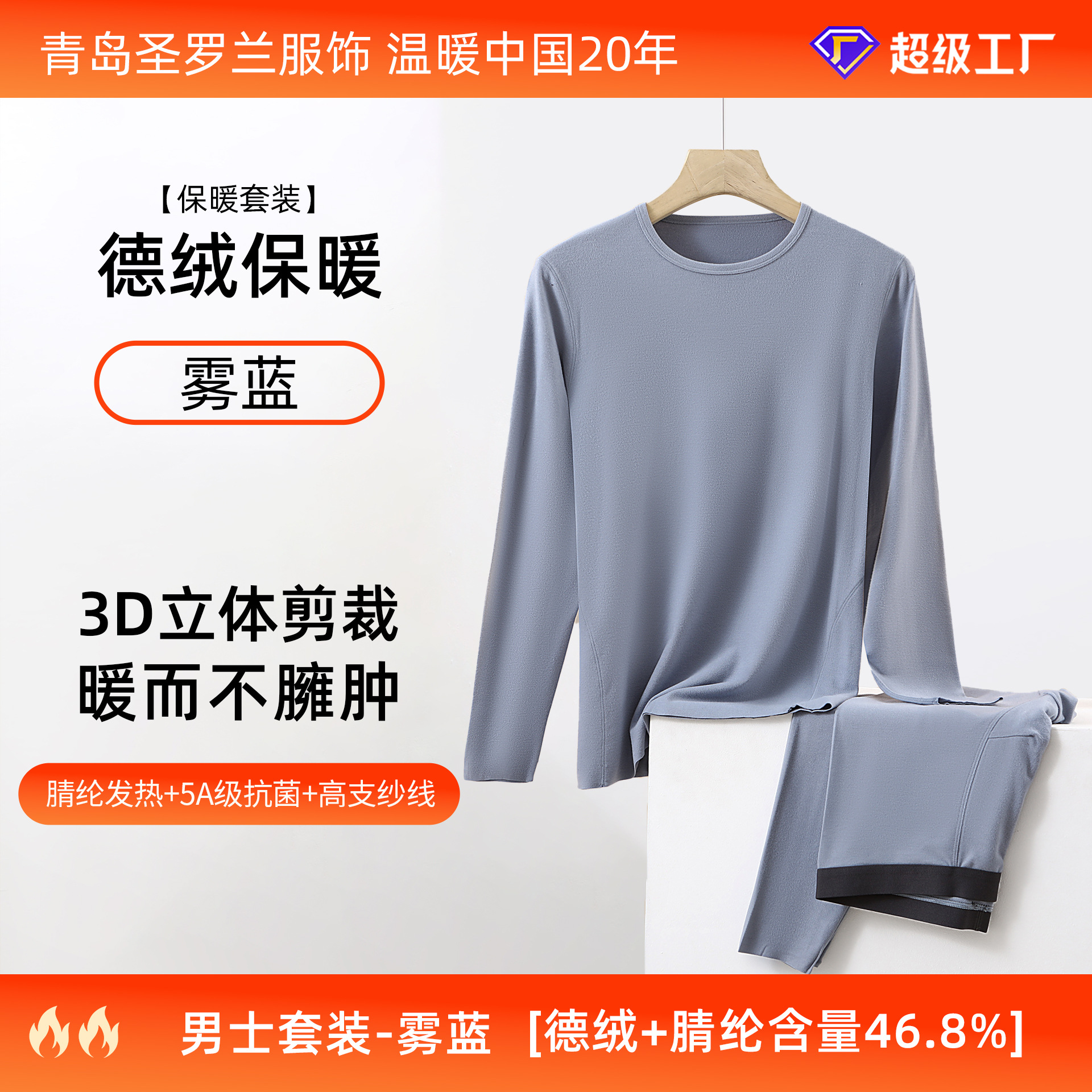 데롱 보온 내의 여성용 발열 얇은 무봉제 라운드넥 가을옷 가을바지 세트 남성 맞춤 제작 및 배송스토어 가기