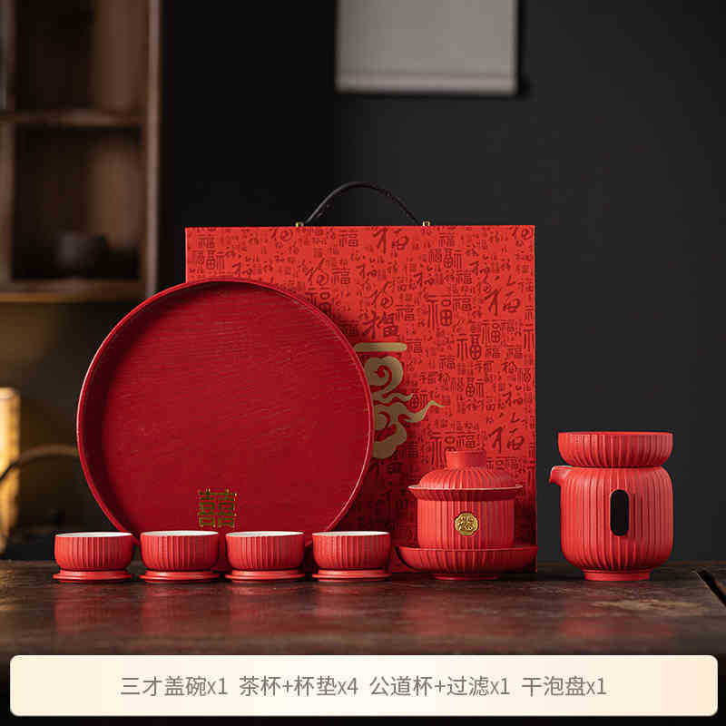 웨딩 티 세트 세트 웨딩 동반 선물 하이 엔드 크리에이티브 동반 선물 쿵푸 티 세트 라이트 럭셔리 티 플레이트 커스터마이징