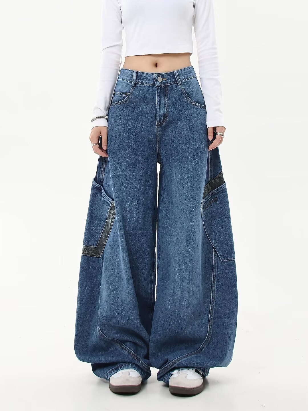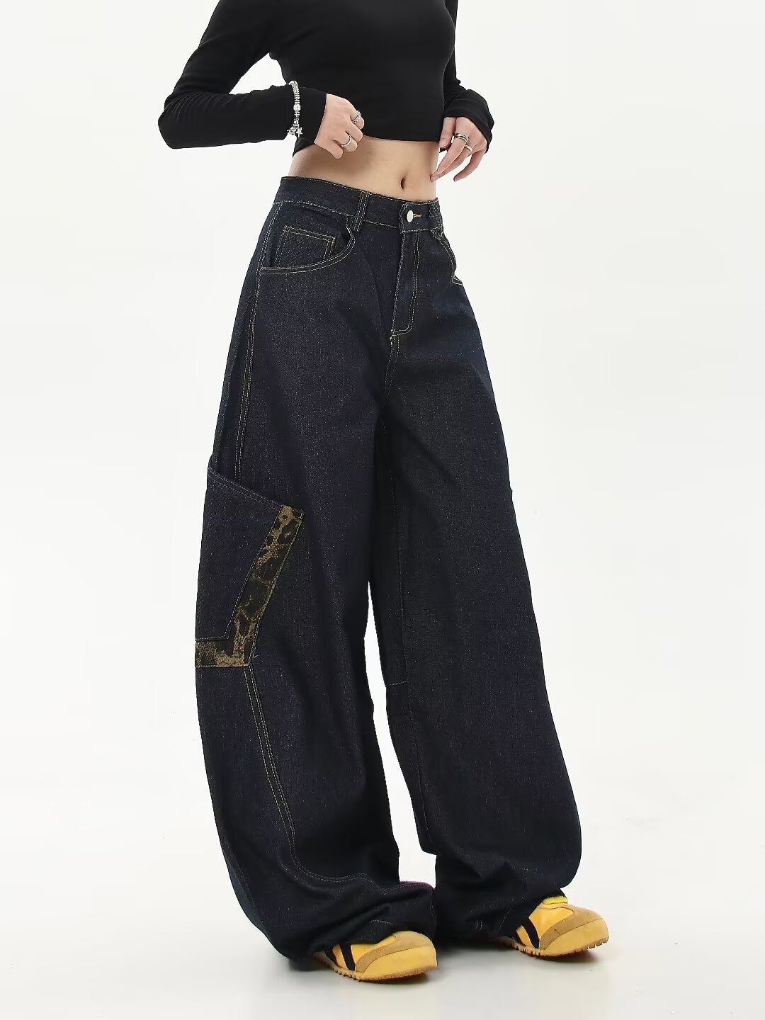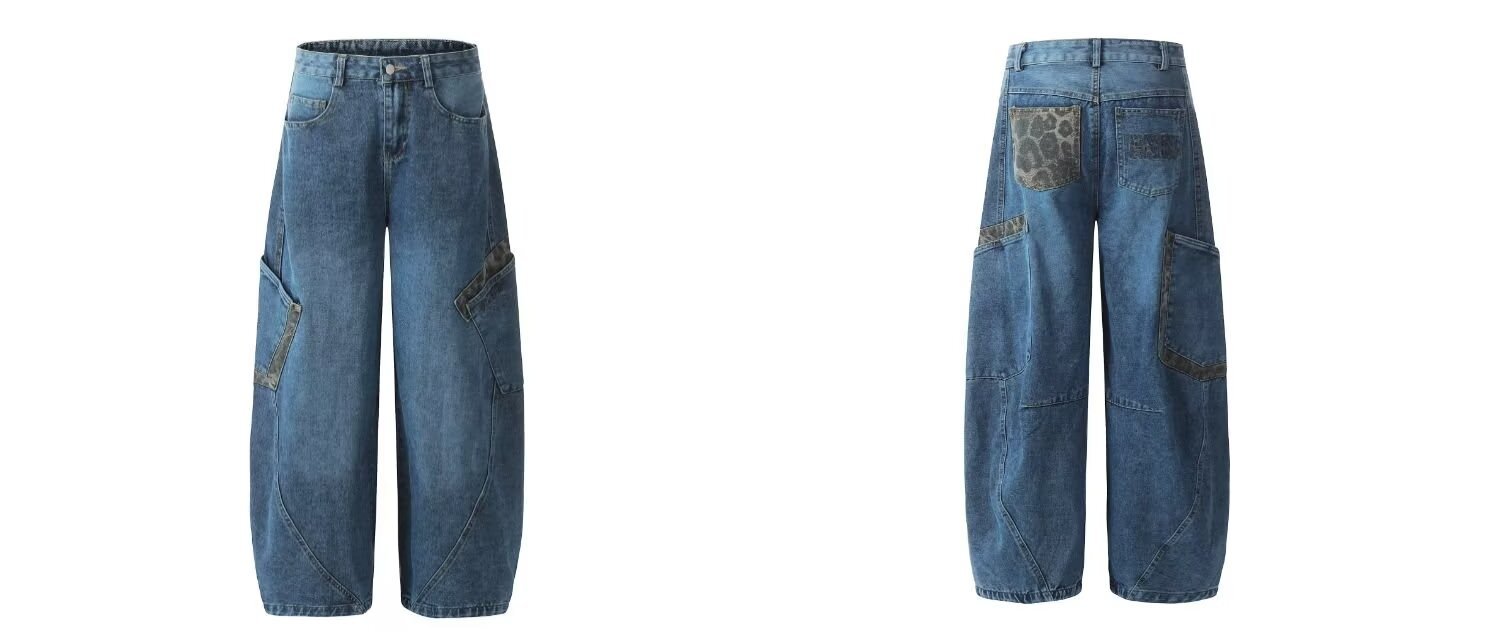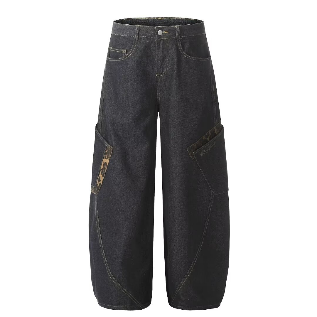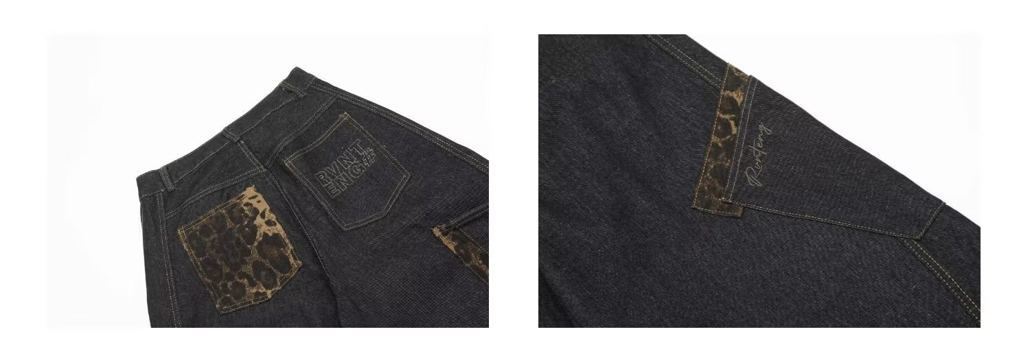 아메리칸 스타일 레트로 틈새 드레스 와이드 레그 청바지 여성의 가을과 겨울 새로운 느슨한 슬리밍 레오파드 무늬 마체테 바지스토어 가기