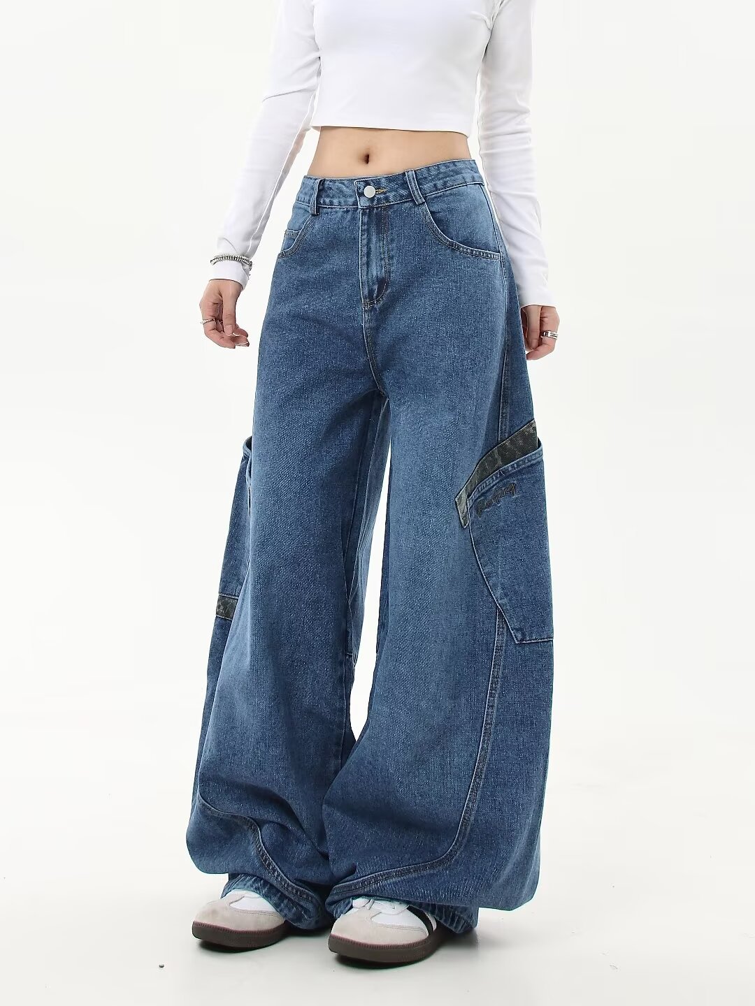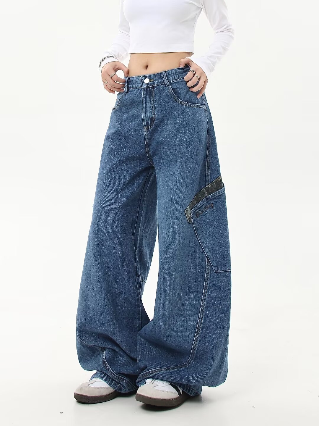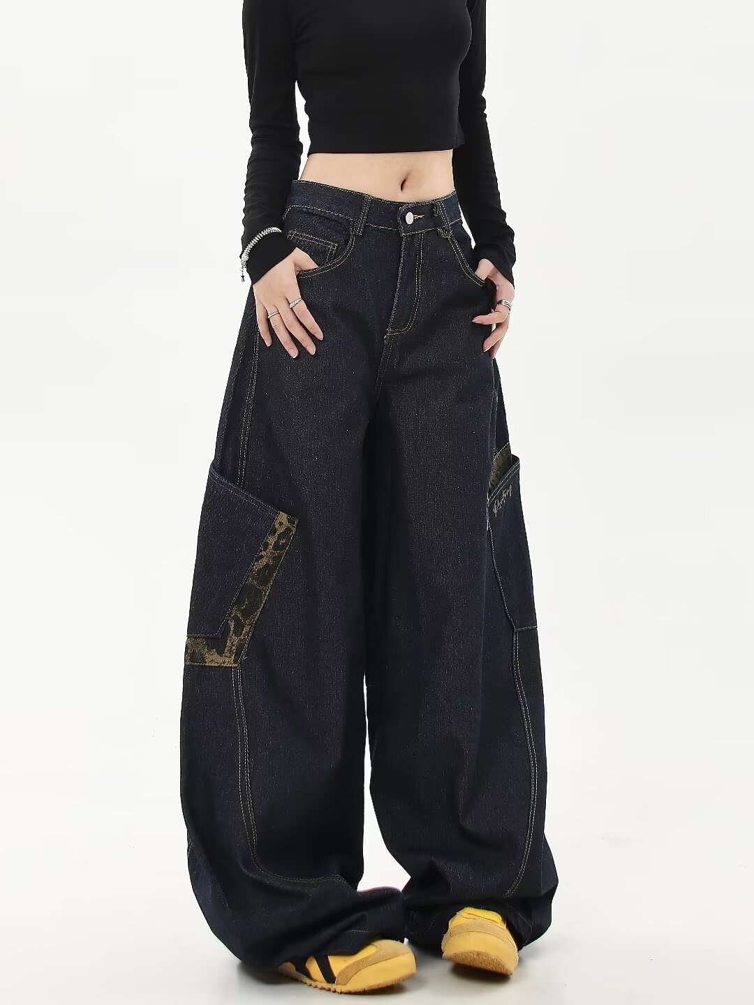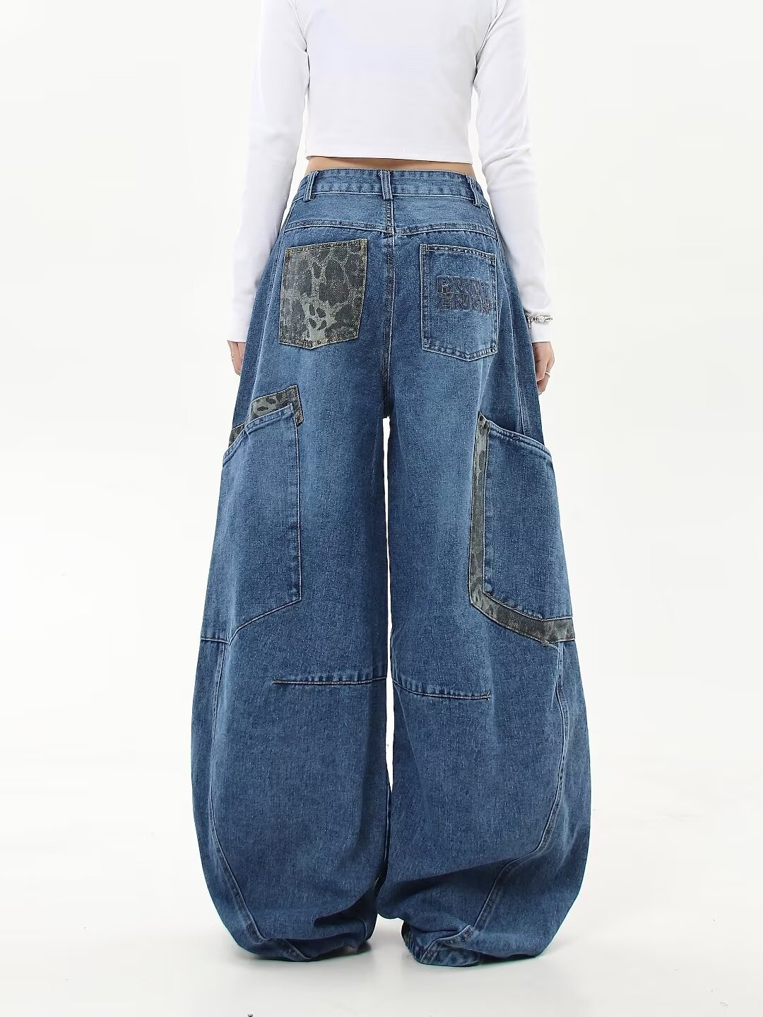 아메리칸 스타일 레트로 틈새 드레스 와이드 레그 청바지 여성의 가을과 겨울 새로운 느슨한 슬리밍 레오파드 무늬 마체테 바지스토어 가기
