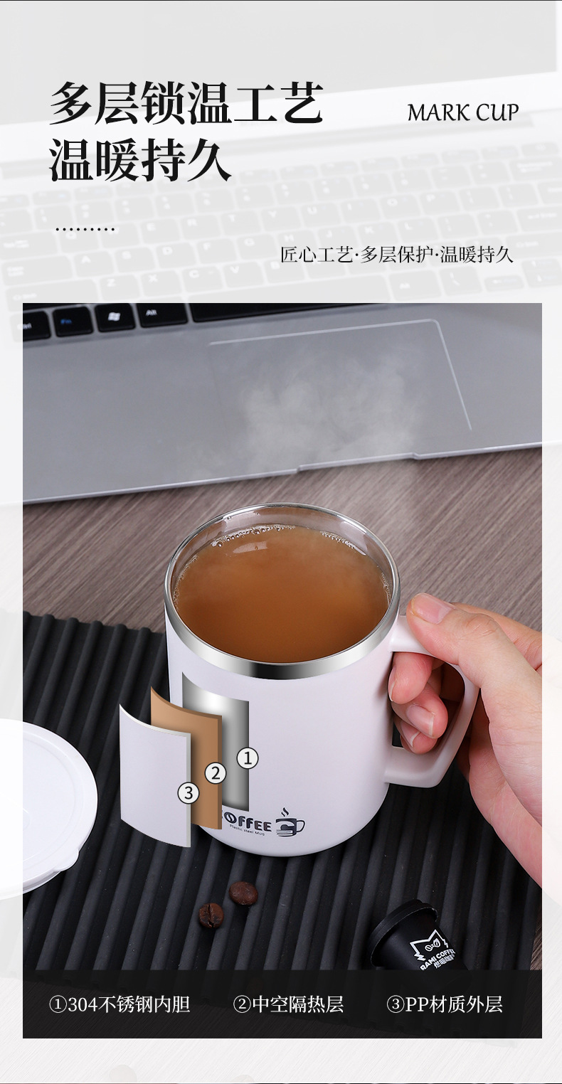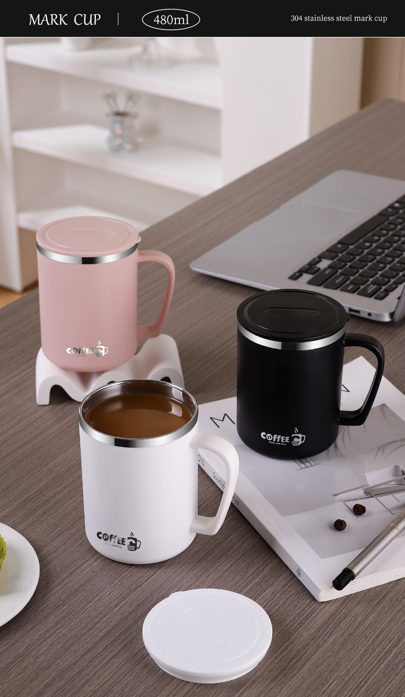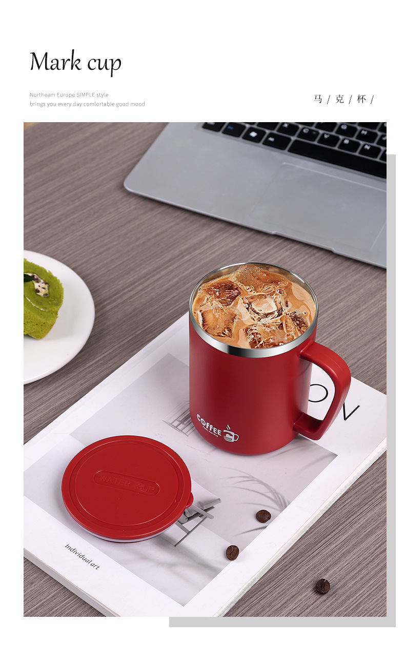 국경 304 스테인레스 스틸 더블 레이어 머그잔 안티 scald 안티 드롭 컵 뚜껑 사무실 커피 컵 선물