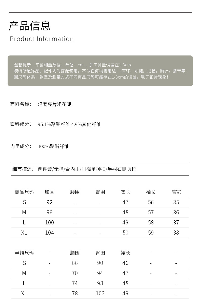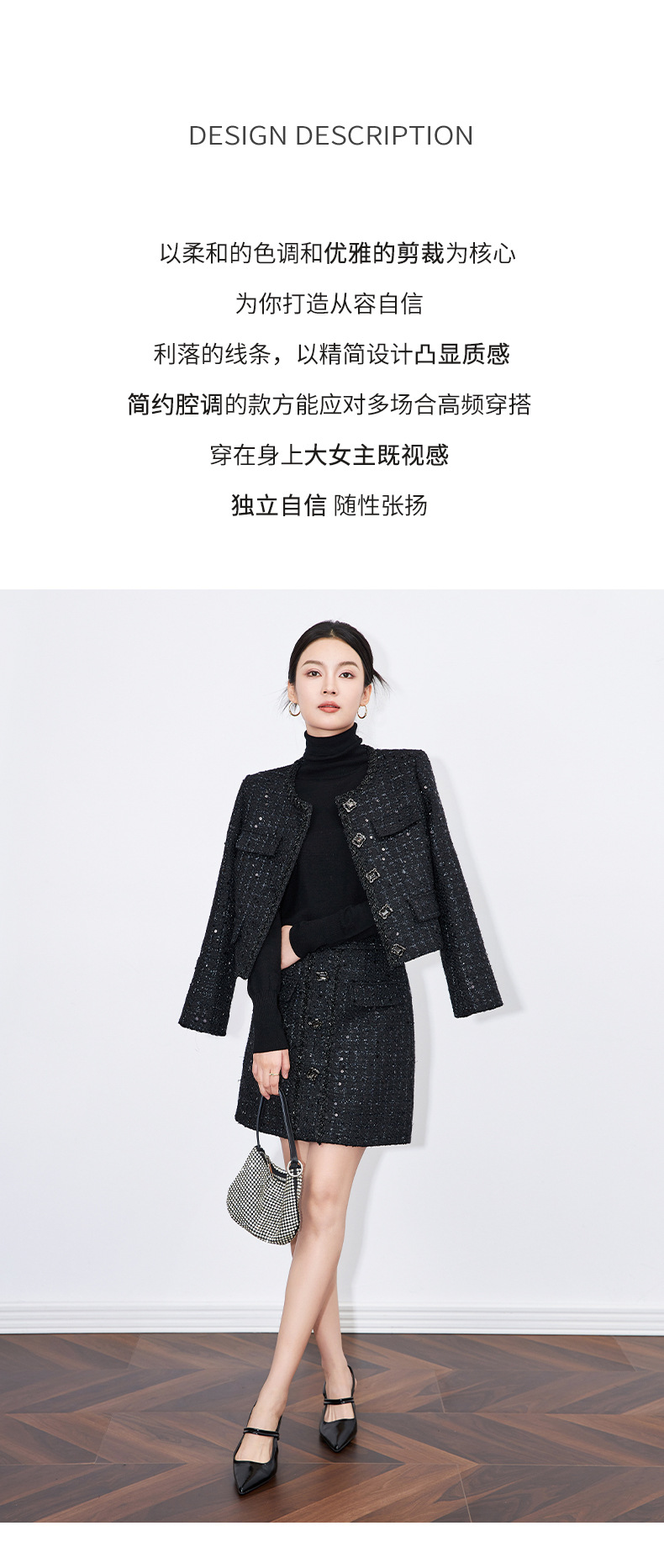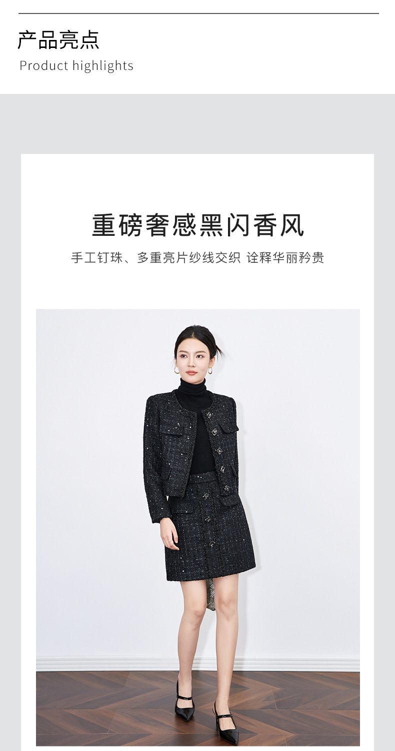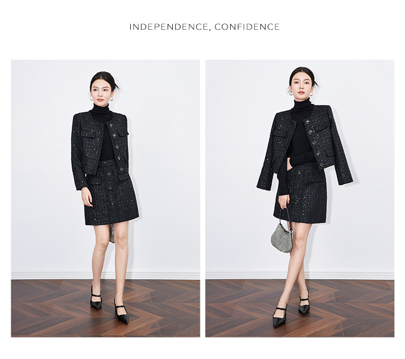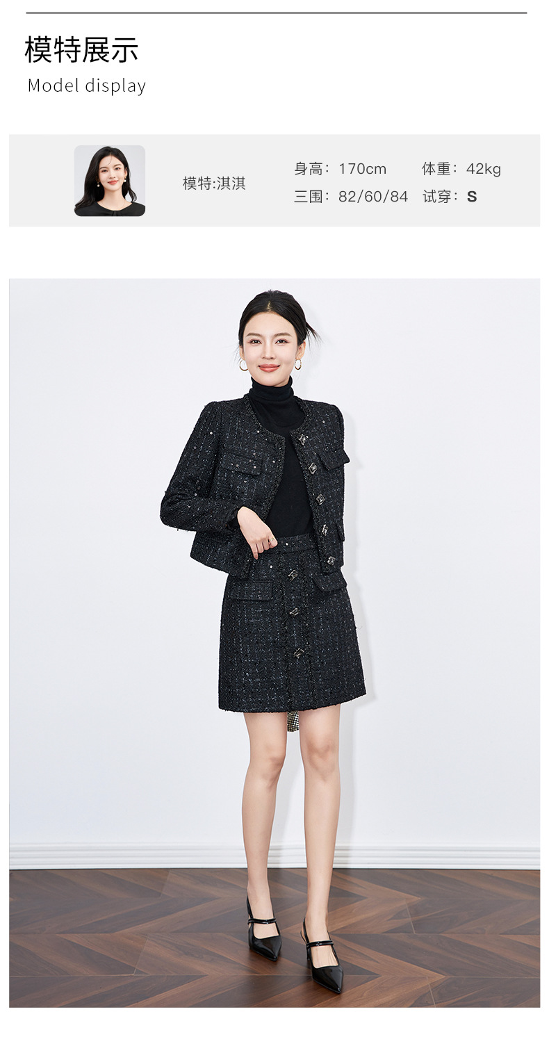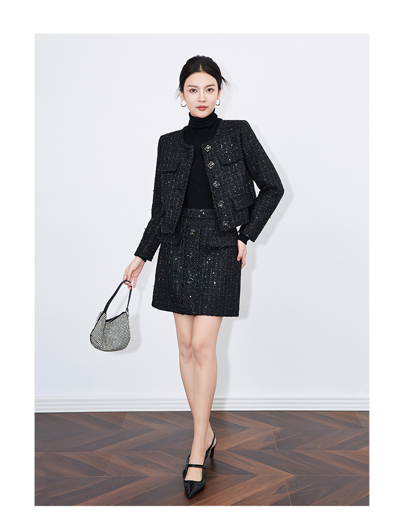2431708-경량 럭셔리 스타일의 반짝이는 고급스러운 상의 자켓+패셔너블한 스커트 투피스 여성 세트스토어 가기