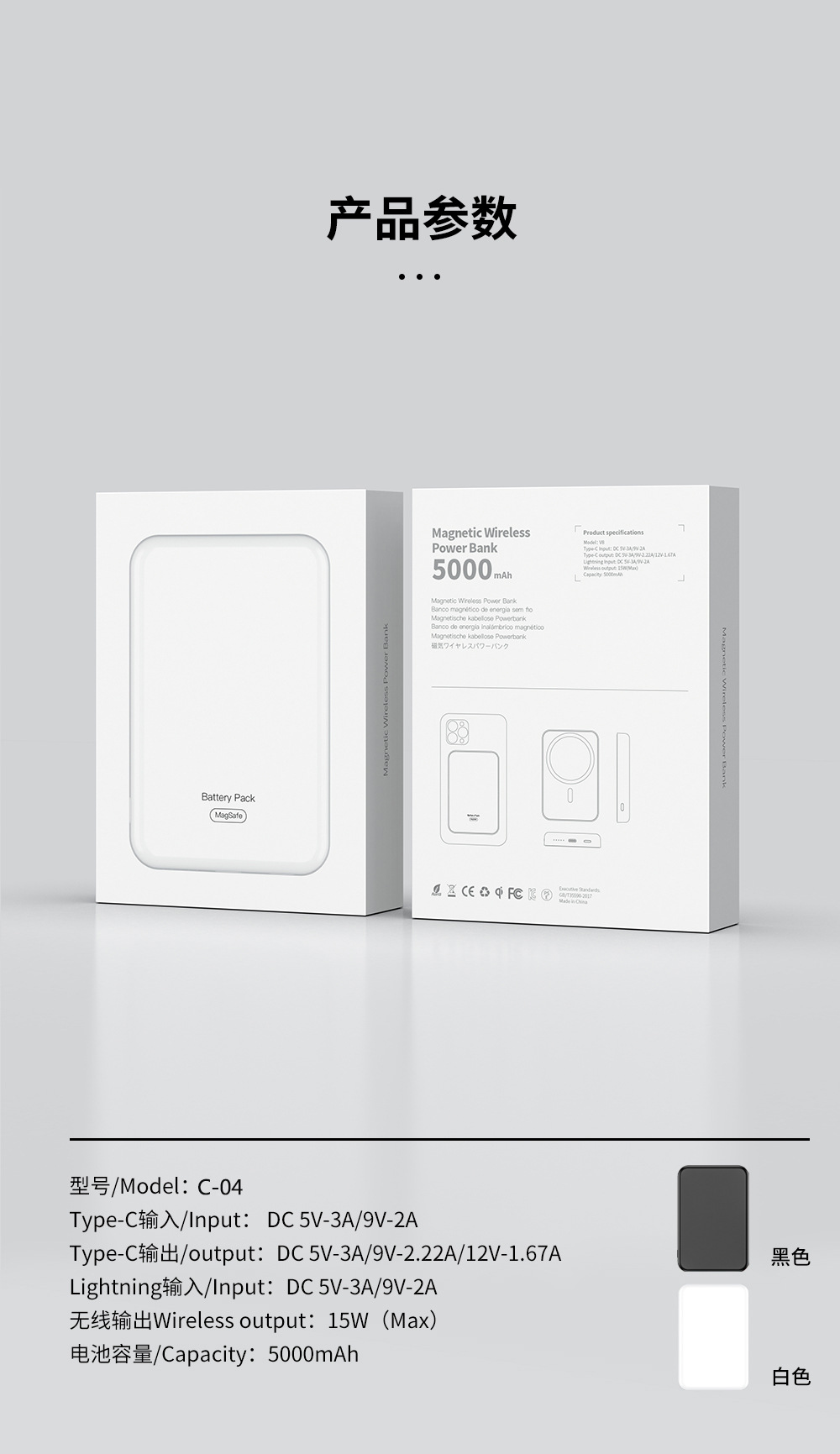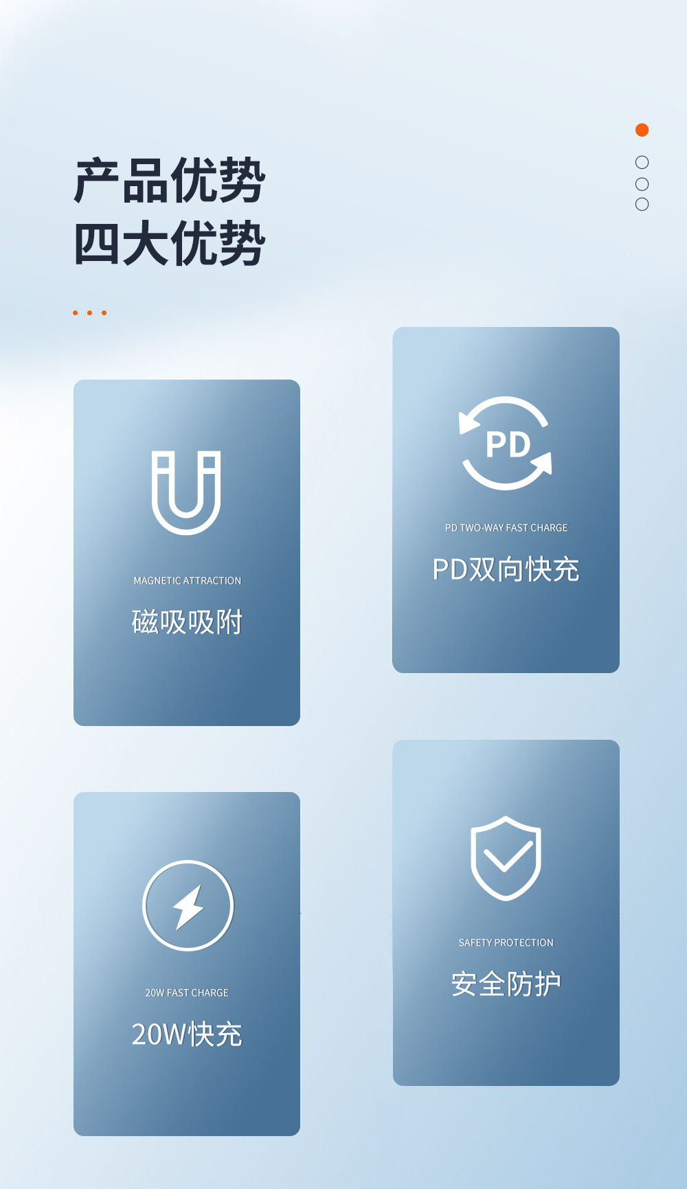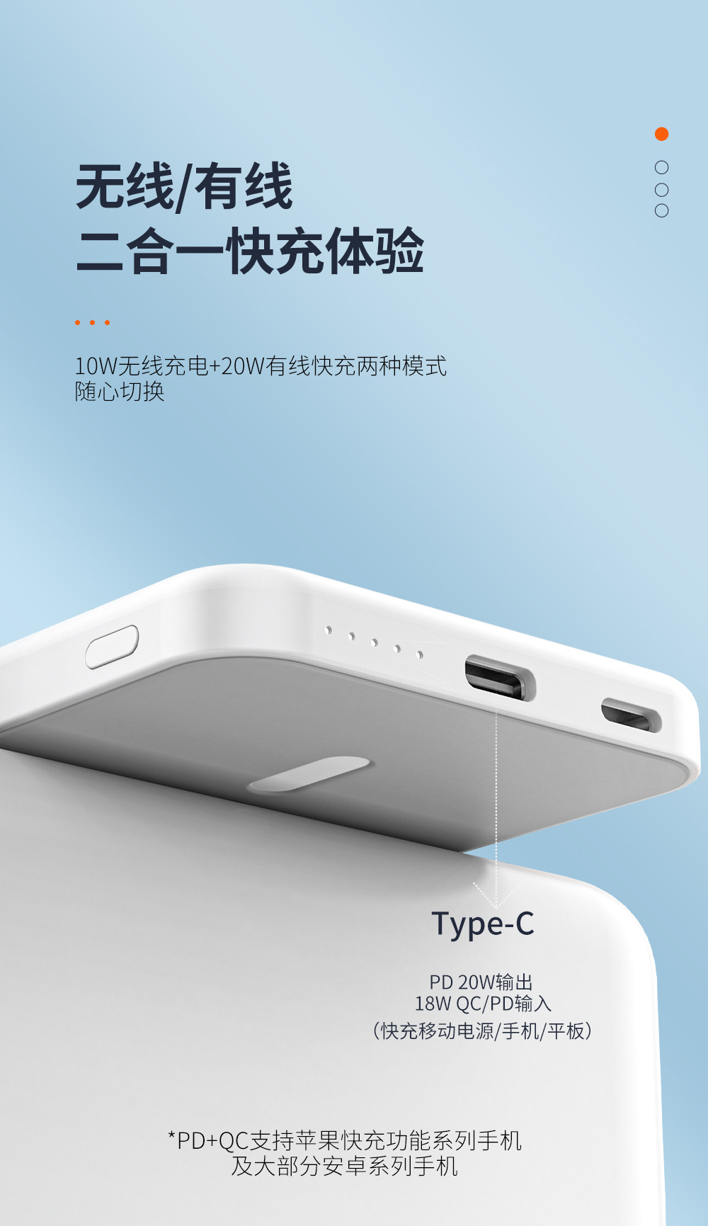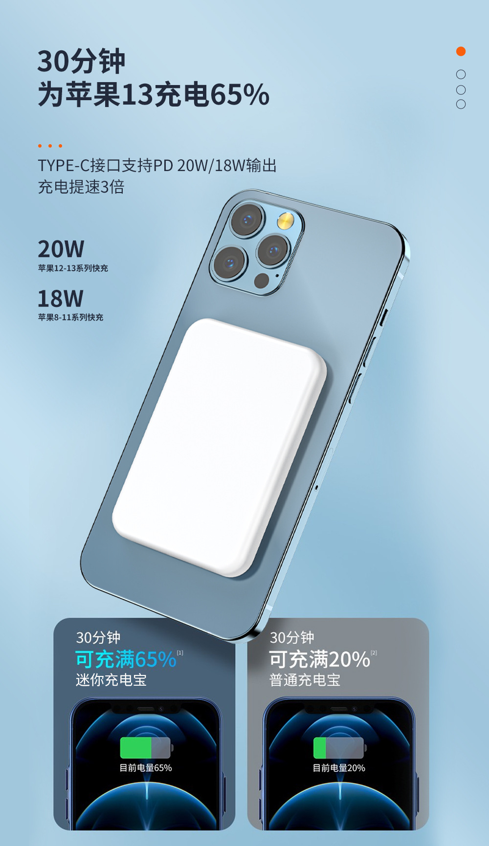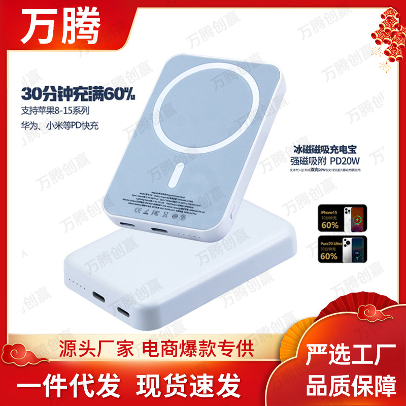 자기 흡입 무선 전원 은행 휴대용 모바일 전원 공급 장치에 적합 15W 무선 충전 PD20W 고속 충전 실리콘