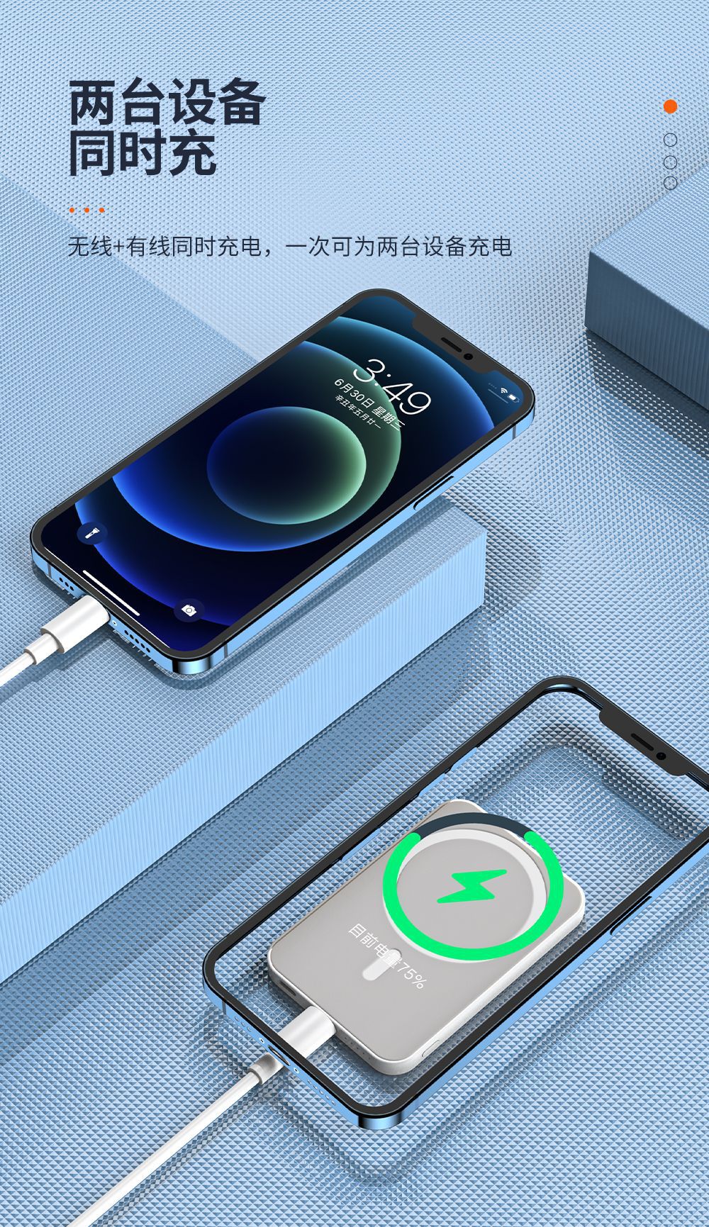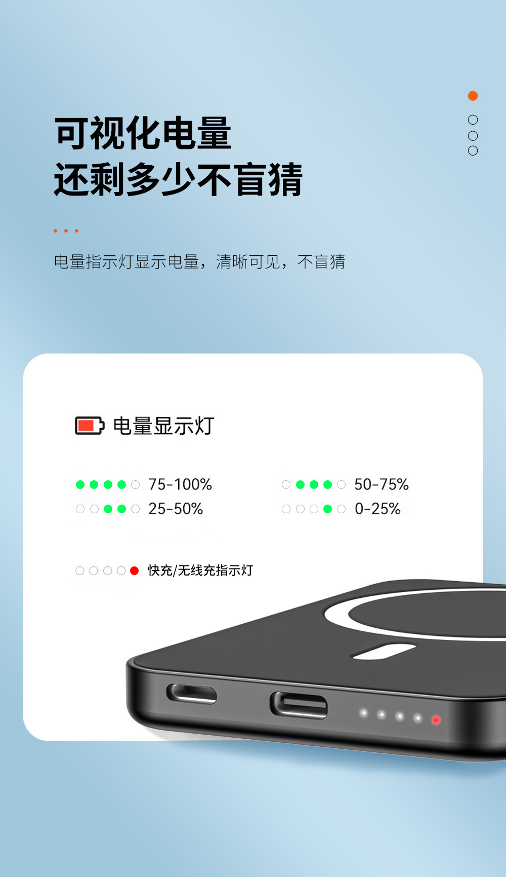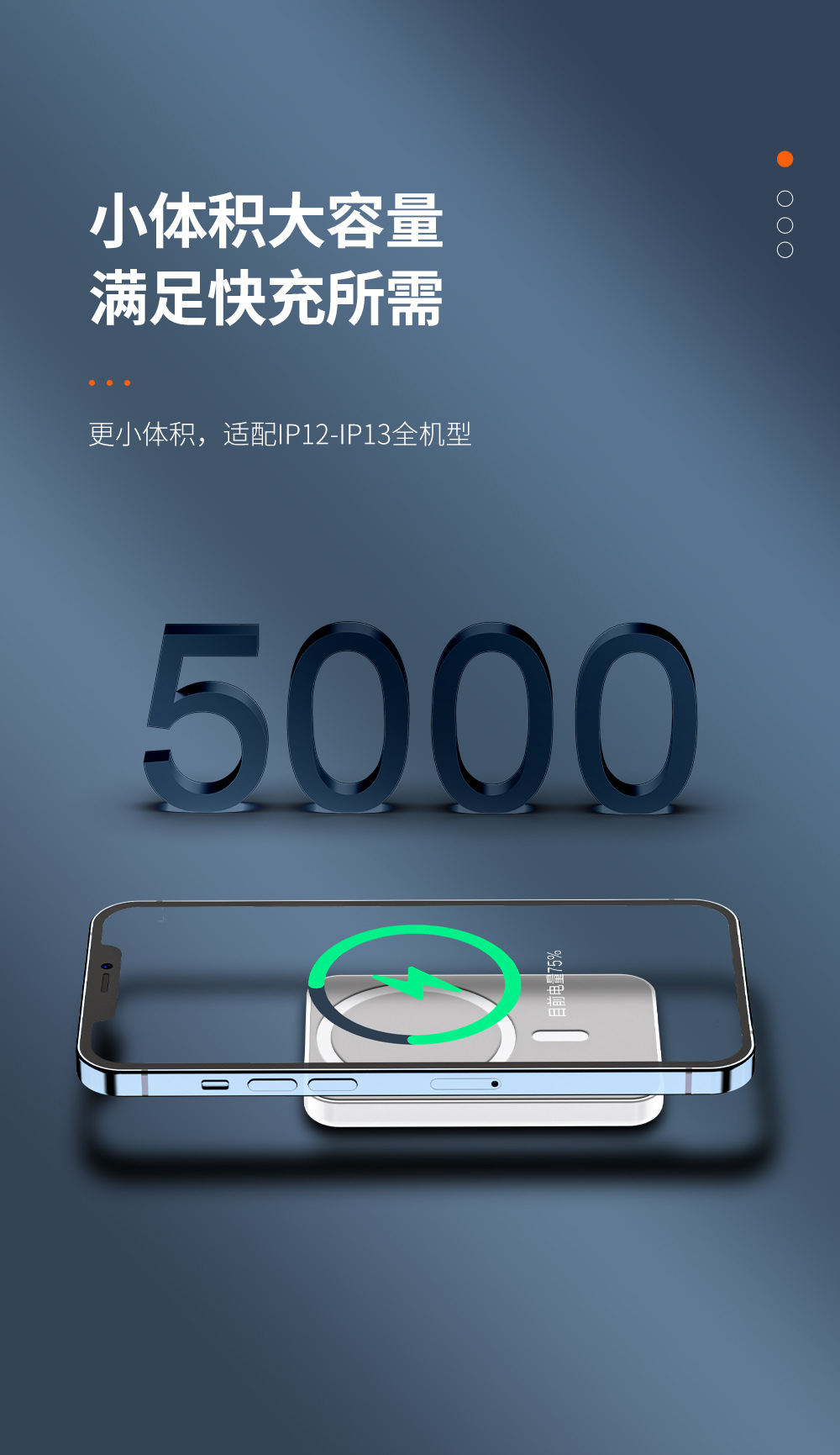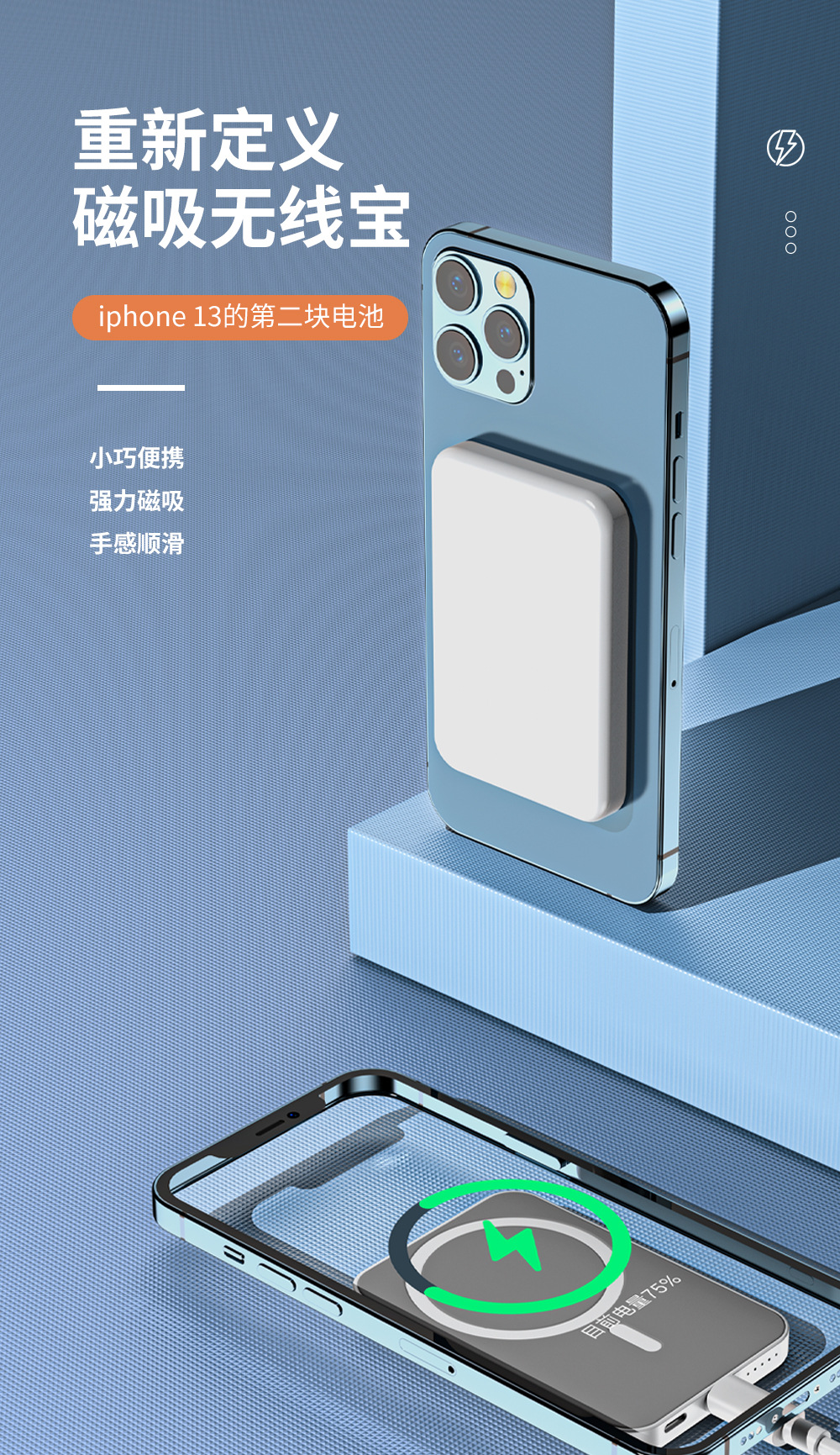 자기 흡입 무선 전원 은행 휴대용 모바일 전원 공급 장치에 적합 15W 무선 충전 PD20W 고속 충전 실리콘스토어 가기