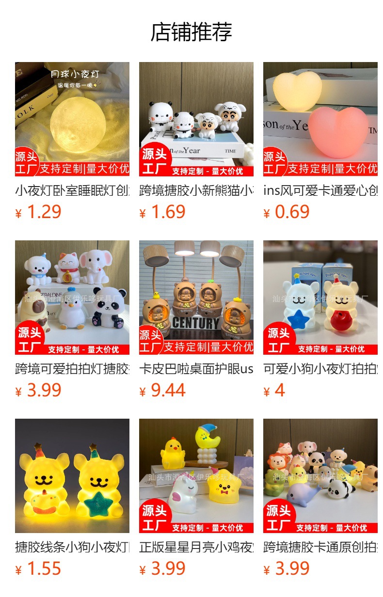 발광 카툰 동물 침대 장식용 야간등 귀여운 팬더 야시장 선물 도매스토어 가기