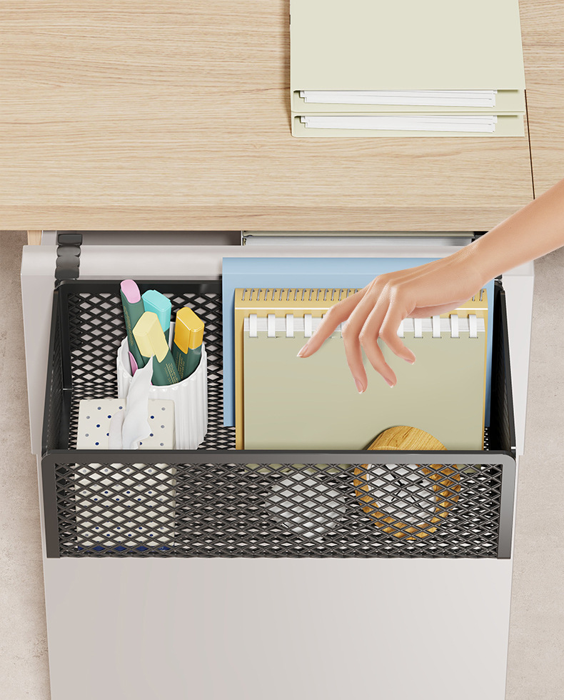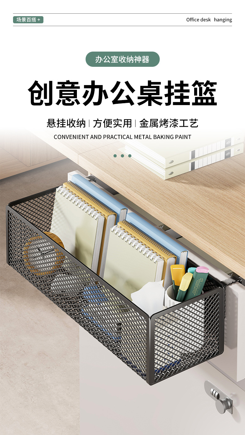 사무실 교수형 랙 가정용 책상 사이드 스토리지 교수형 바구니 설치-무료 스토리지 랙 위치 주최자스토어 가기