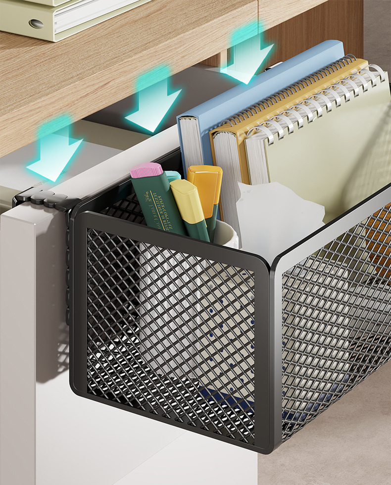 사무실 교수형 랙 가정용 책상 사이드 스토리지 교수형 바구니 설치-무료 스토리지 랙 위치 주최자