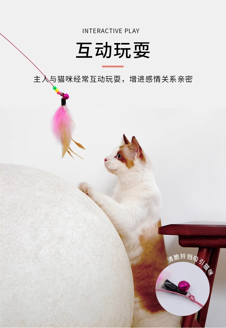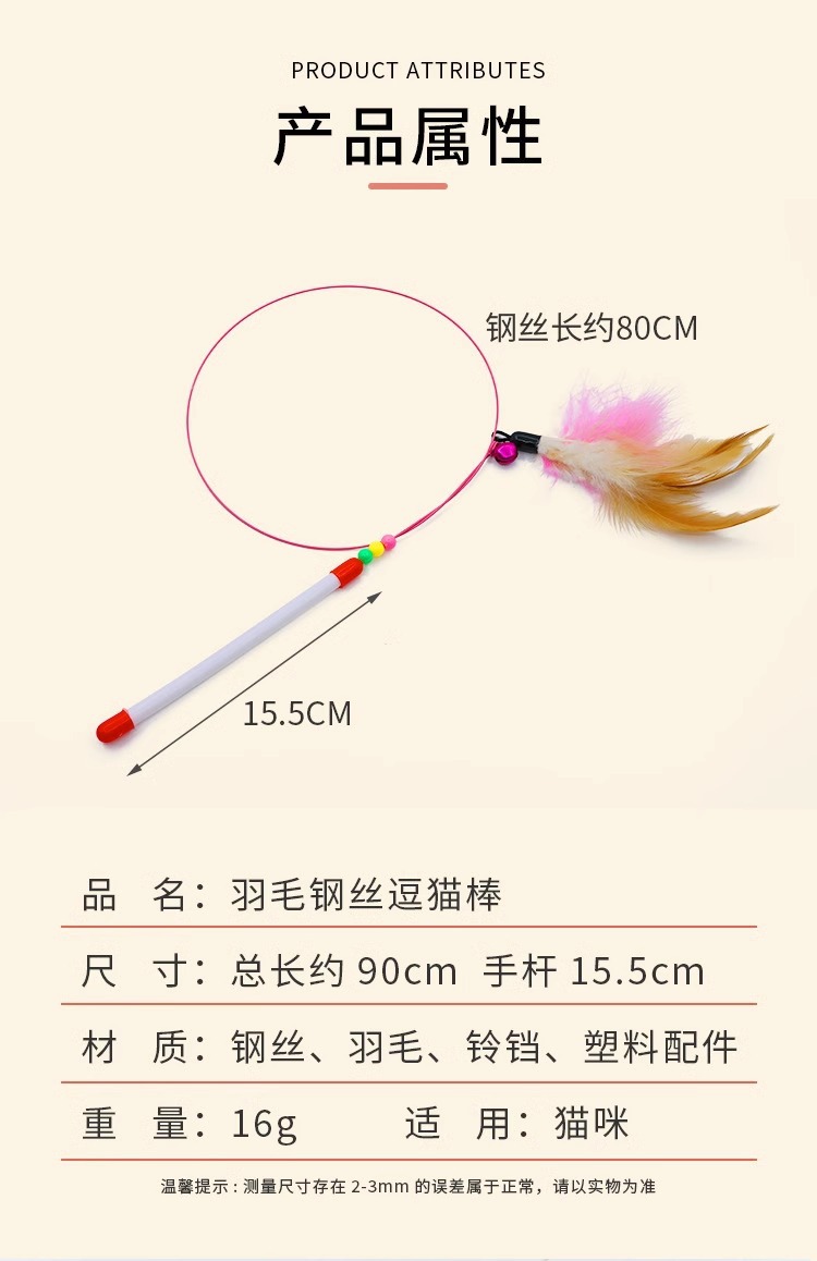 공장 도매 고양이 스틱 스틸 벨 깃털 교체 헤드 장난감 용품 이후 애완 동물 고양이의 배치