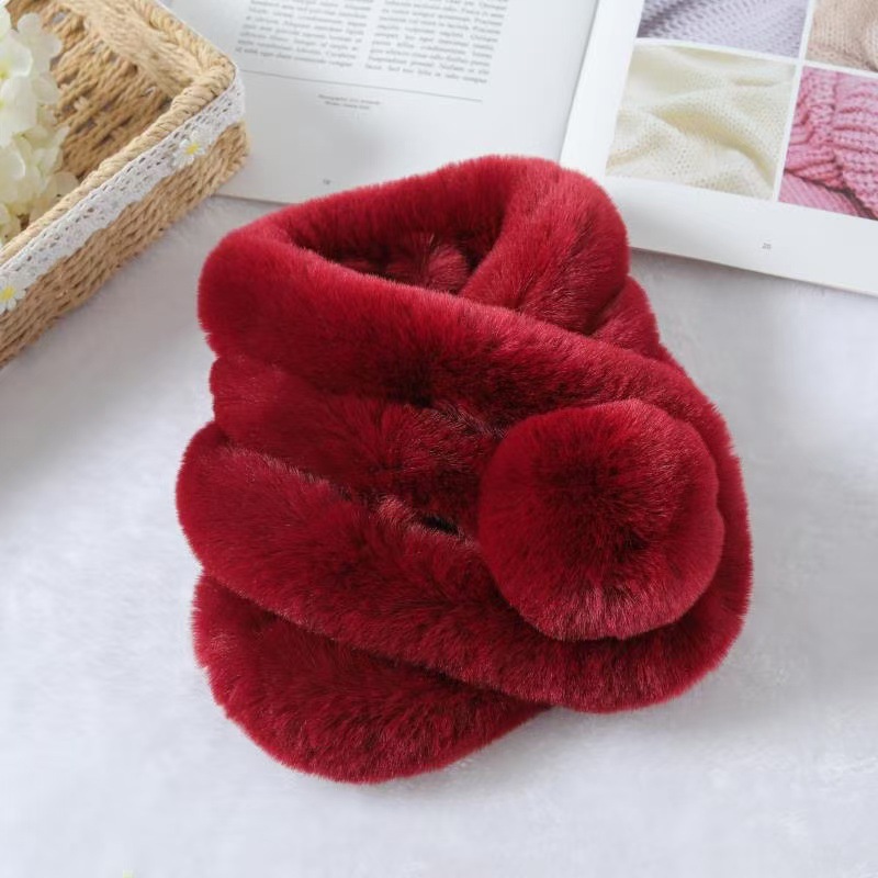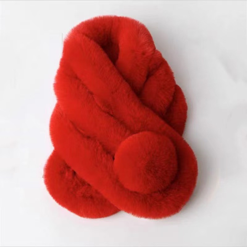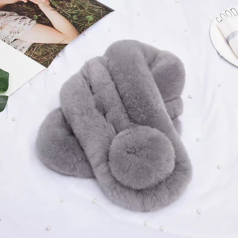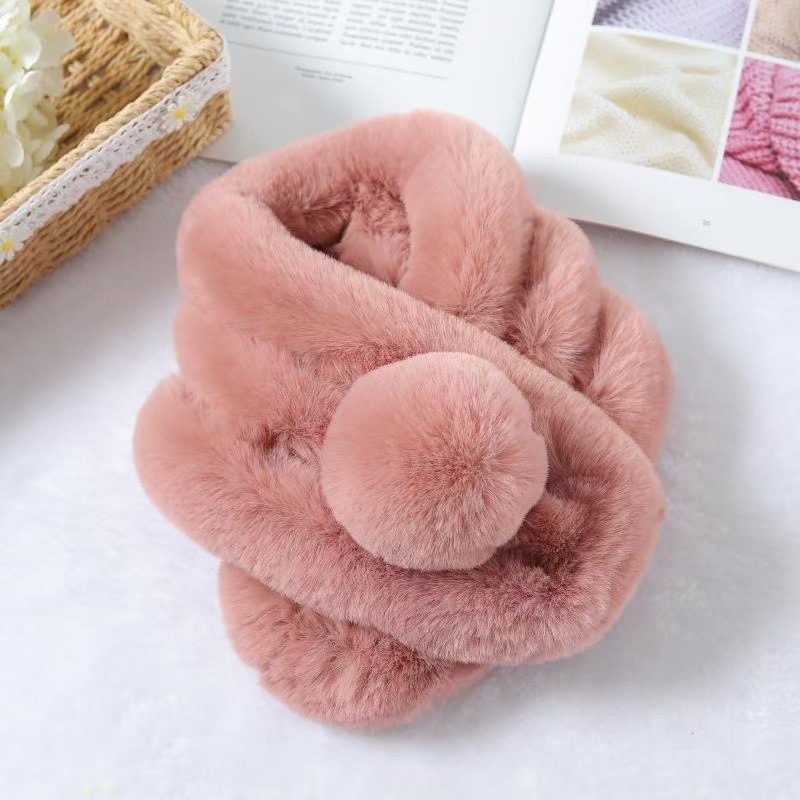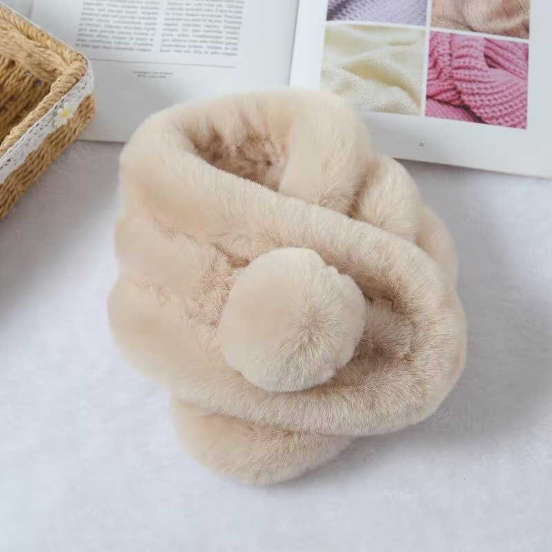 仿濑兔毛双球围巾