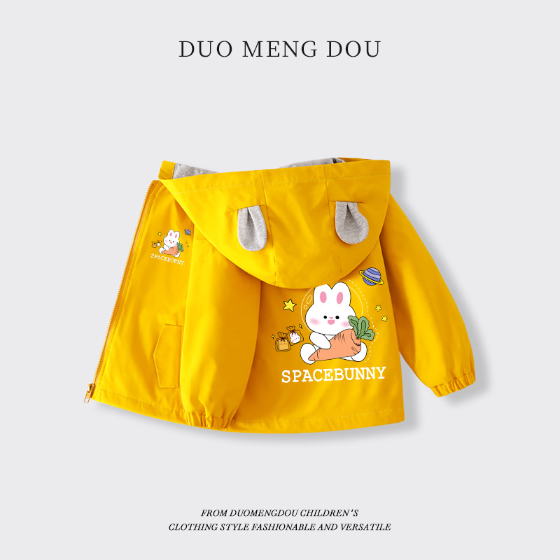 소녀의 봄과 가을 아동복 코트 얇은 중소 어린이 아기 토끼 귀 가을 옷 어린이 후드 지퍼 탑스토어 가기