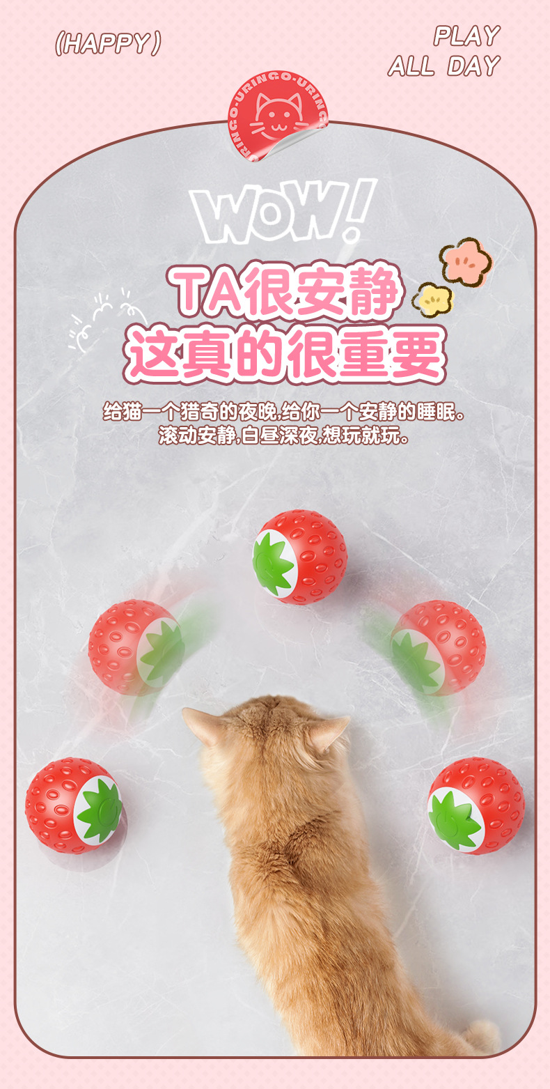 고양이 장난감 셀프 하이, 지루함 딸기 롤링 볼 전기 고양이 장난감 물린 저항 점프 볼 고양이 장난감스토어 가기