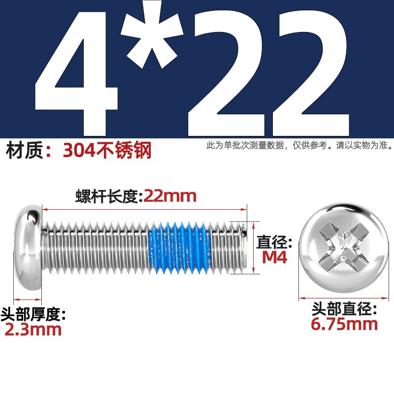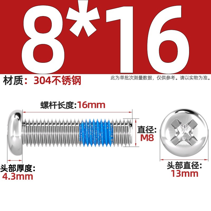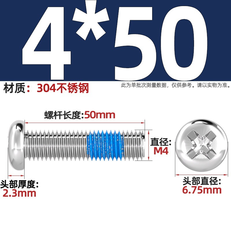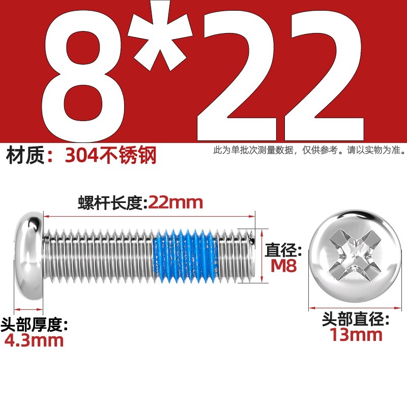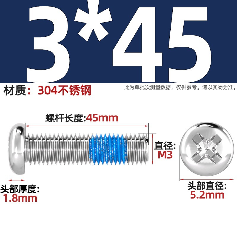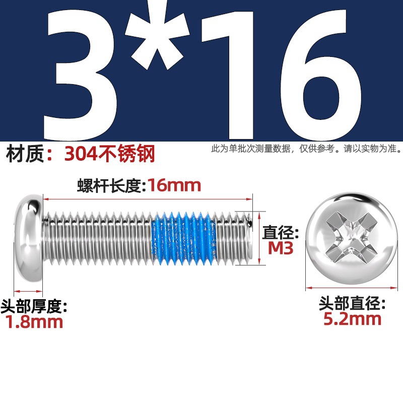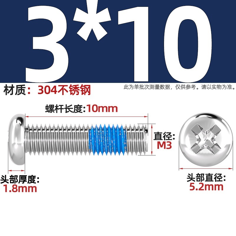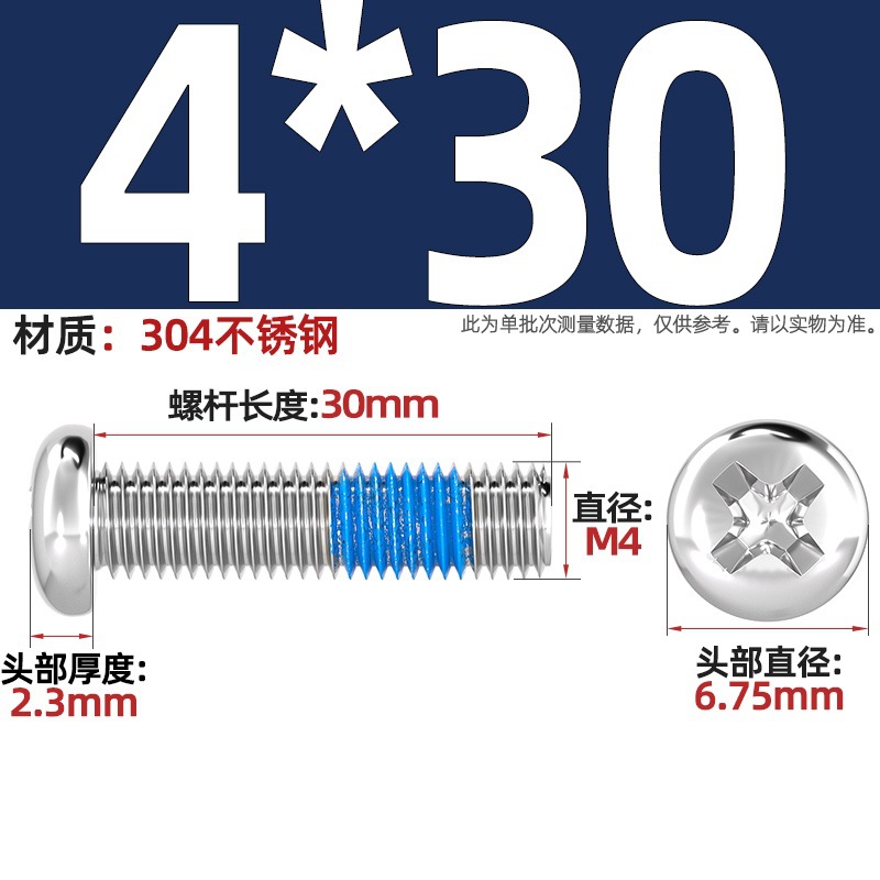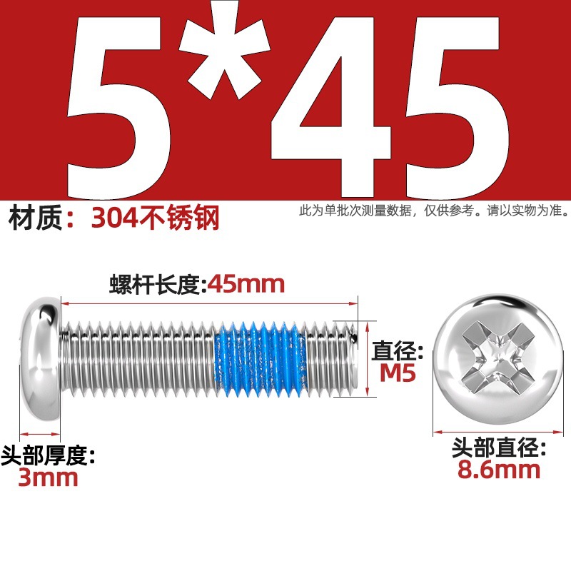 304 스테인레스 스틸 라운드 헤드 크로스 분배 방지 및 낙하 방지 블루 고무 충격 방지 팬 헤드 스크류 M1-M10mm