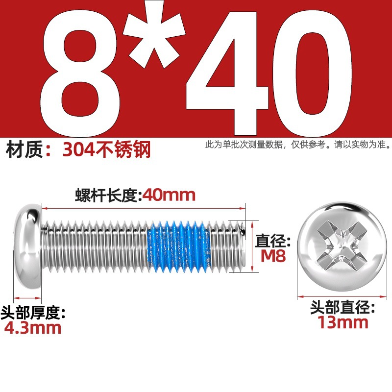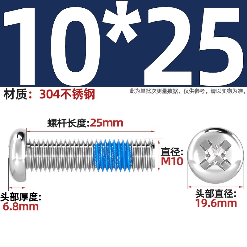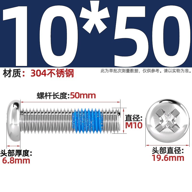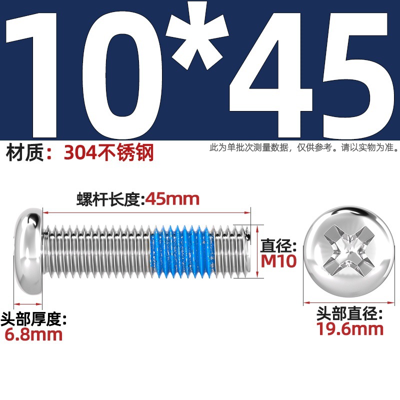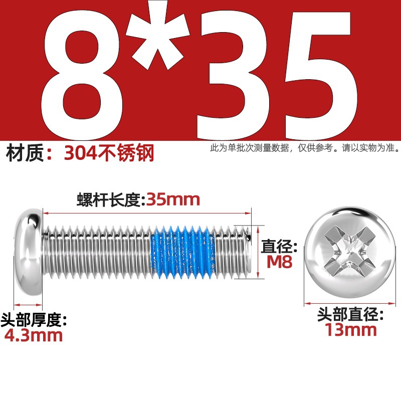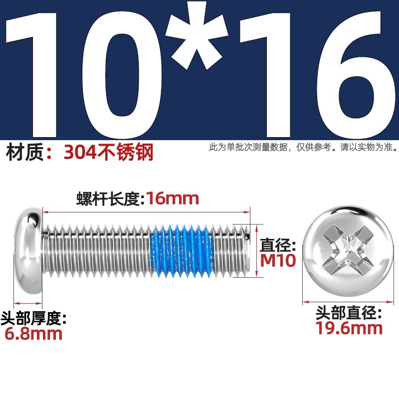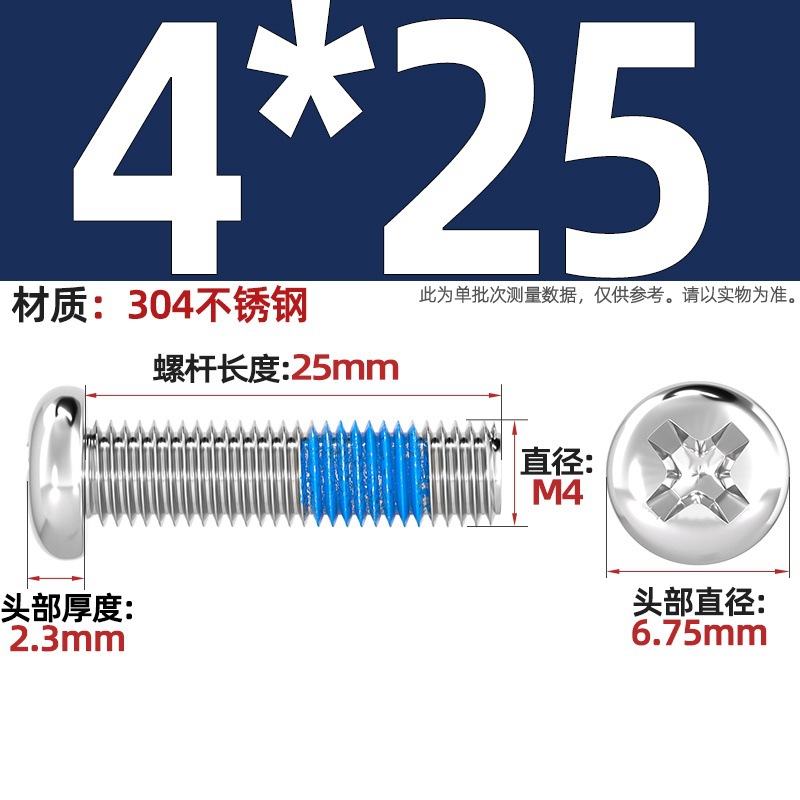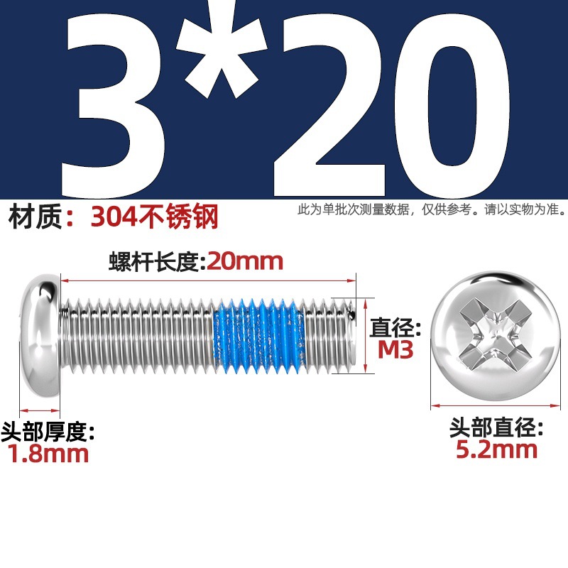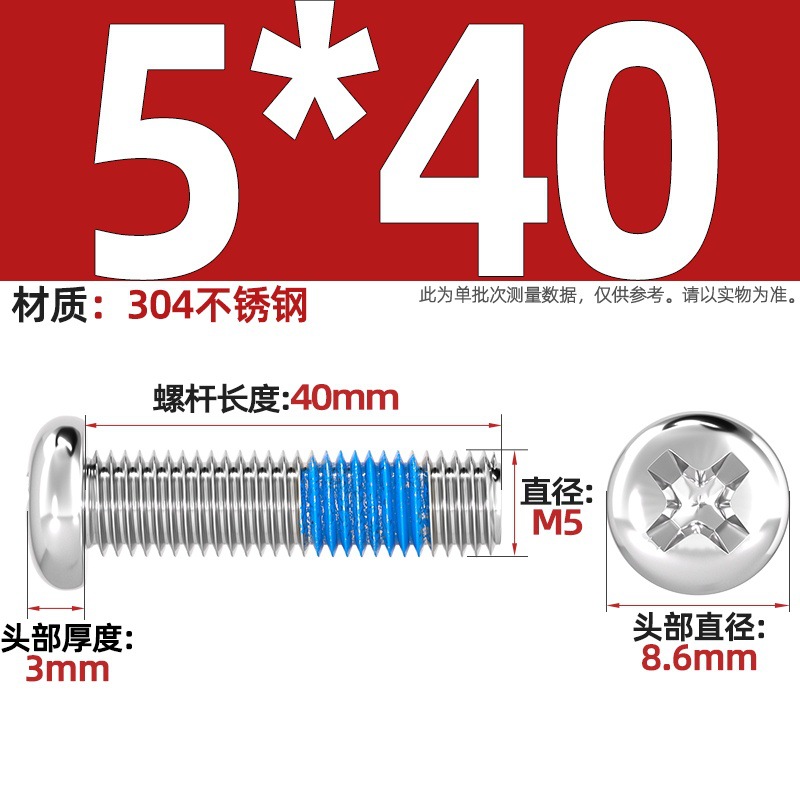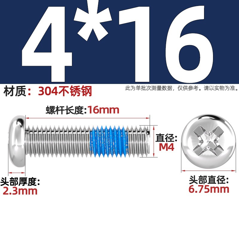 304 스테인레스 스틸 라운드 헤드 크로스 분배 방지 및 낙하 방지 블루 고무 충격 방지 팬 헤드 스크류 M1-M10mm