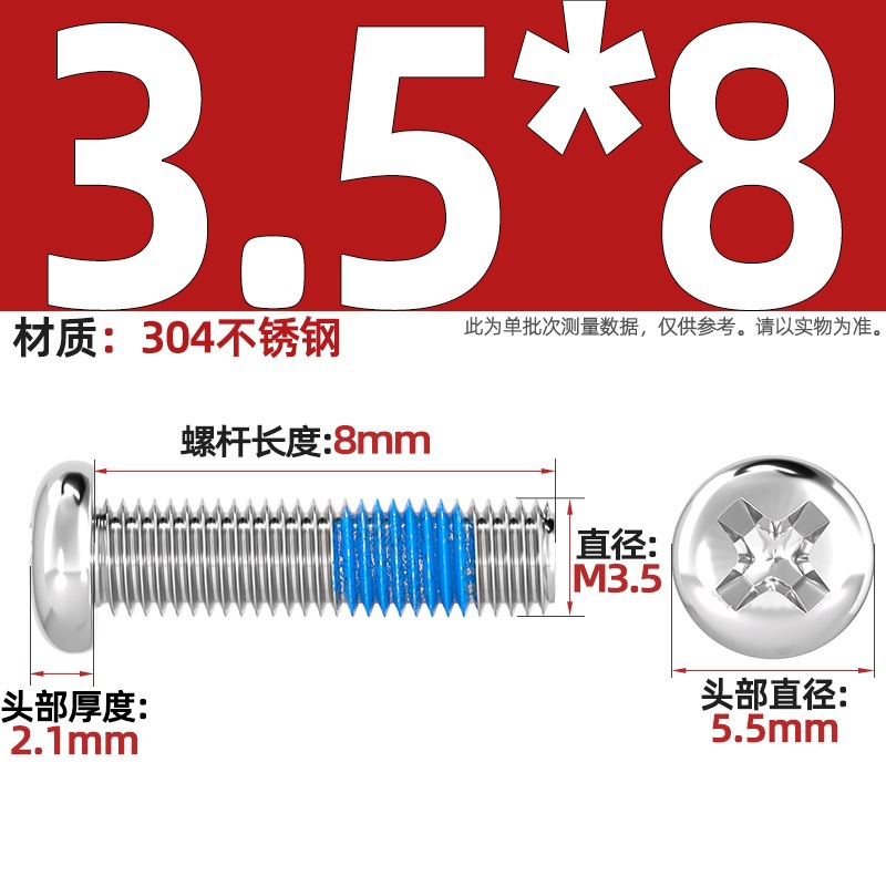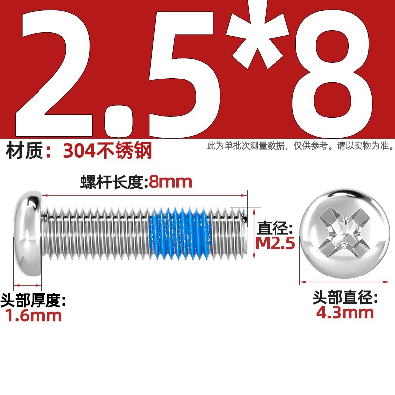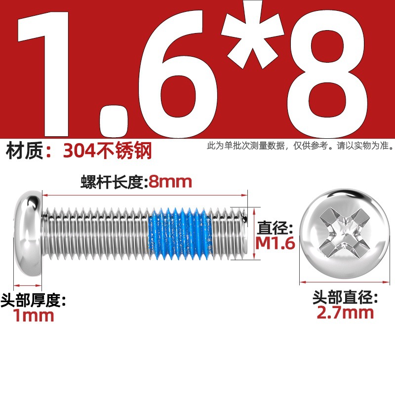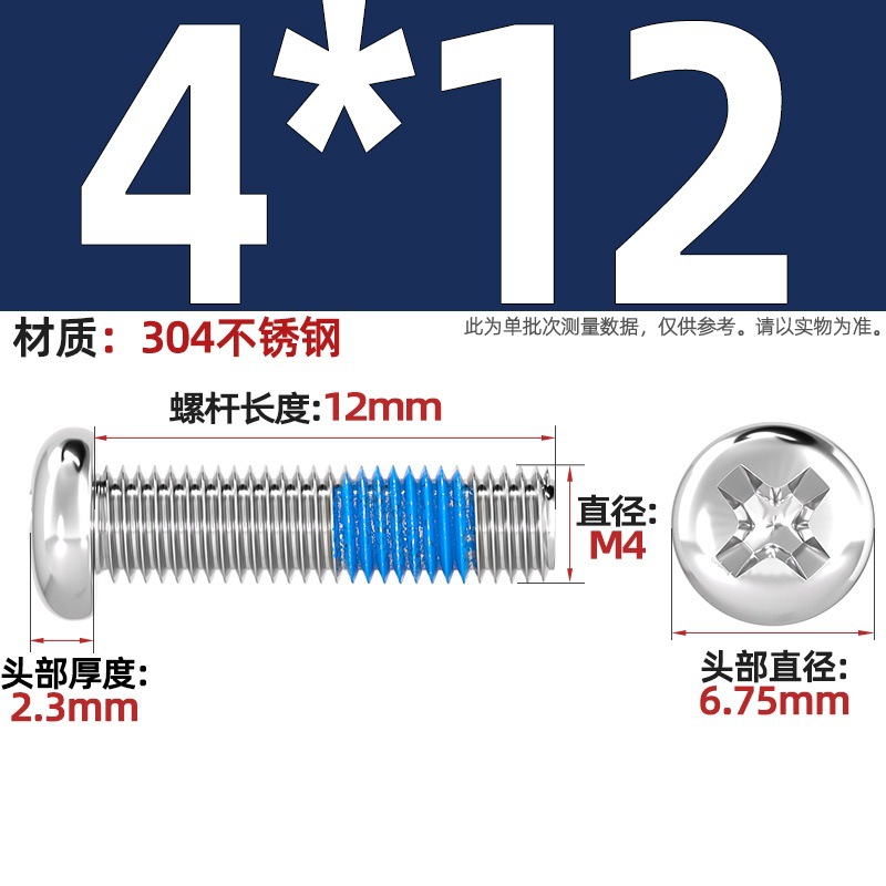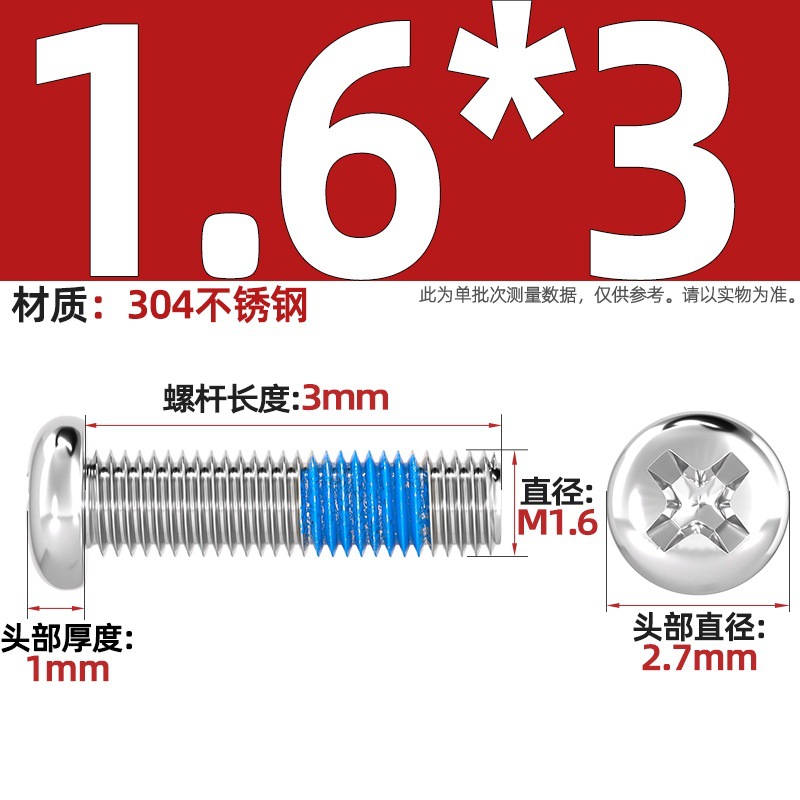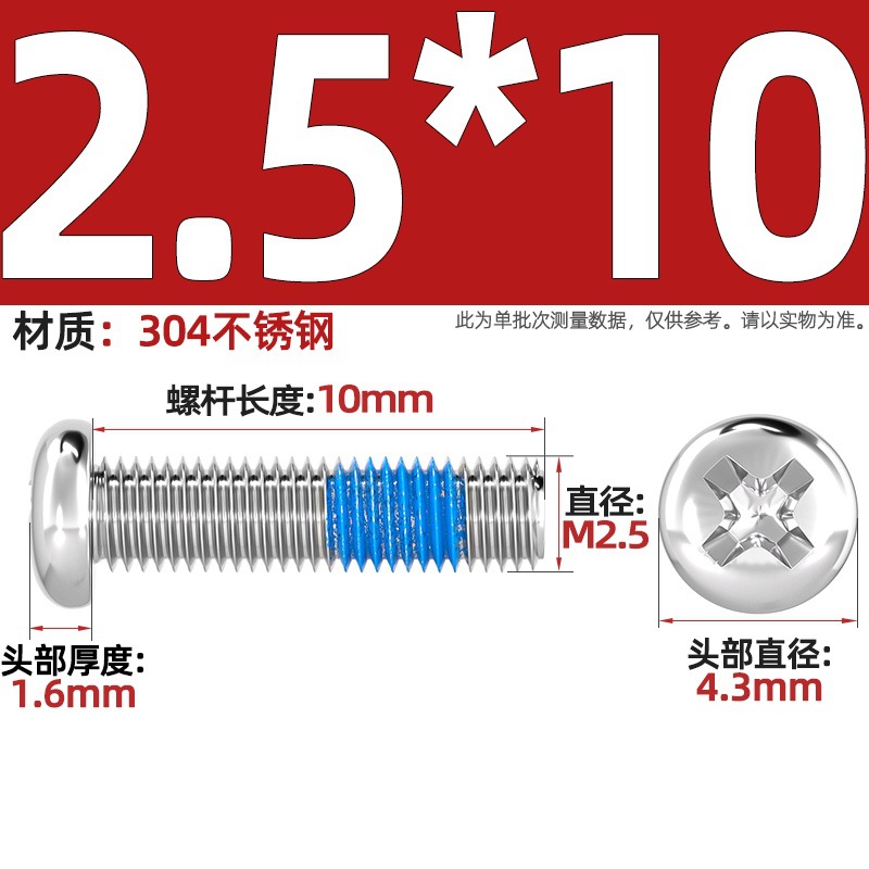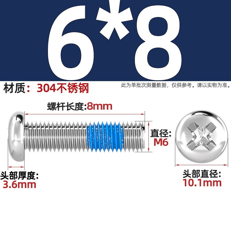 304 스테인레스 스틸 라운드 헤드 크로스 분배 방지 및 낙하 방지 블루 고무 충격 방지 팬 헤드 스크류 M1-M10mm스토어 가기