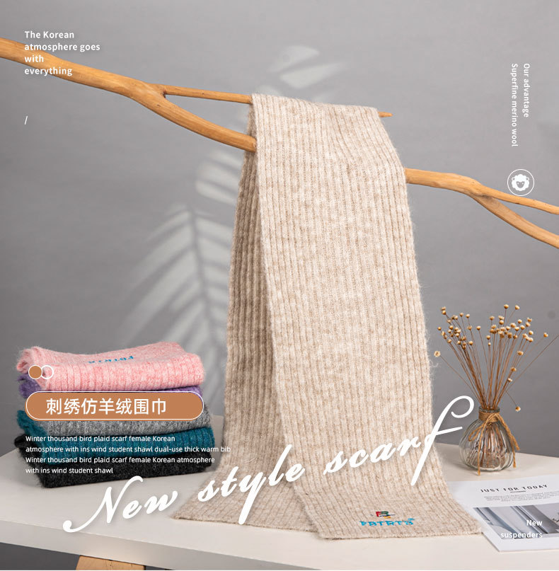 한국 동대문 같은 스타일 올 매치 니트 스카프 여성 가을 겨울 디자인 자수 작은 두꺼운 따뜻한 스카프스토어 가기