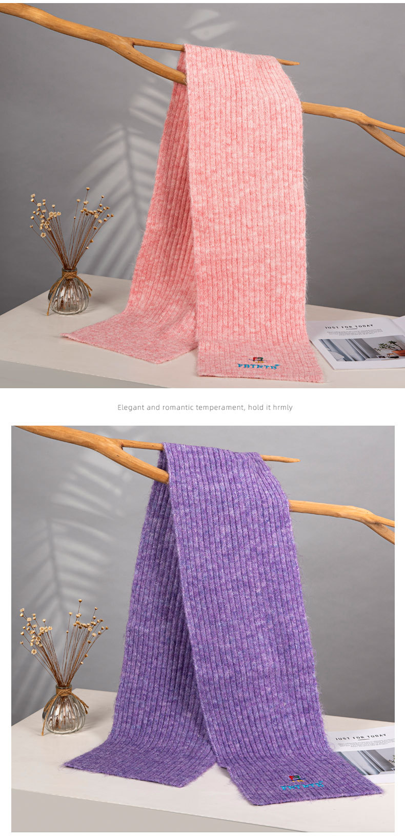한국 동대문 같은 스타일 올 매치 니트 스카프 여성 가을 겨울 디자인 자수 작은 두꺼운 따뜻한 스카프