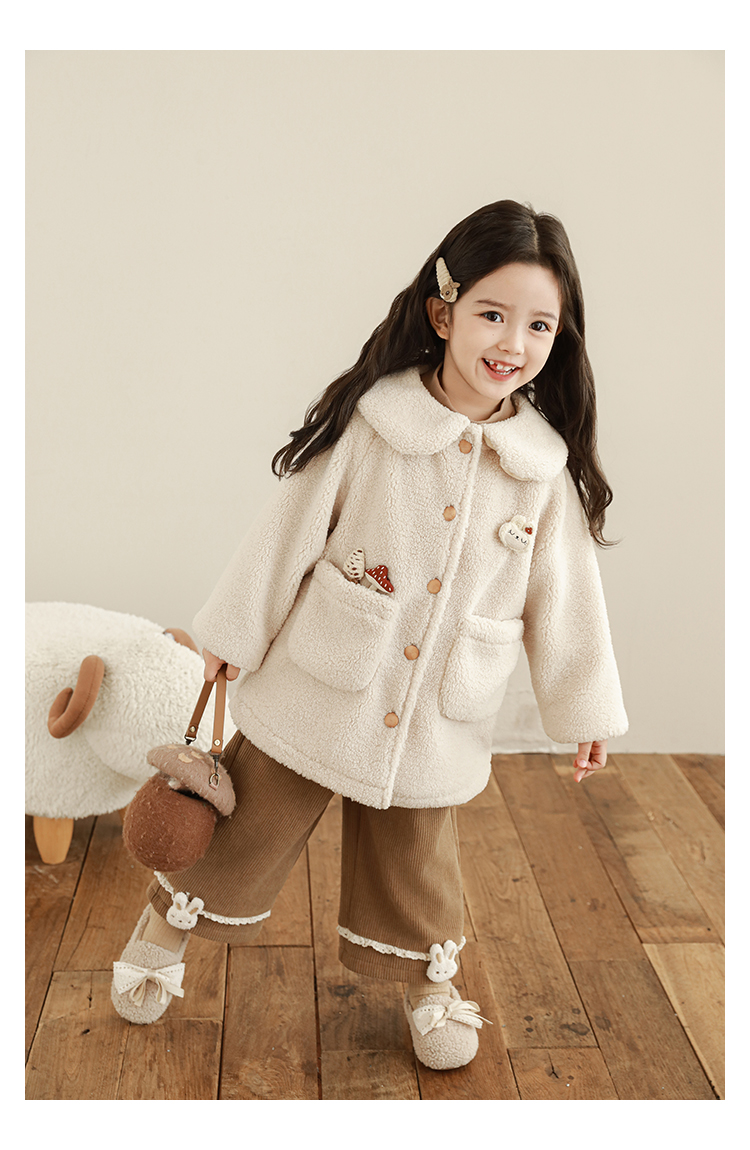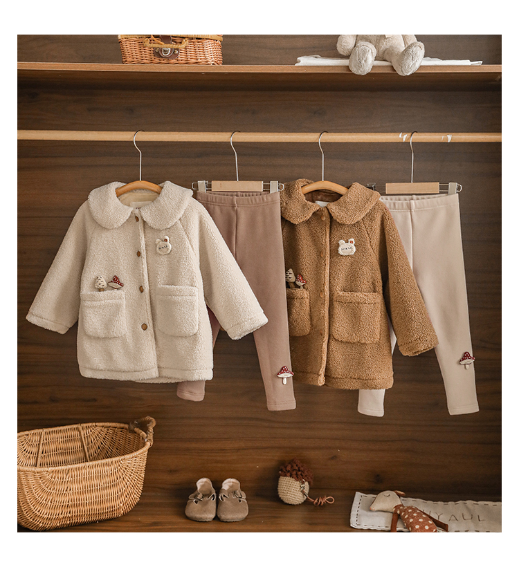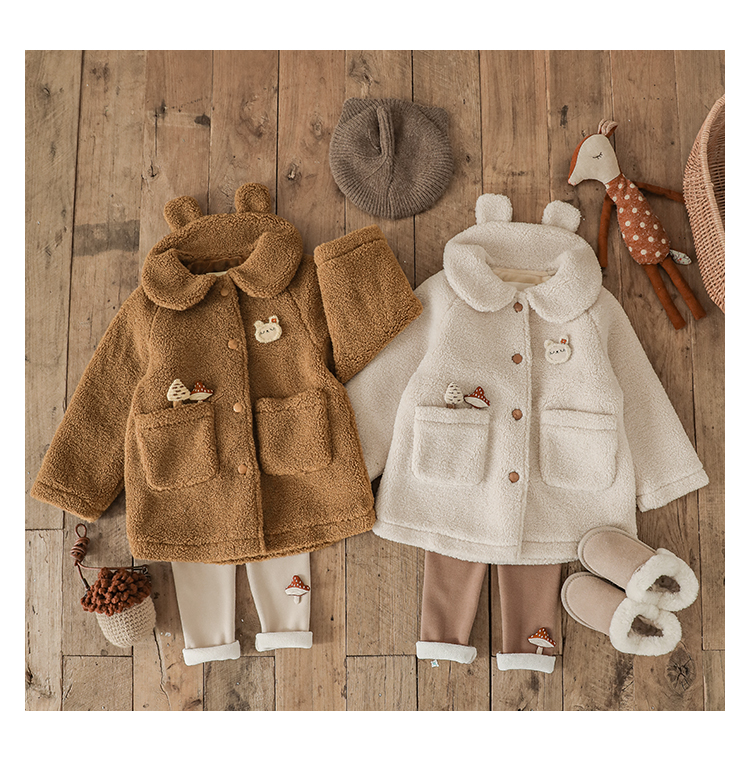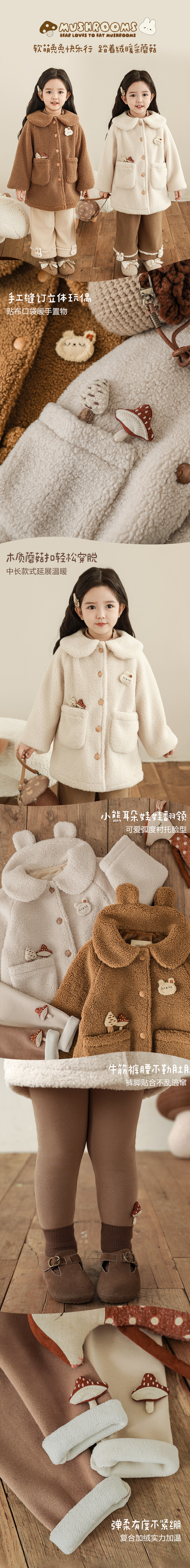 Wureb 소녀의 겨울 세트 손으로 꿰매는 3 차원 인형 플러시 코트 두꺼운 기모 따뜻한 버섯 레깅스