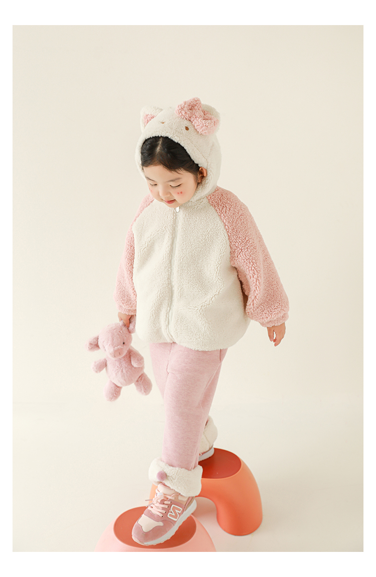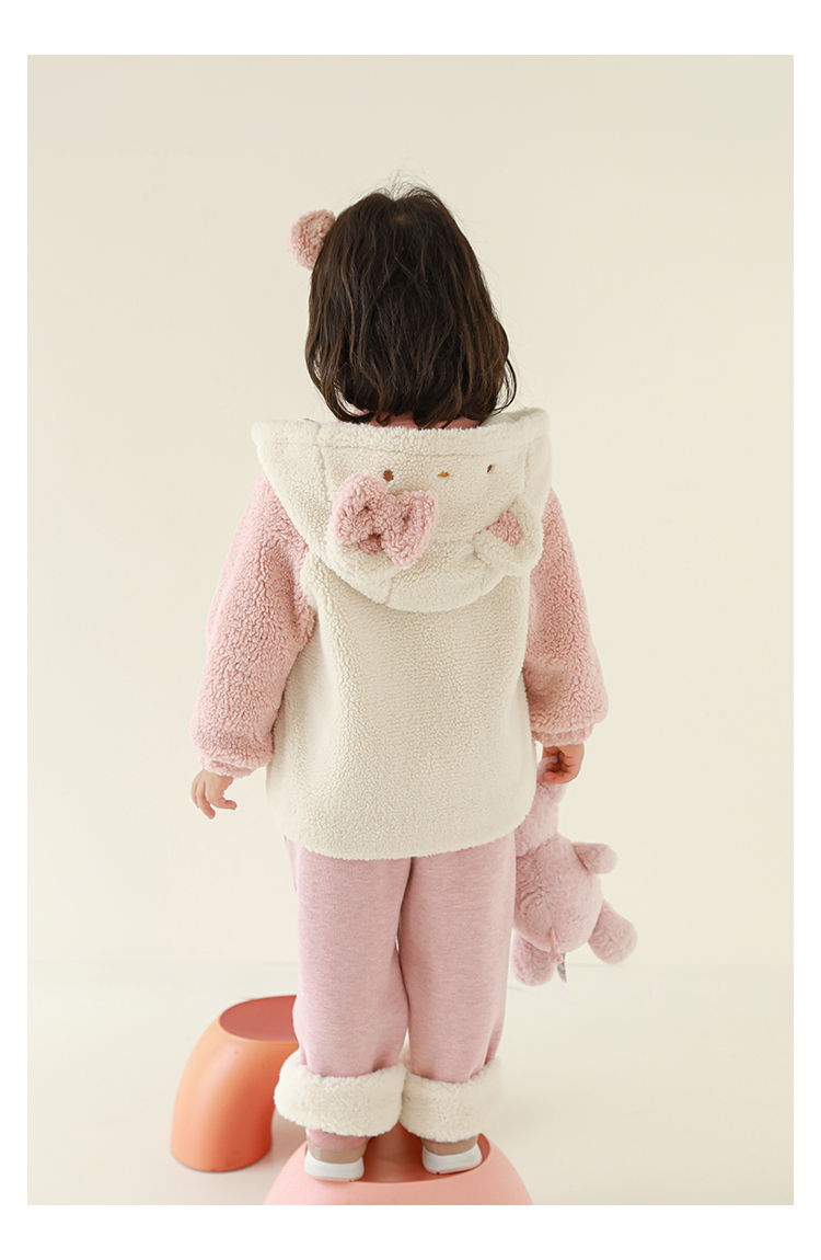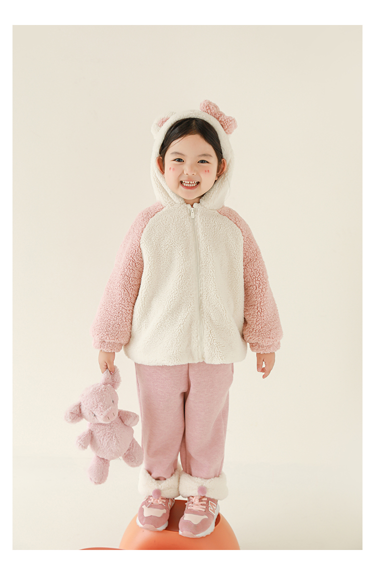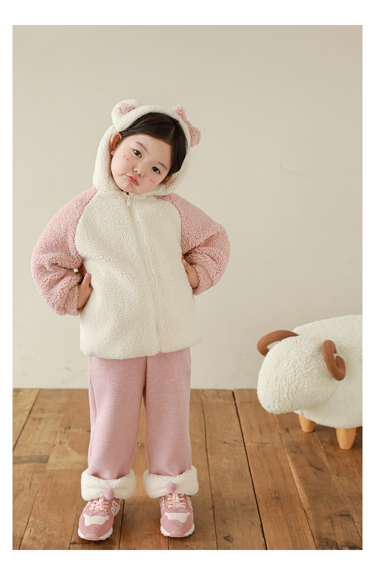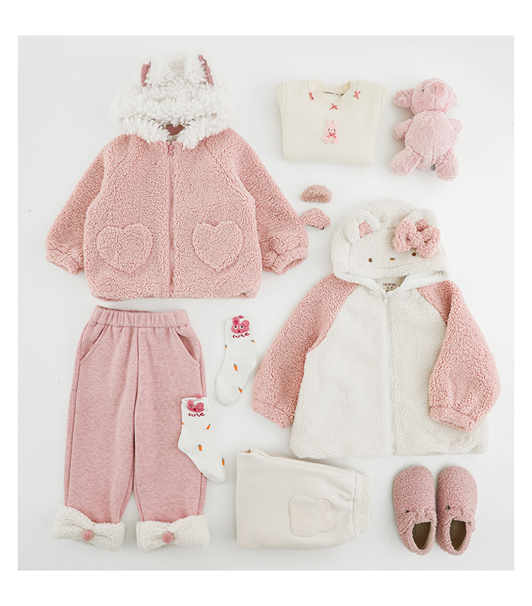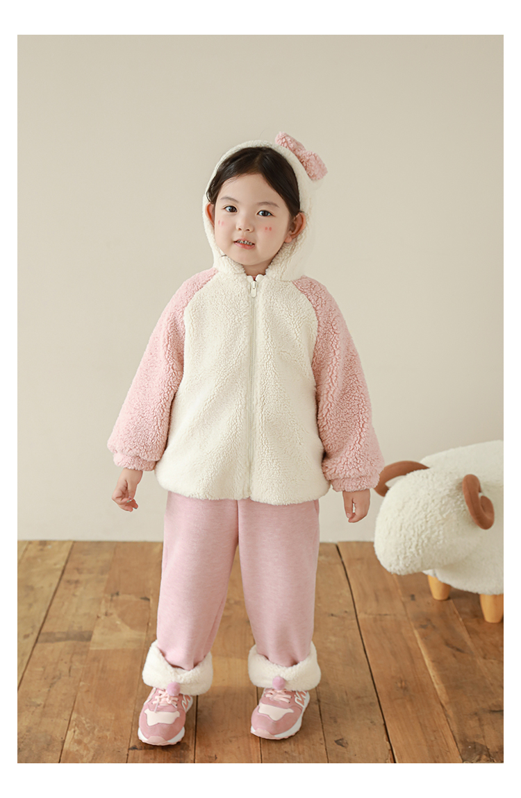 Wuri Boo Girl의 겨울 세트 기모 두꺼운 대비 어깨 봉제 자켓 따뜻한 루즈 스트레이트 트렌디 팬츠스토어 가기