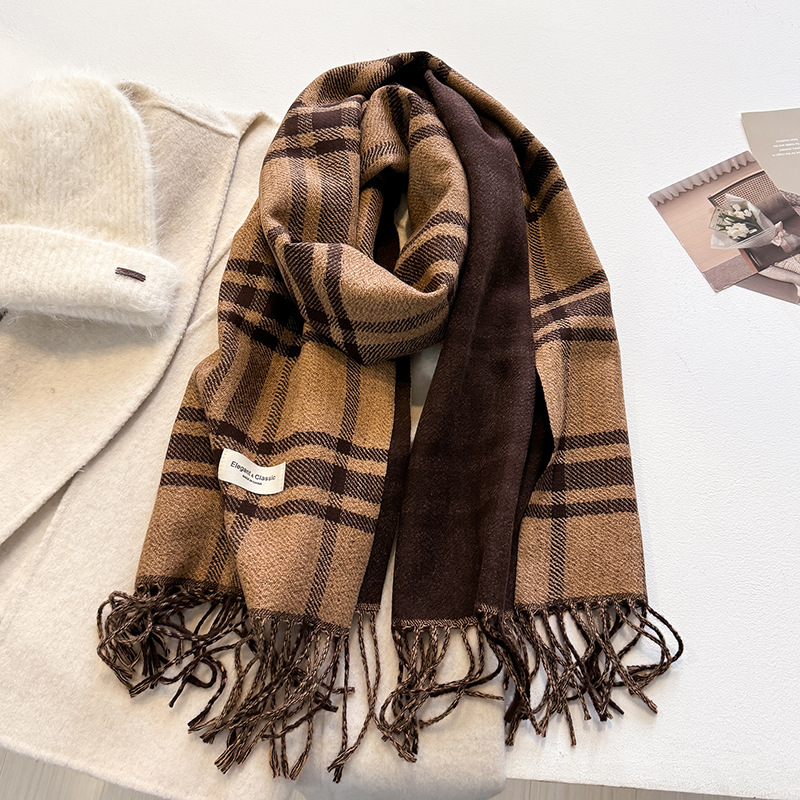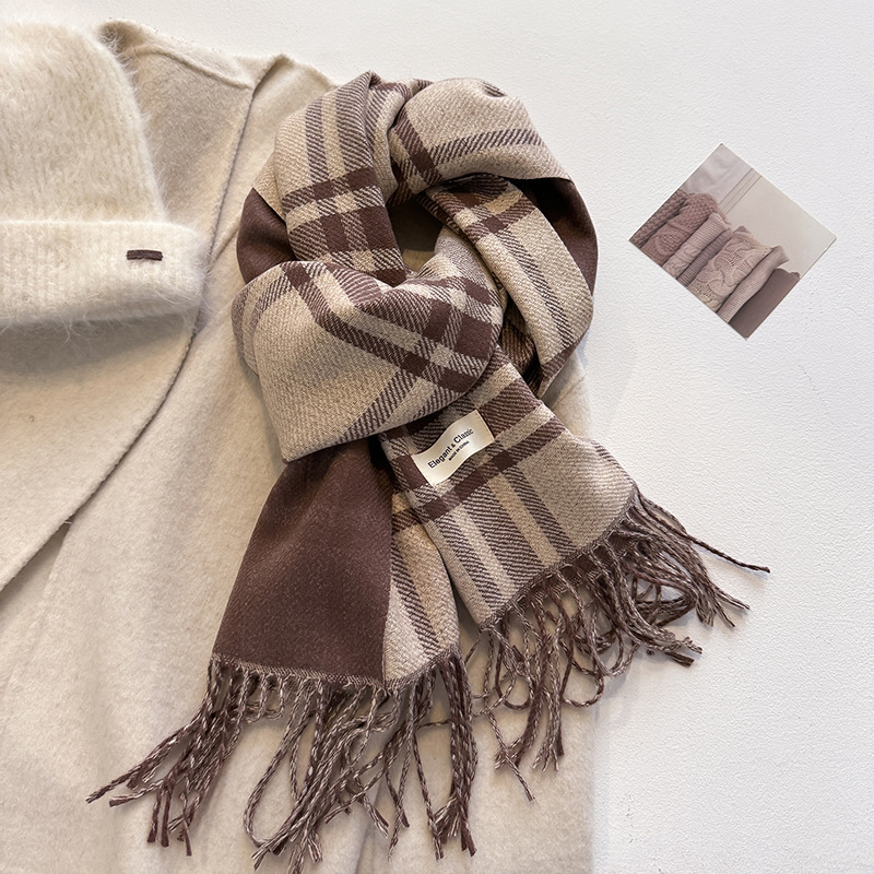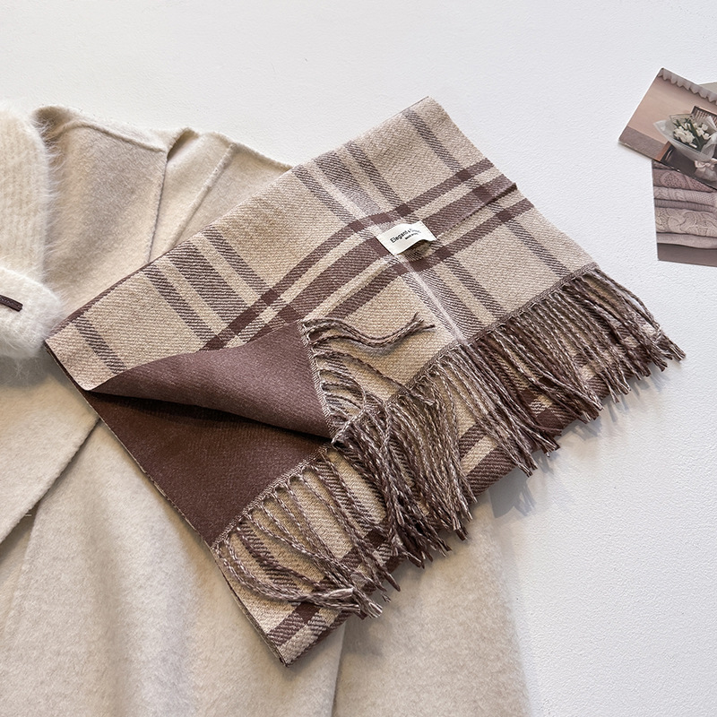 한국식 격자 무늬 스카프 여성의 가을 · 겨울 고급 감각 목도리 따뜻한 외부 술 모방 캐시미어 커플 스카프