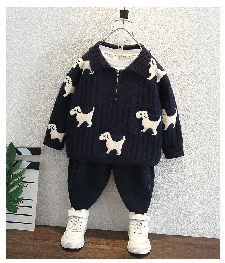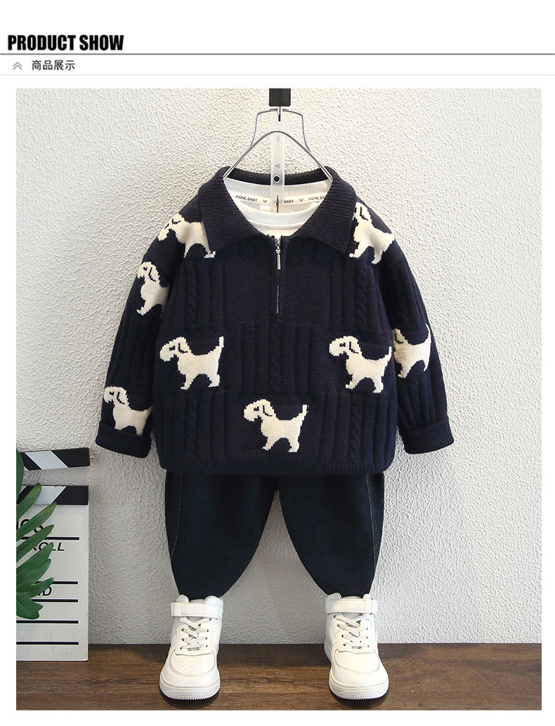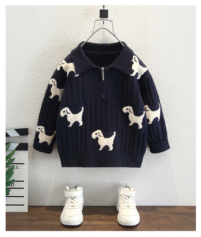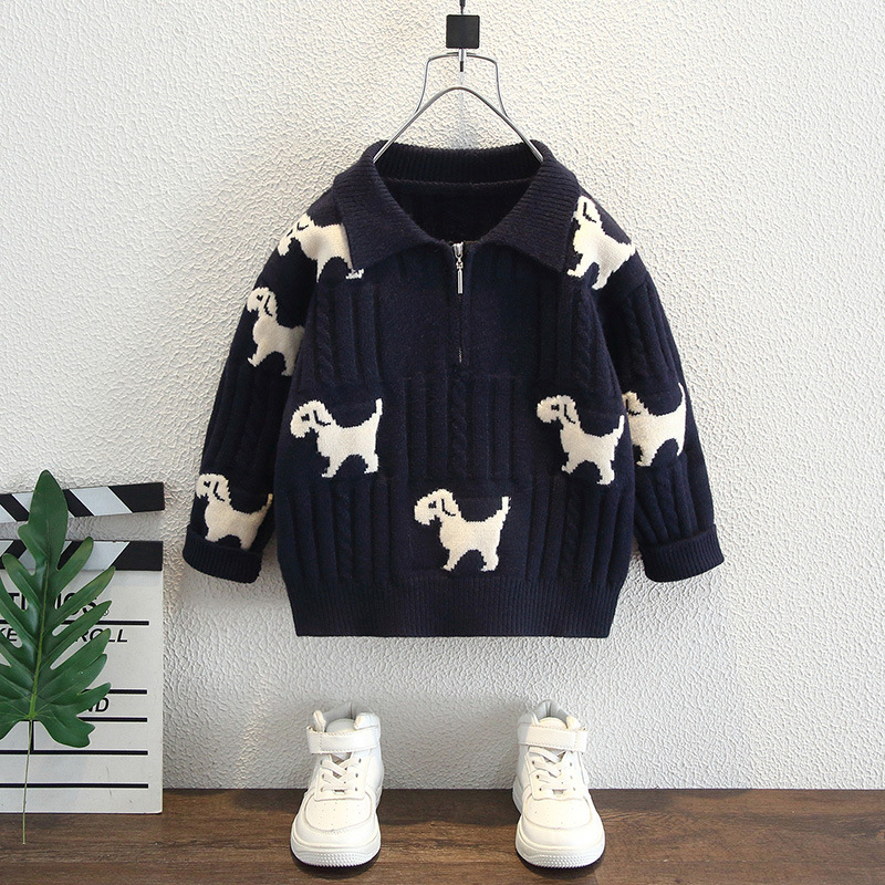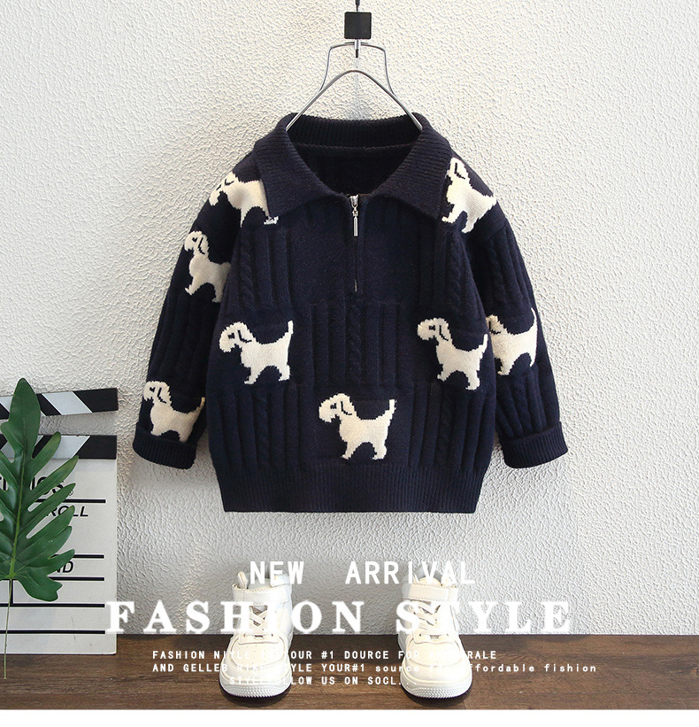 남자들의 옷깃 스웨터 가을과 겨울 2024 새로운 어린이 겨울 서양식 두꺼운 남자의 보물 어린이 풀오버 스웨터스토어 가기