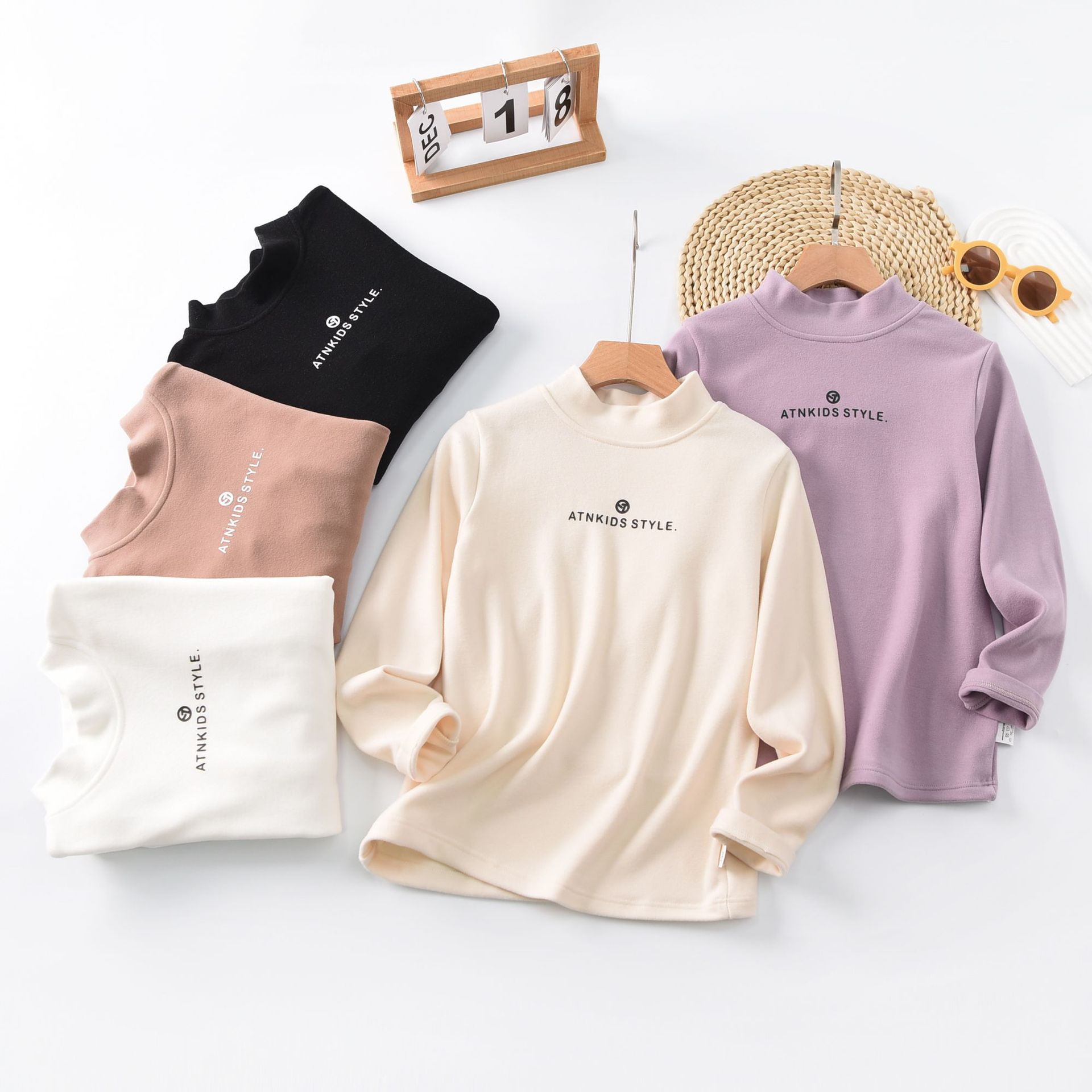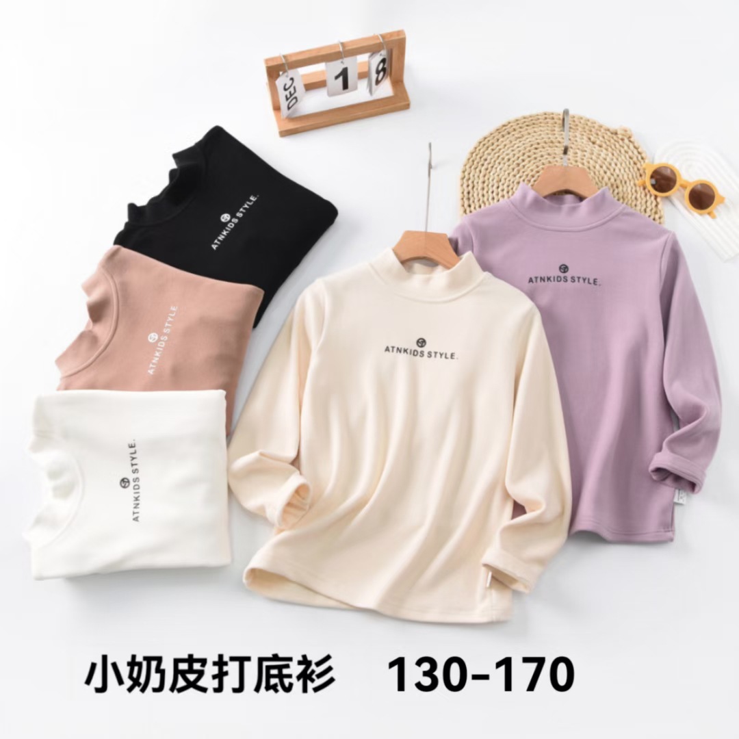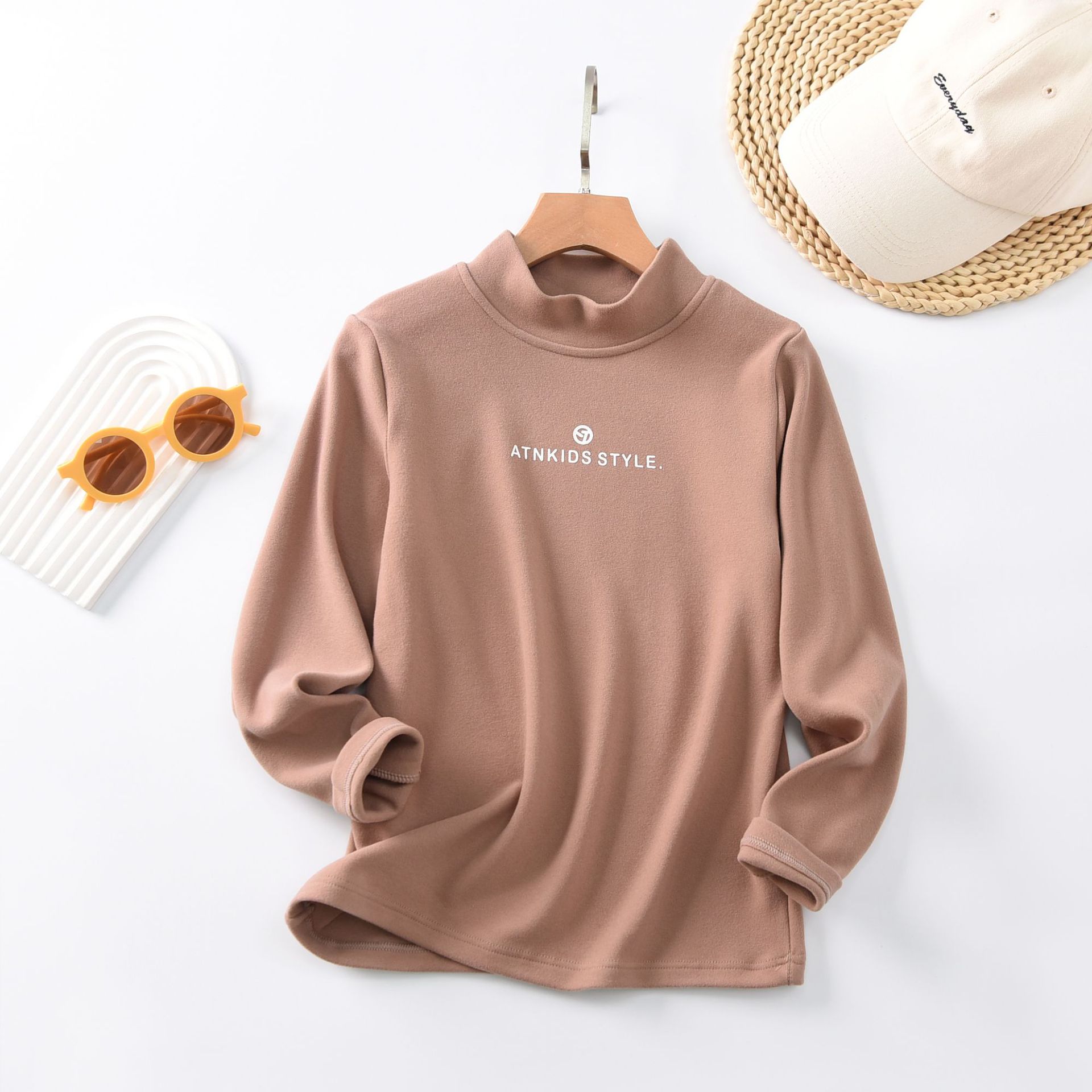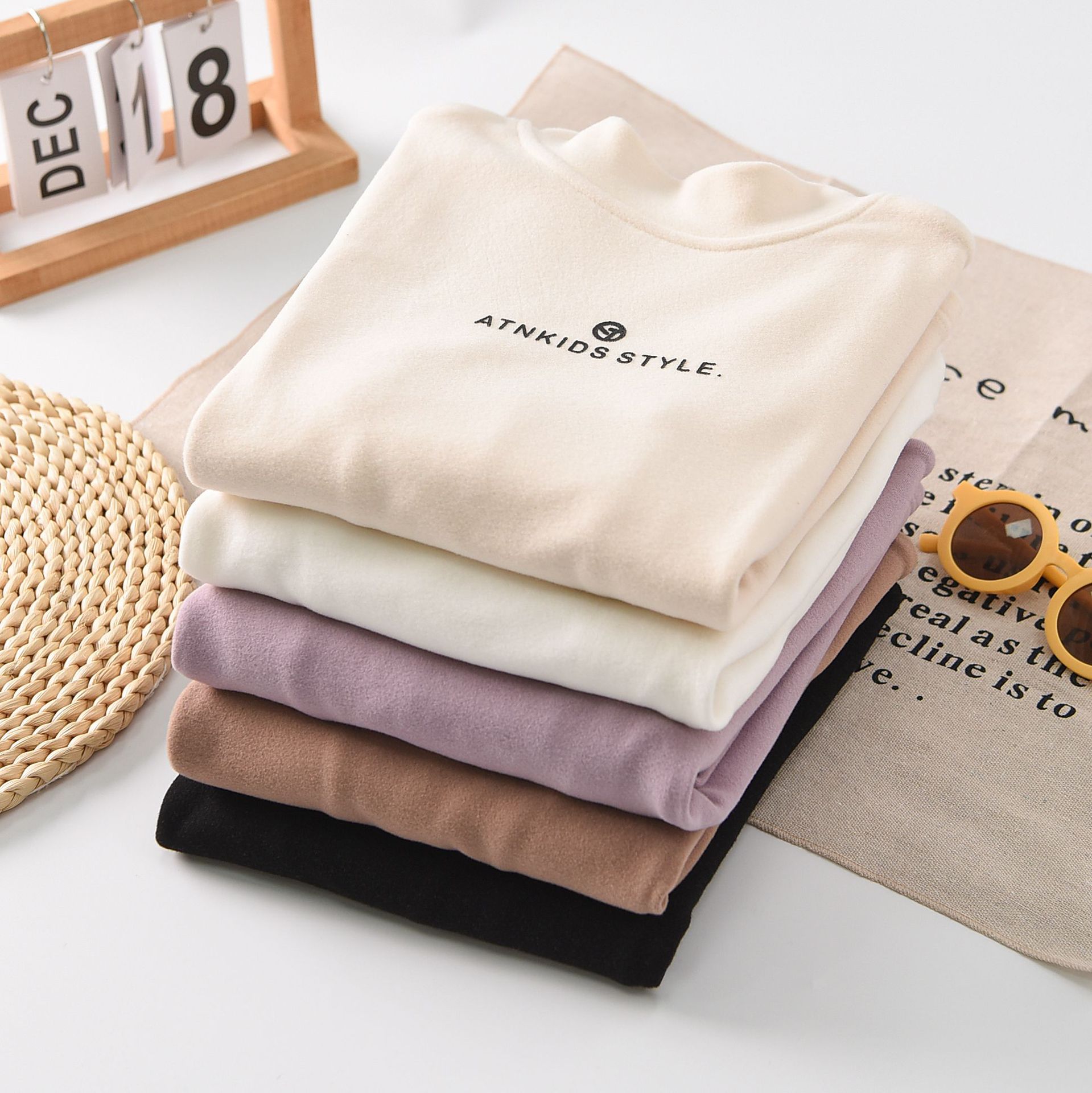 터틀넥 셔츠 가을과 겨울 보텀링 어린이 두꺼운 티셔츠 한국식 우유 가죽 중형 및 대형 어린이 작고 큰 버전 긴 소매 따뜻한 병용 셔츠스토어 가기