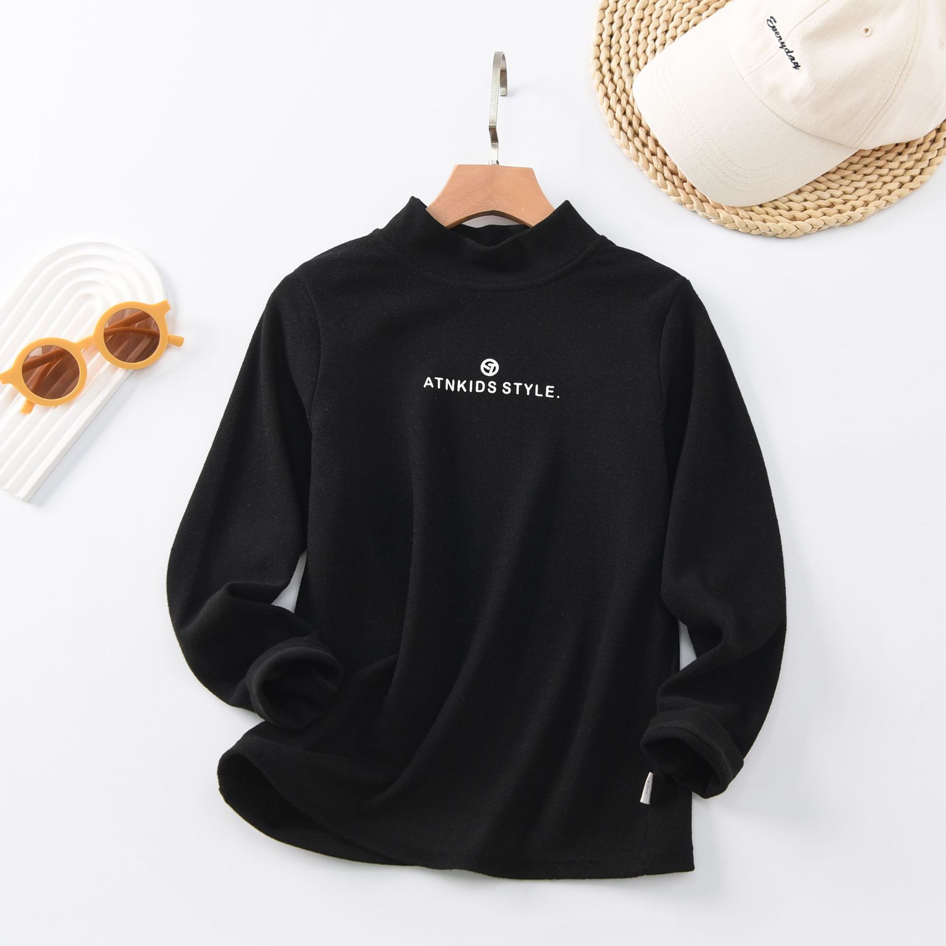 터틀넥 셔츠 가을과 겨울 보텀링 어린이 두꺼운 티셔츠 한국식 우유 가죽 중형 및 대형 어린이 작고 큰 버전 긴 소매 따뜻한 병용 셔츠