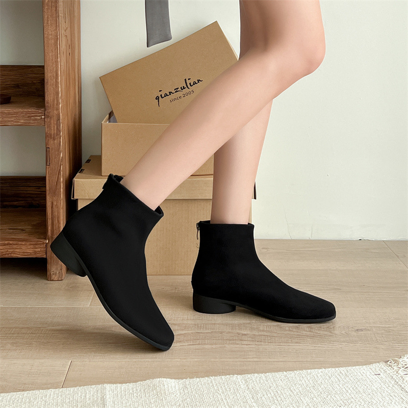 나비 Ao 2024 가을과 겨울 새로운 도착 프랑스 스타일 짧은 부츠 여성 짧은 배럴 마틴 소프트 탑 빈티지 카우보이 부츠 올매치 싱글 펌프