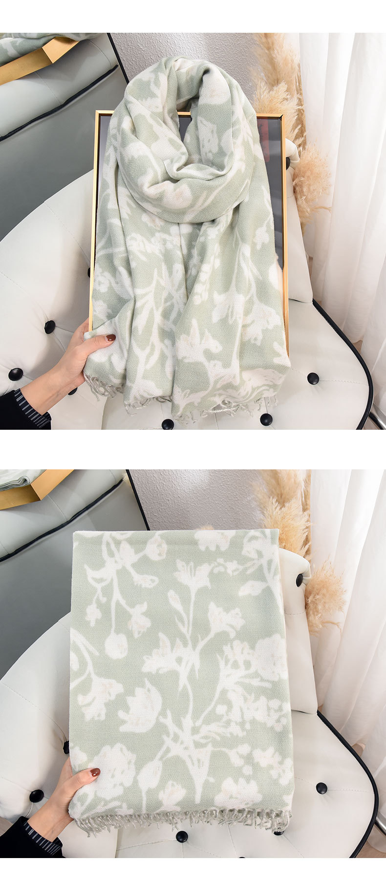 한국 스타일 대학 달콤한 소녀 패션 꽃 인쇄 스카프 인터넷 연예인 따뜻한 두꺼운 캐시미어 술 스카프
