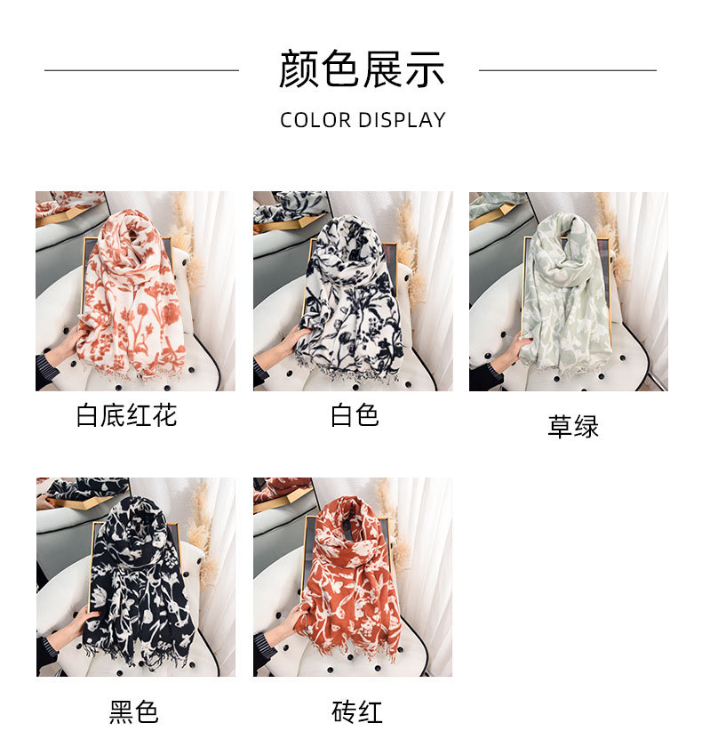 한국 스타일 대학 달콤한 소녀 패션 꽃 인쇄 스카프 인터넷 연예인 따뜻한 두꺼운 캐시미어 술 스카프스토어 가기