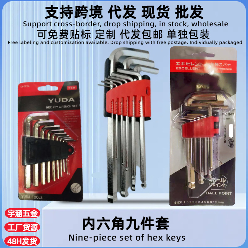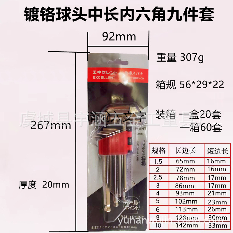 공급 도매 9 피스 도금 앨런 렌치. 중간 및 긴 Allen 렌치 9 피스 세트. 하드웨어 도구스토어 가기
