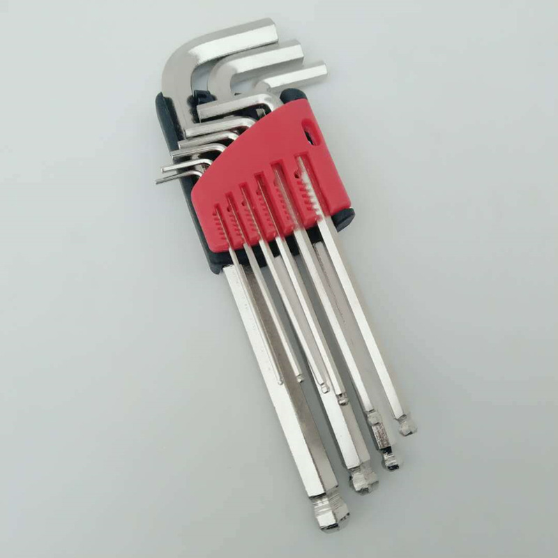 공급 도매 9 피스 도금 앨런 렌치. 중간 및 긴 Allen 렌치 9 피스 세트. 하드웨어 도구