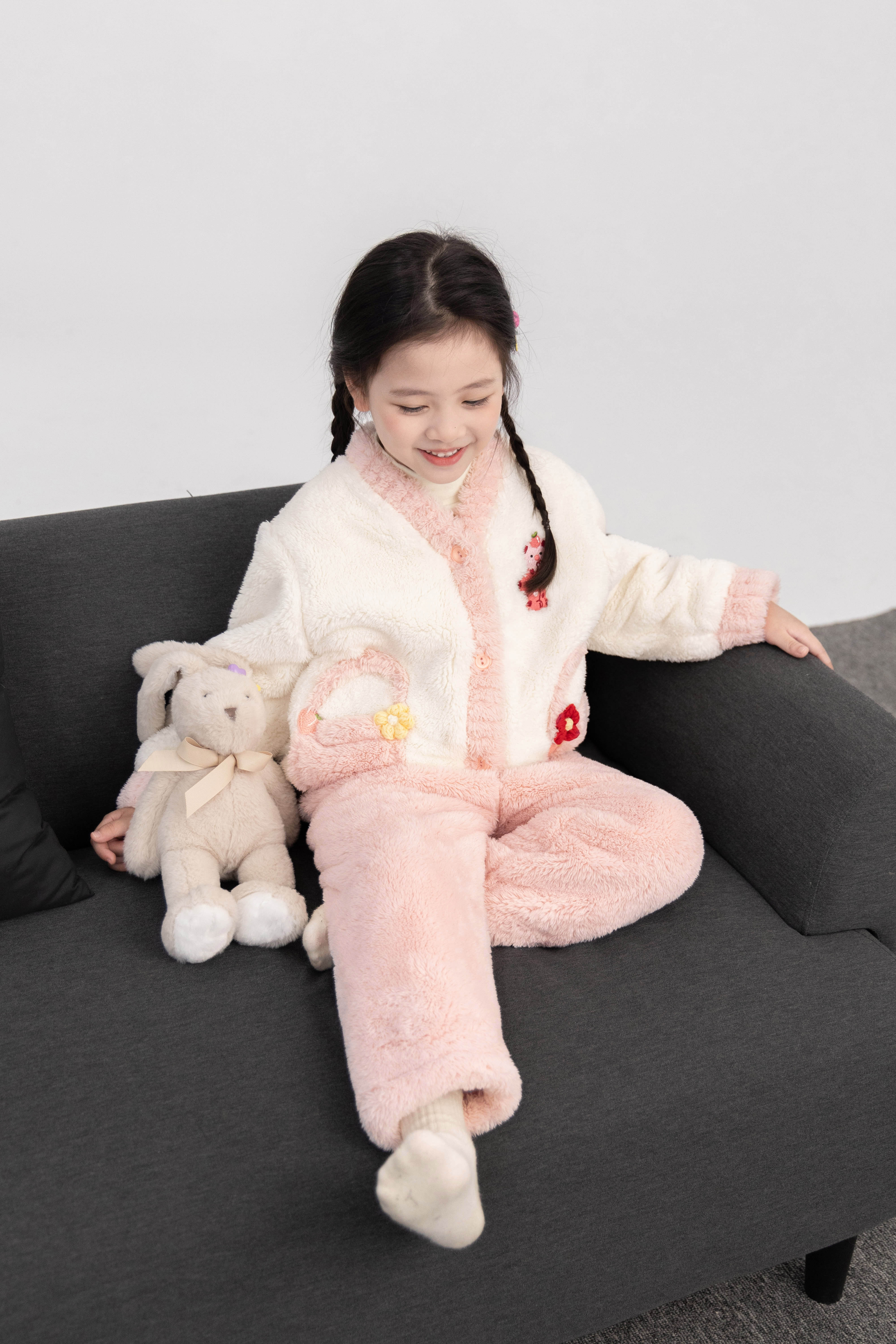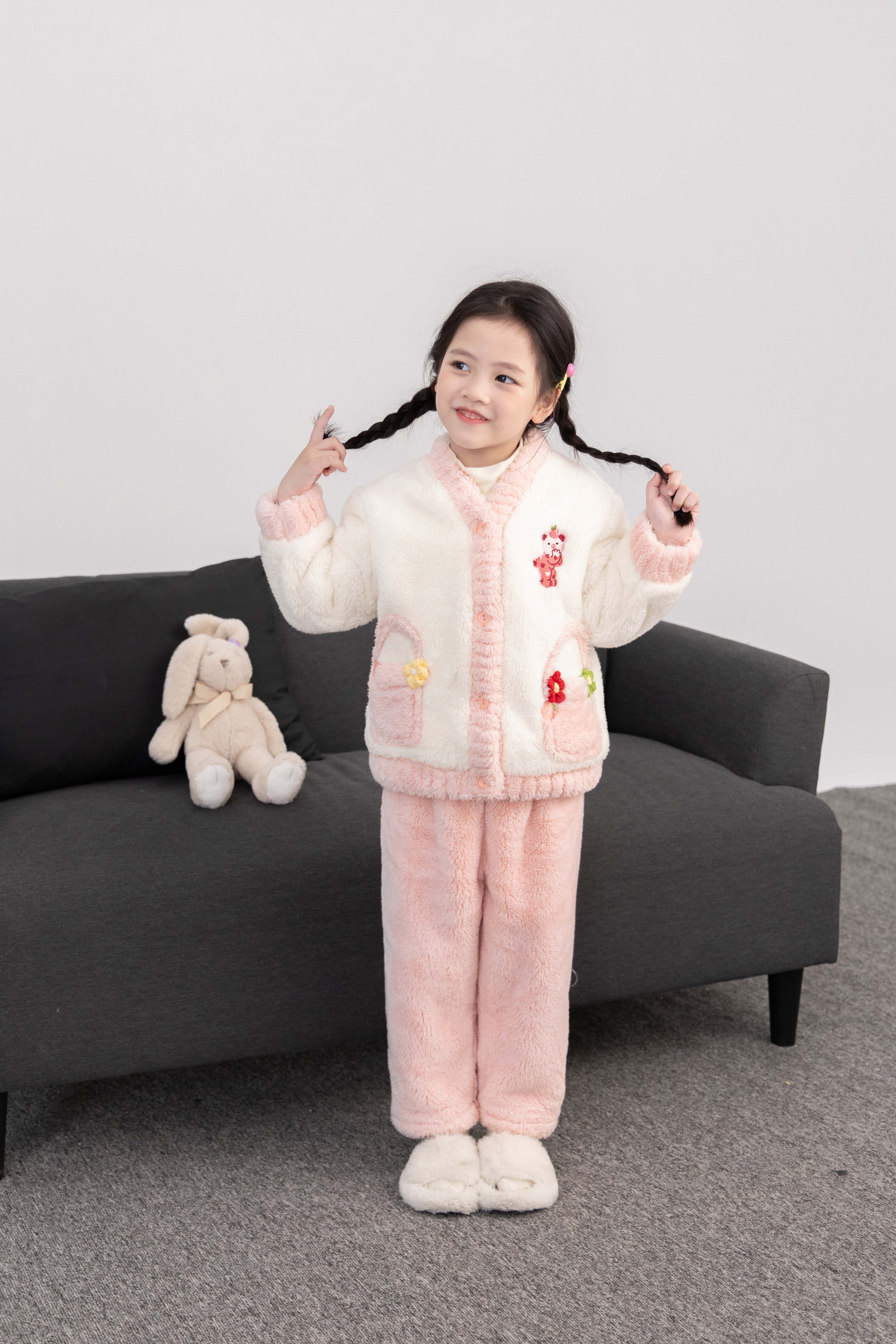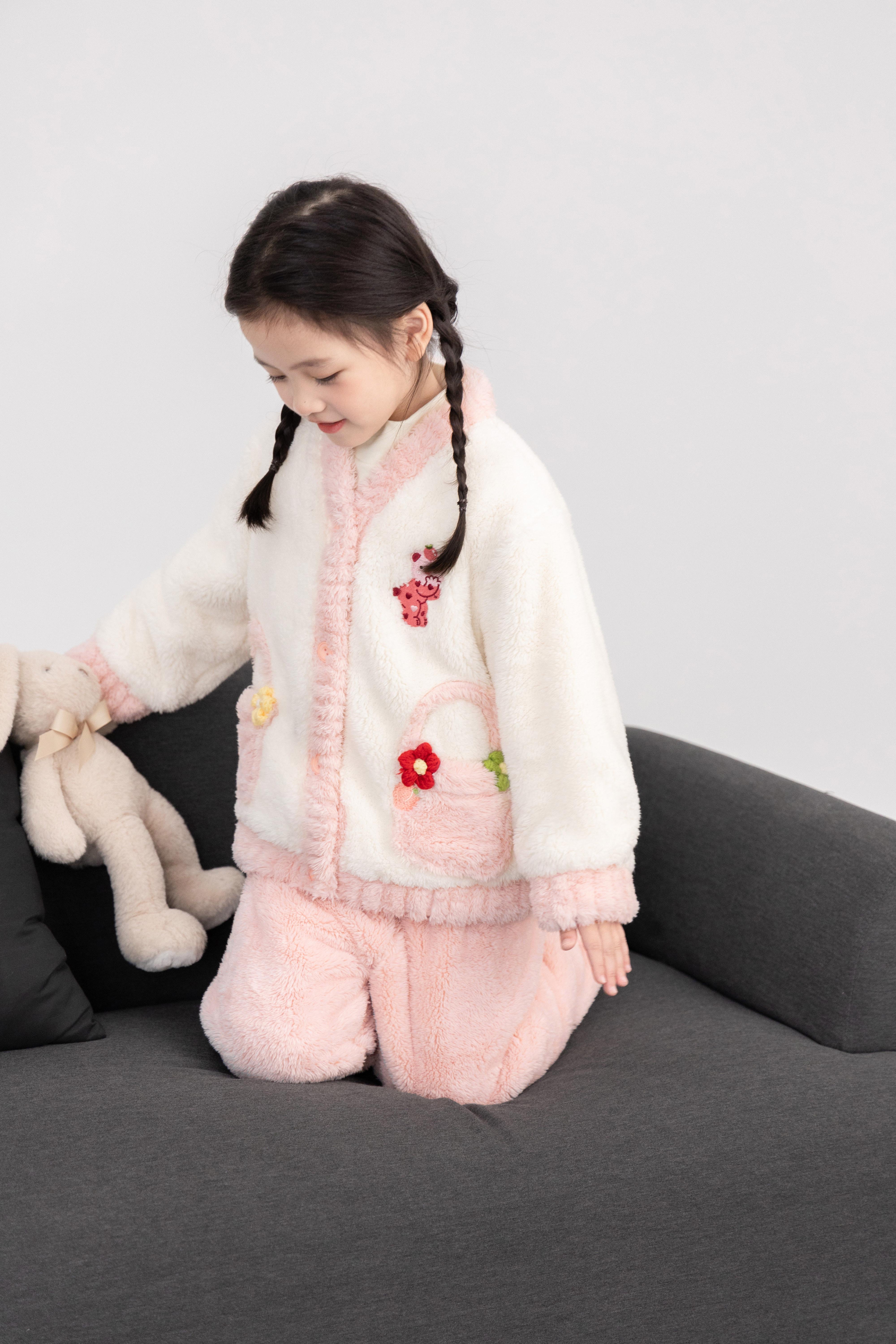 투투 코끼리 소녀 겨울 잠옷 두꺼운 산호 양털 가을 새로운 어린이 세트 아기 따뜻한 집 옷스토어 가기