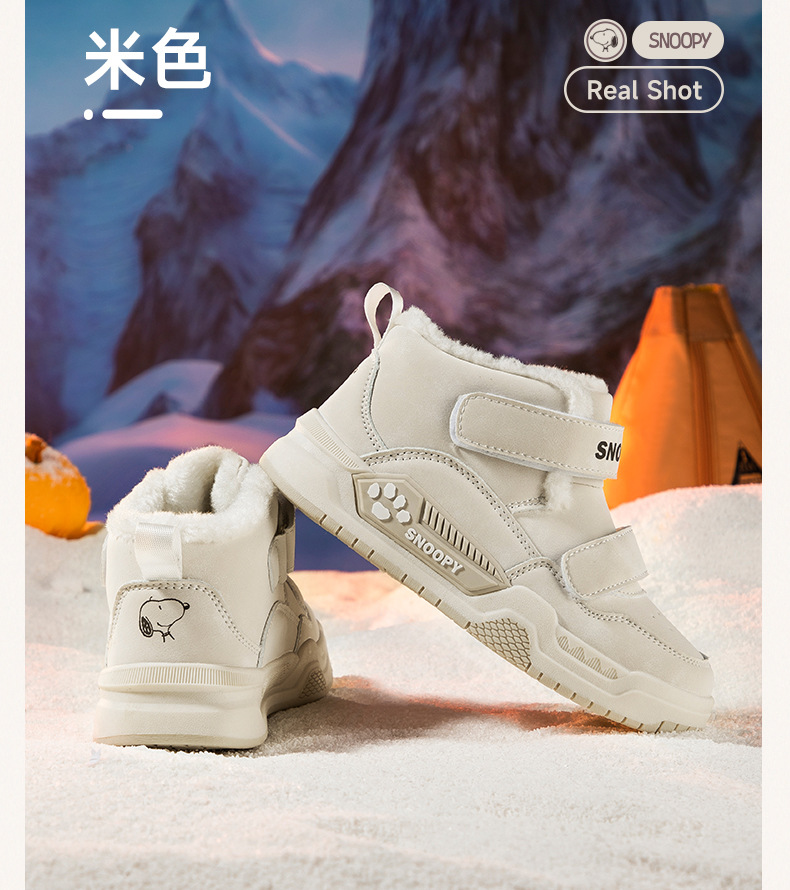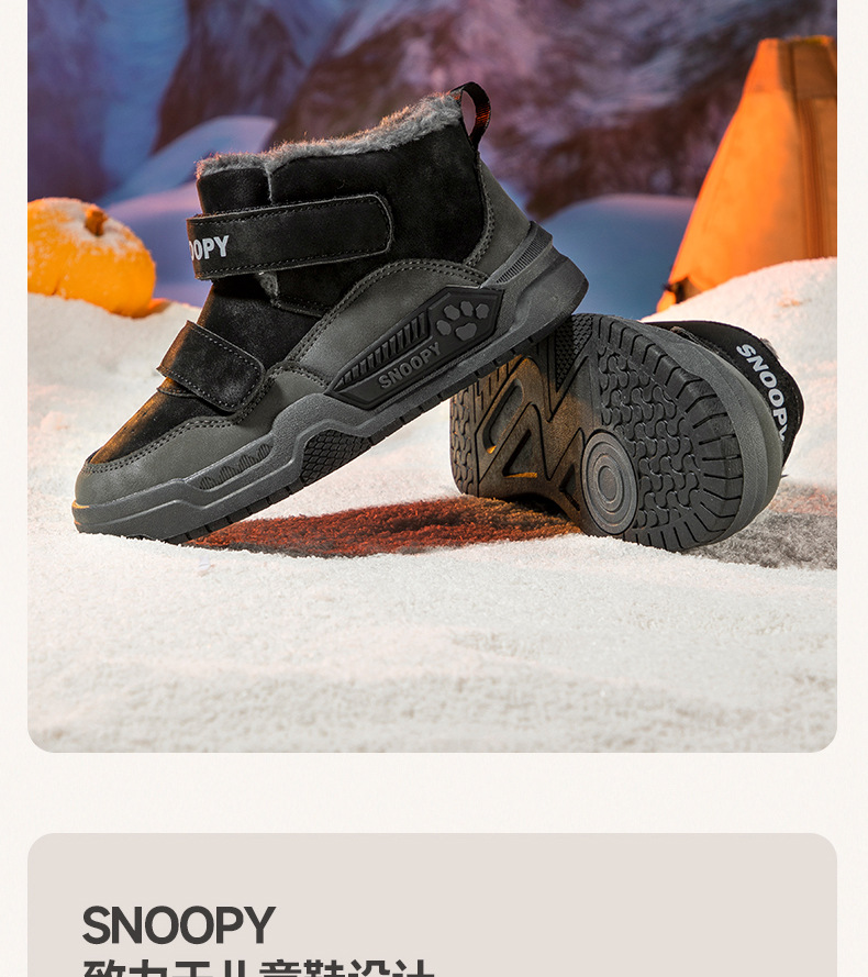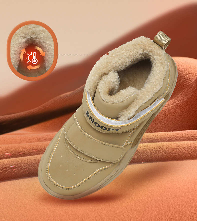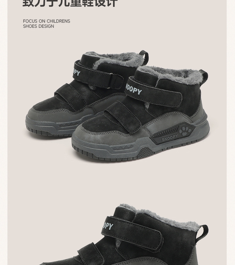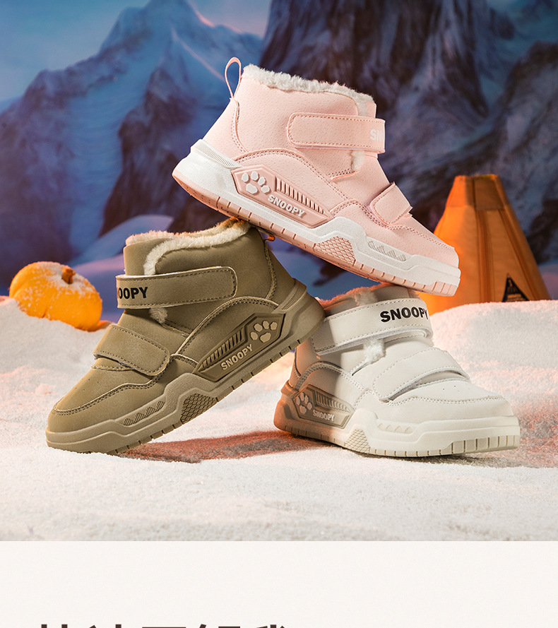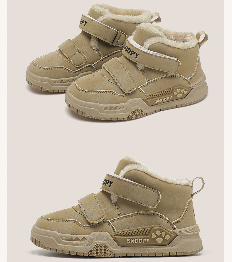 스누피 남아용 신발, 중대형 아동용 가을 겨울용 플러스 벨벳 보온 대형 면화 신발, 2024년 신상품, 가죽 표면 방수 야외 신발스토어 가기