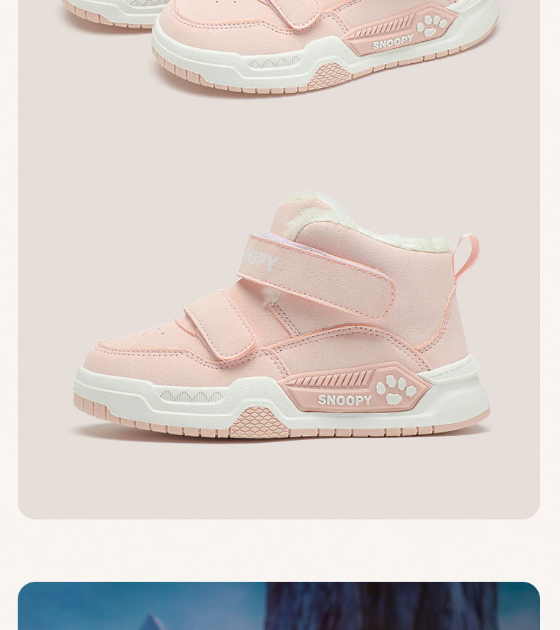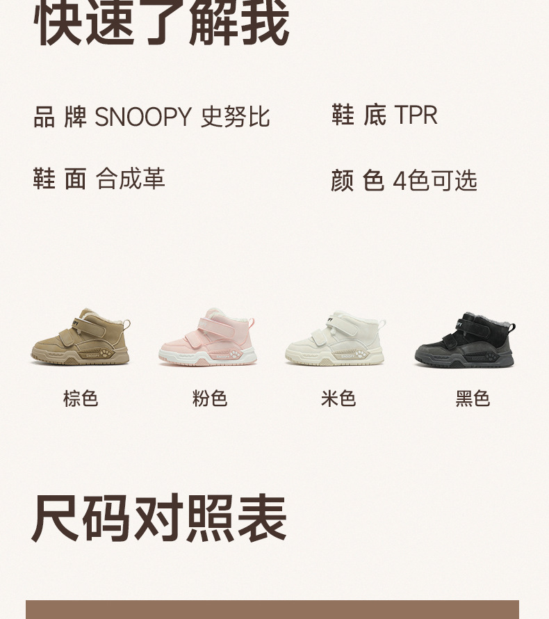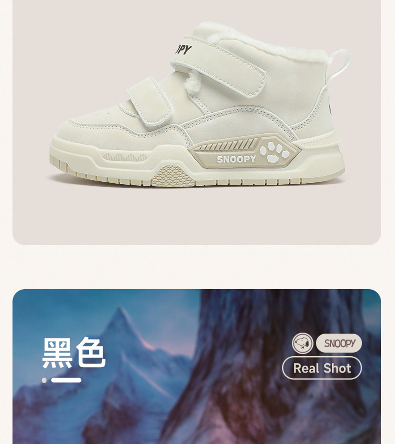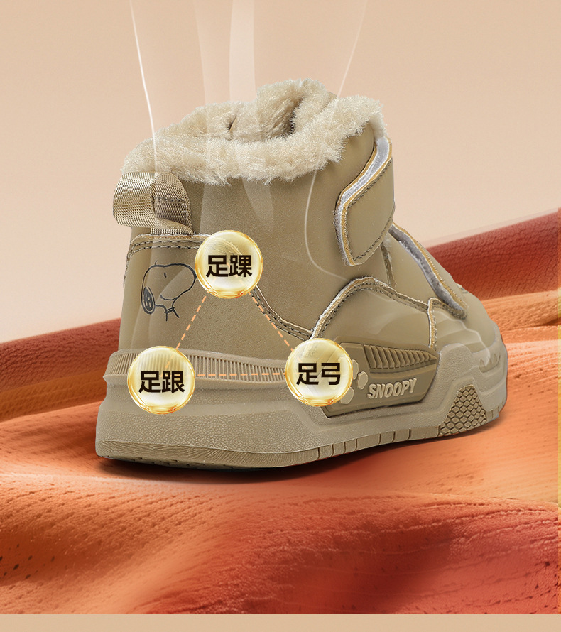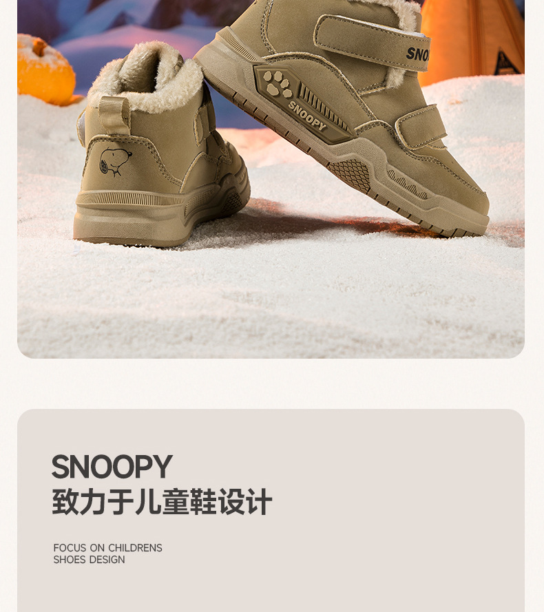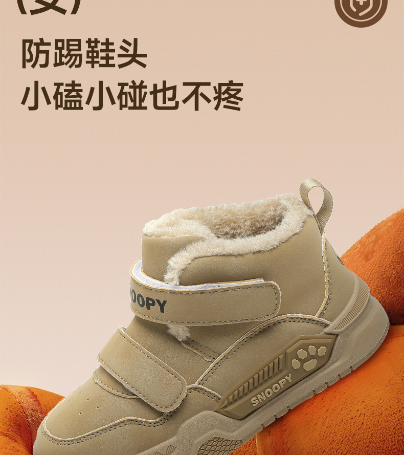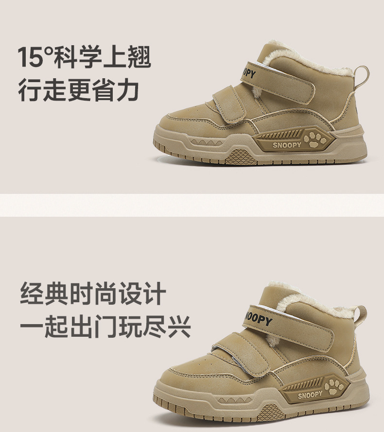 스누피 남아용 신발, 중대형 아동용 가을 겨울용 플러스 벨벳 보온 대형 면화 신발, 2024년 신상품, 가죽 표면 방수 야외 신발스토어 가기