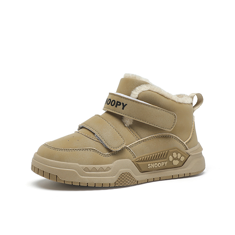 스누피 남아용 신발, 중대형 아동용 가을 겨울용 플러스 벨벳 보온 대형 면화 신발, 2024년 신상품, 가죽 표면 방수 야외 신발