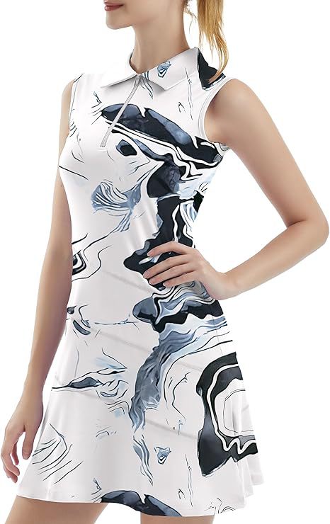 아마존 국경 간 유럽과 미국의 스탠드 업 칼라 프린트 민소매 개선된 새로운 중국 스타일 골프 드레스 골프 유니폼은 우아하고 슬림합니다.스토어 가기