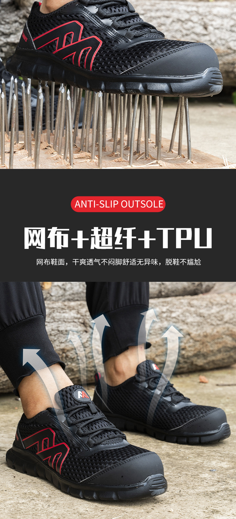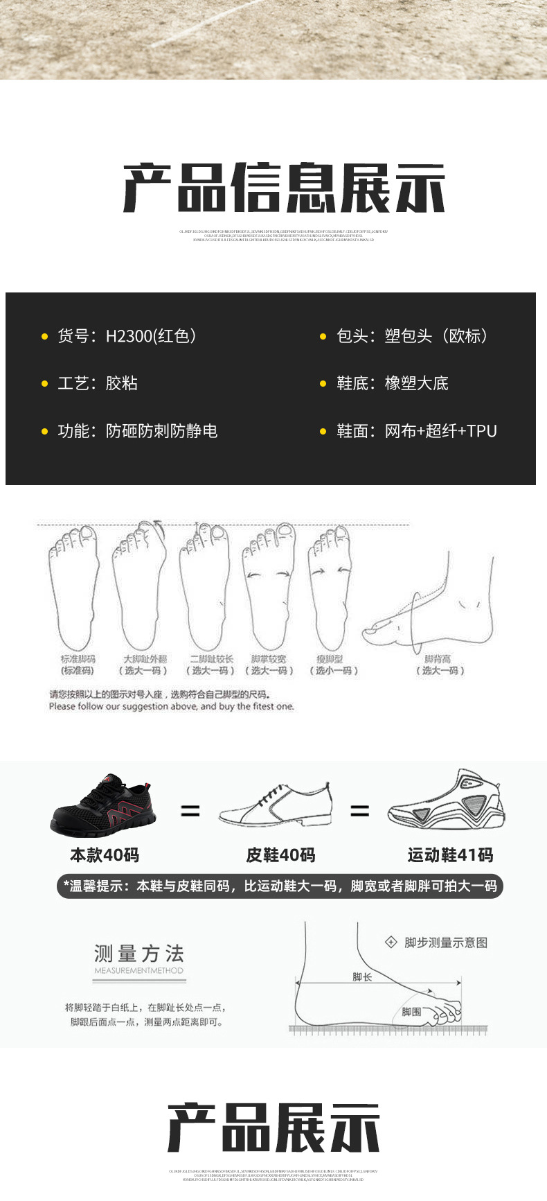 국경 간 정전기 방지 캐주얼 노동 보호 신발 스매싱 방지 및 피어싱 방지 경량 통기성 안전 플라스틱 발가락 보호 신발스토어 가기