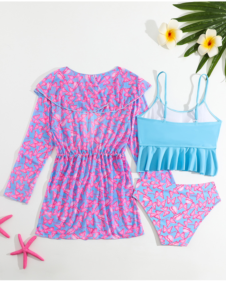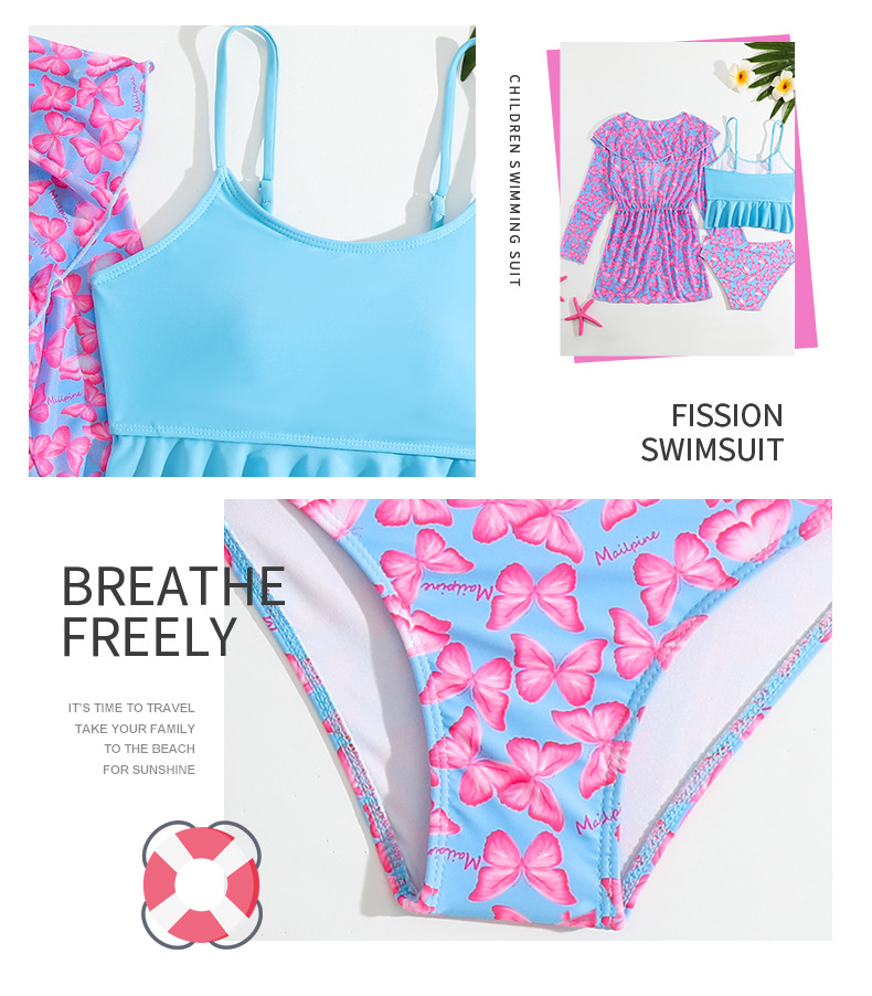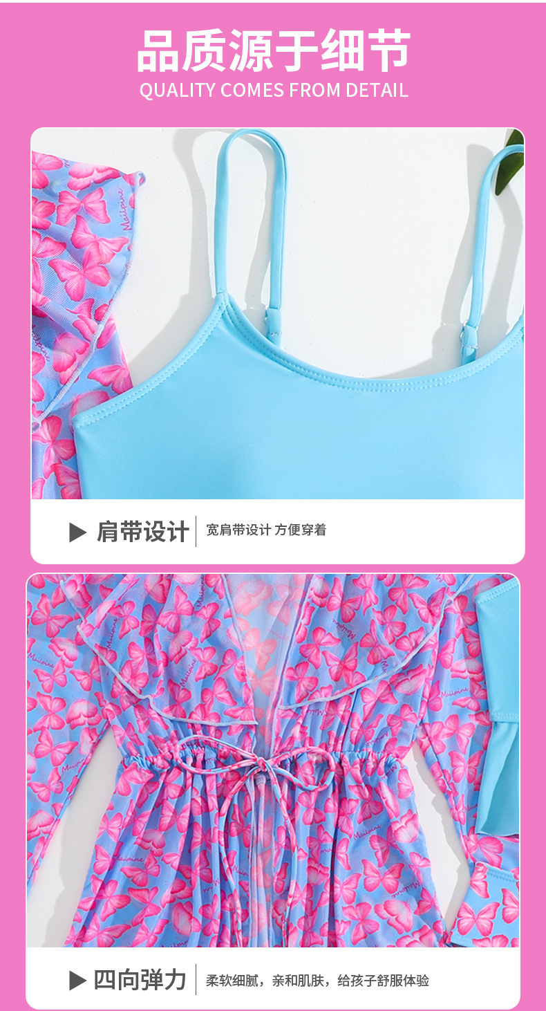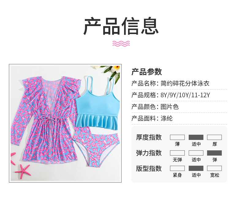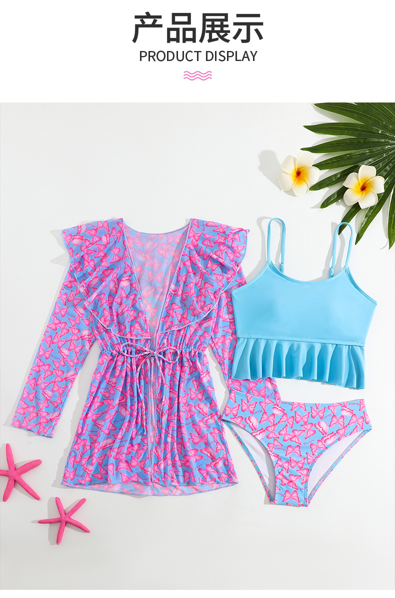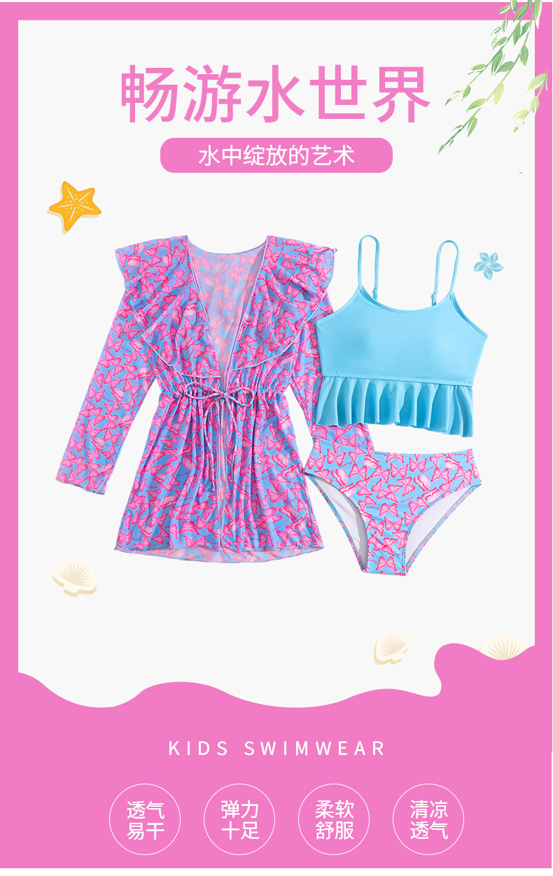 2024 새로운 3 피스 커버 재킷 여자 수영복 여성 크로스 보더 아마존 걸스 스플릿 빅 키즈 수영복스토어 가기