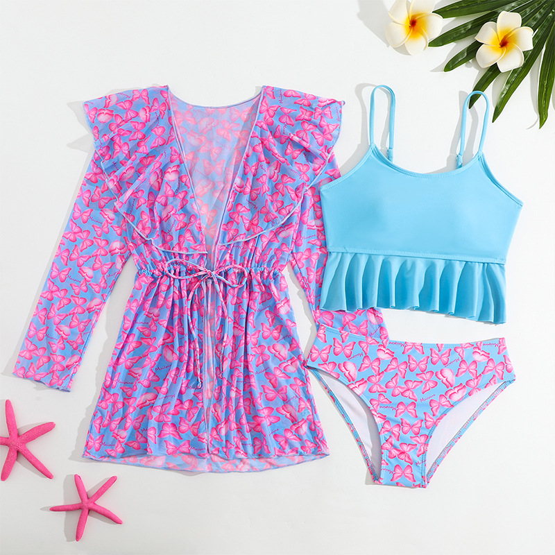 2024 새로운 3 피스 커버 재킷 여자 수영복 여성 크로스 보더 아마존 걸스 스플릿 빅 키즈 수영복