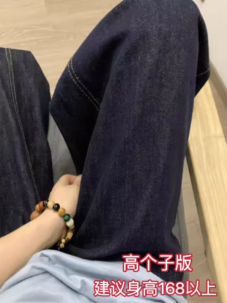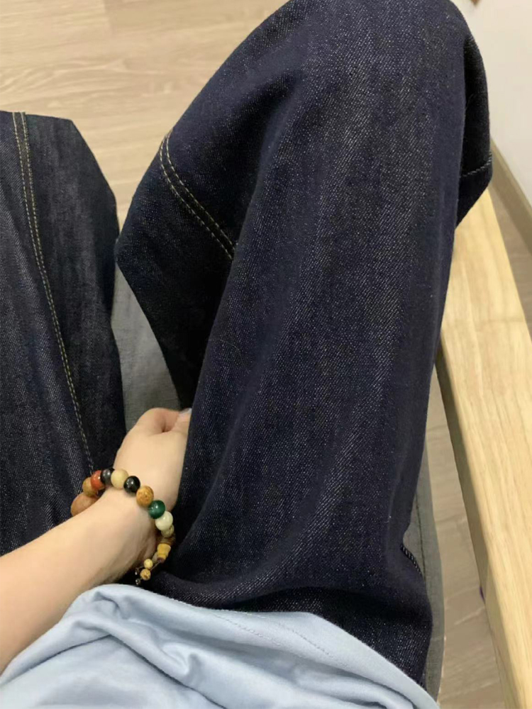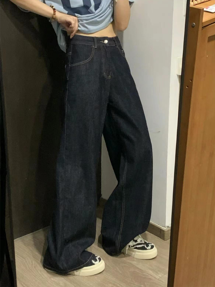 다크 블루 청바지 여성의 가을 새 플러스 사이즈 통통녀 높은 허리 느슨한 슬리밍 배 모양 넓은 다리 바지스토어 가기